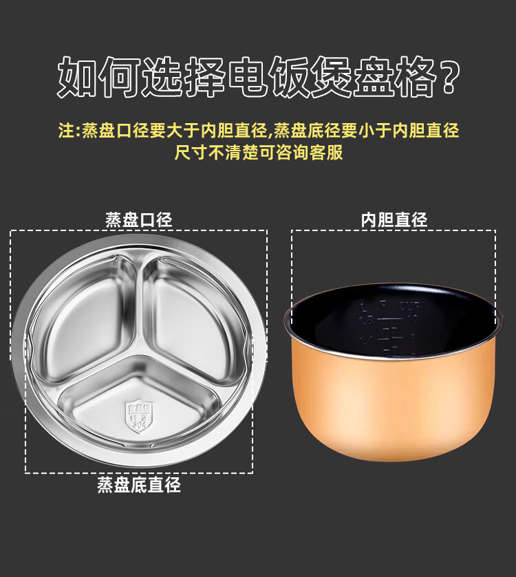 Banwu Life 304 stainless steel divided steaming tray rice cooker steamer built-in steaming tray steaming grid baby food supplement one pot steaming