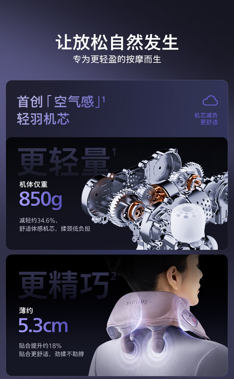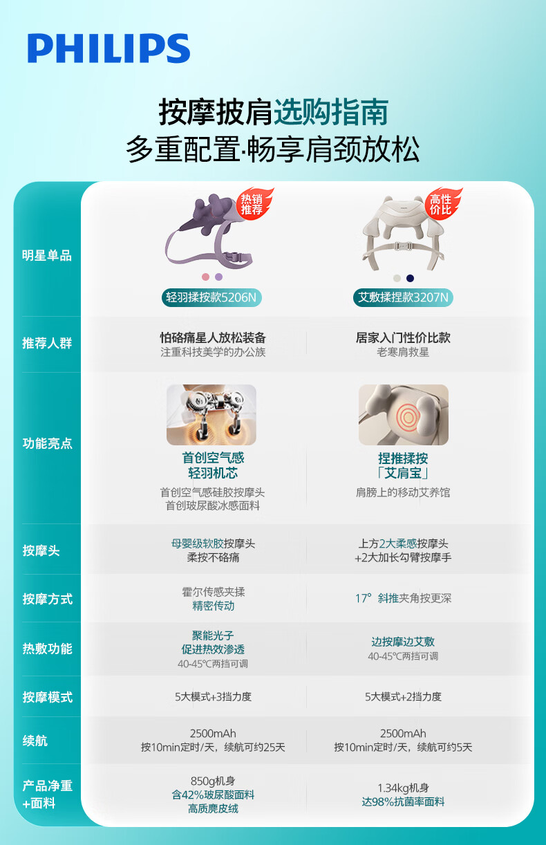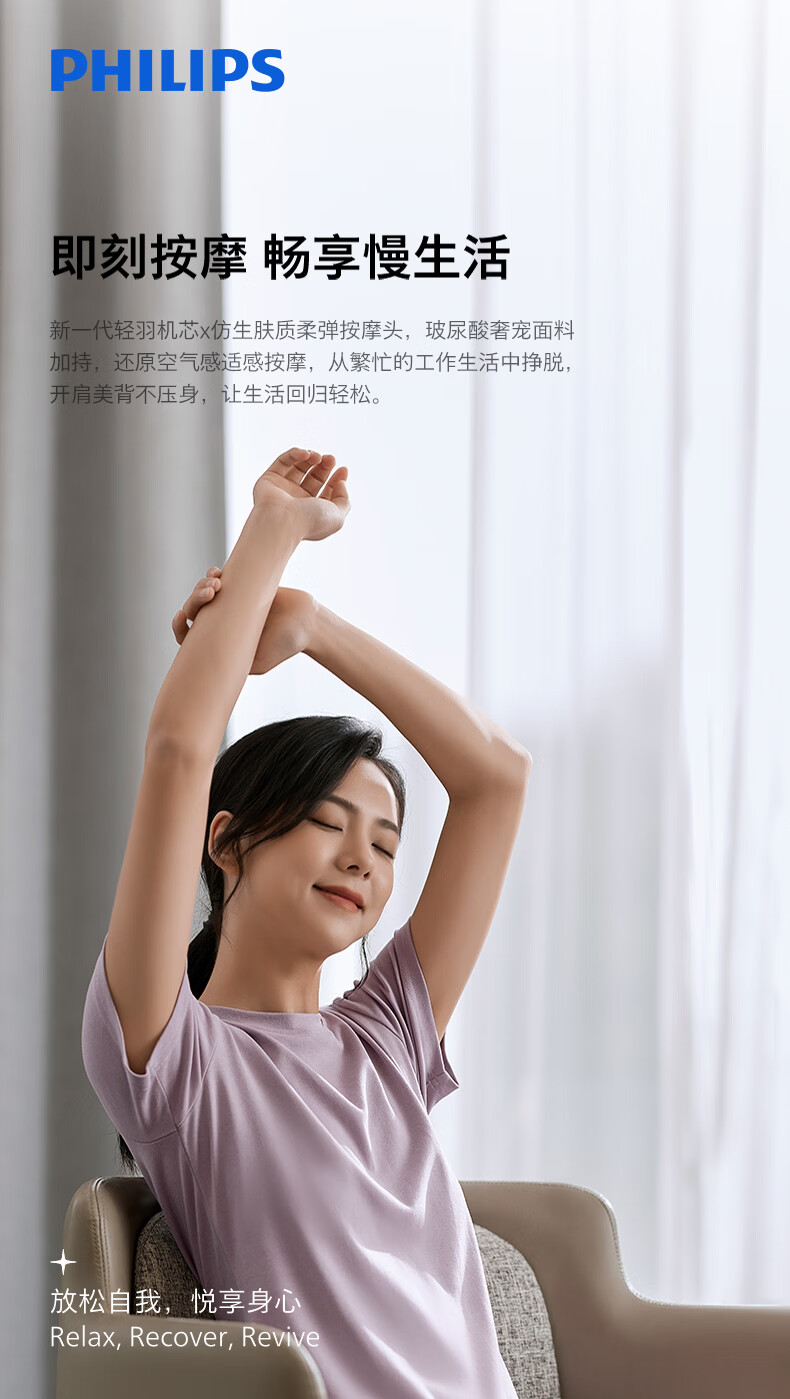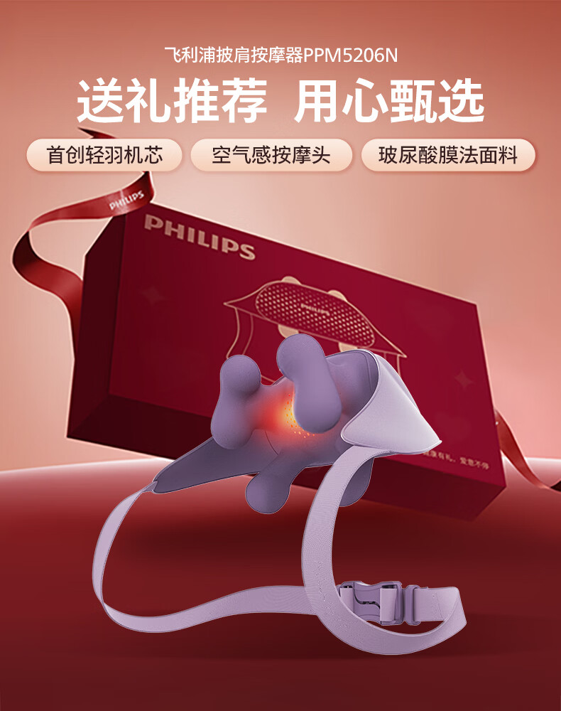 Philips (PHILIPS) Light Feather Cervical Massager Neck Massager Shoulder, Neck, Back Trapezius Massage Shawl Hot Compress Massage 5206N as a birthday and New Year annual party gift for mothers of boys and girls