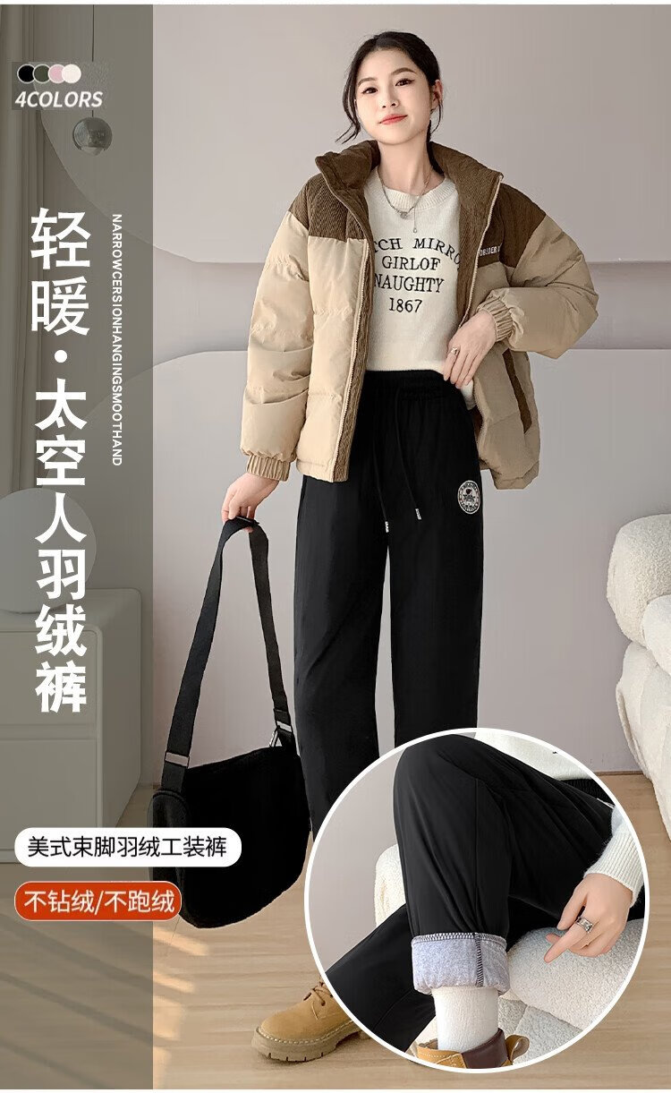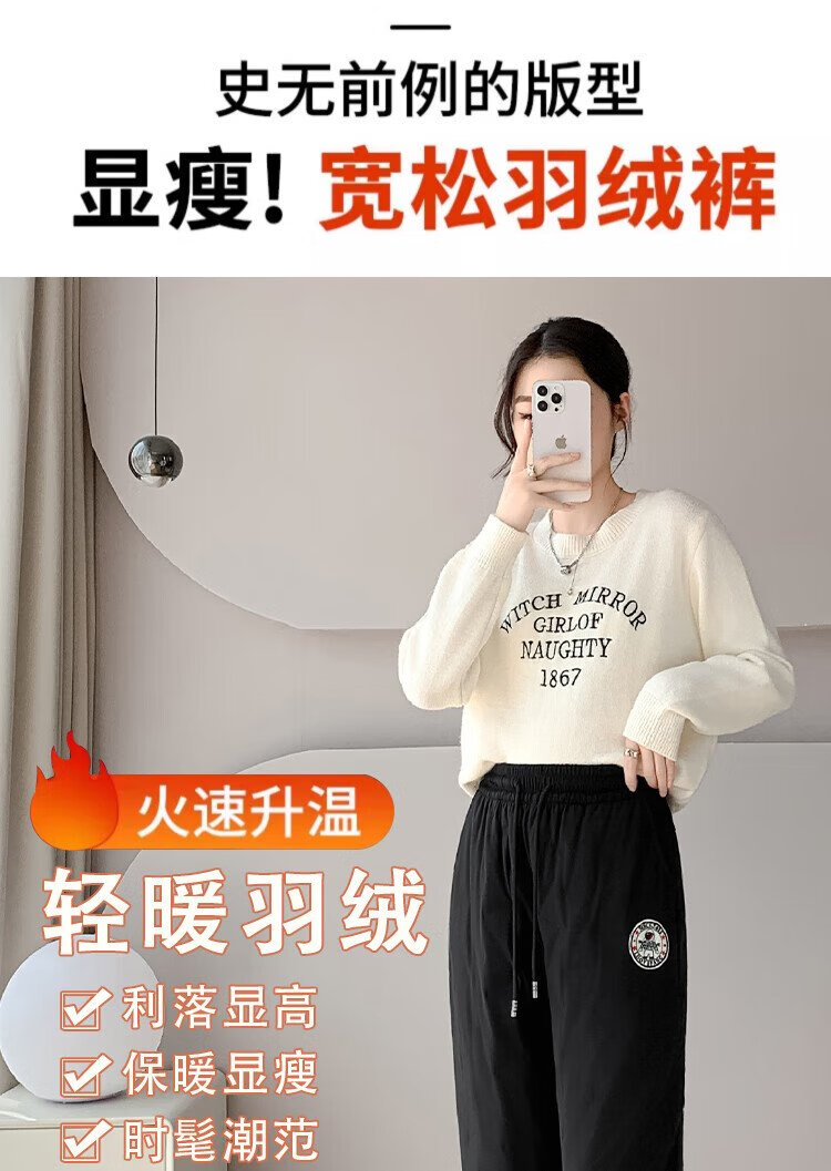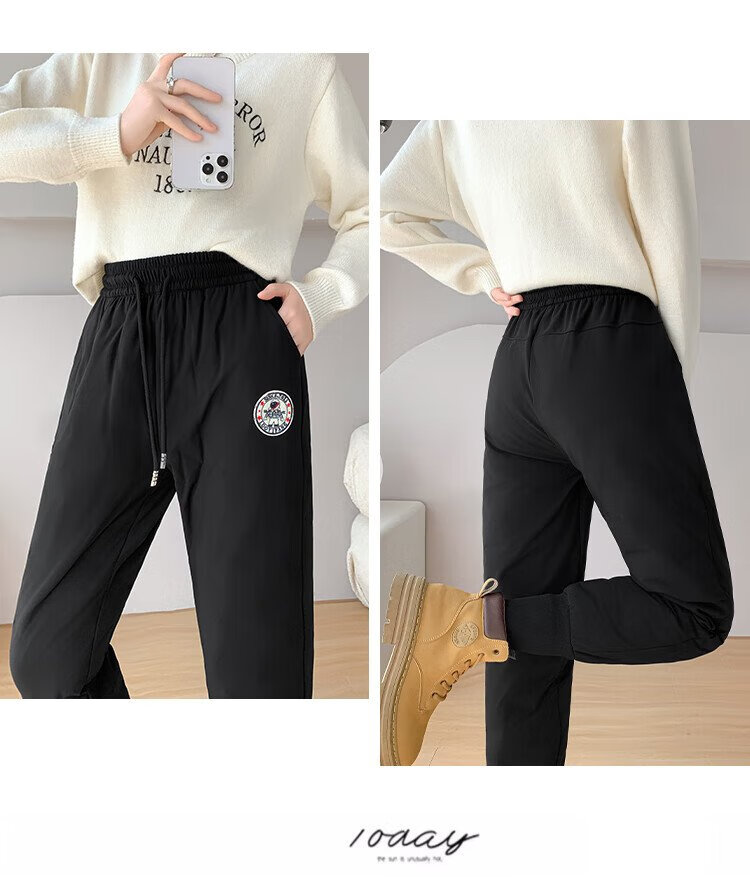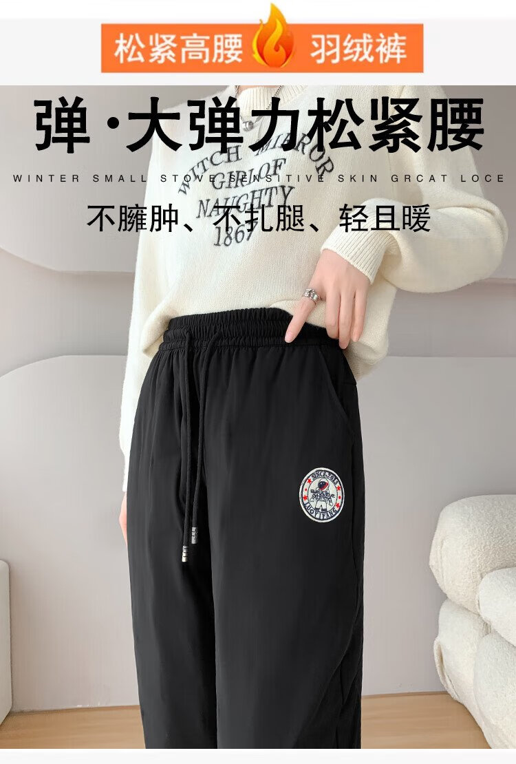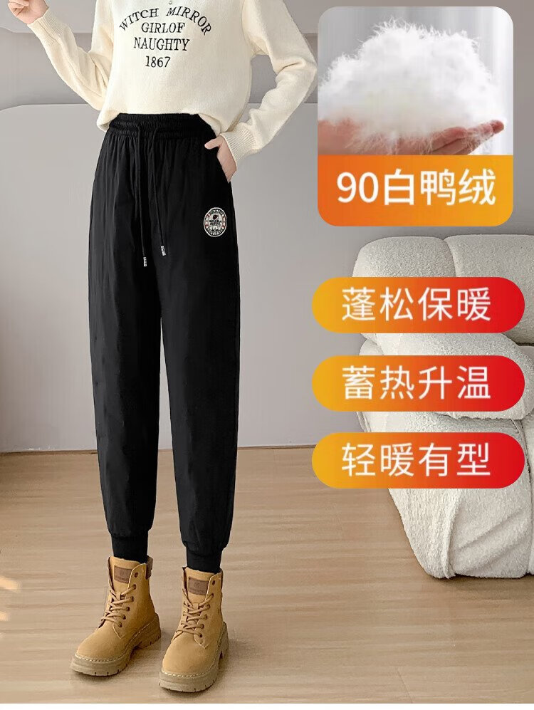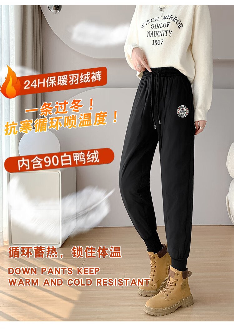 Yishang White Duck Down Pants Women's Outer Wear Winter High Waist Plus Velvet Thickened Harem Pants Loose Cold-resistant Women's Wear