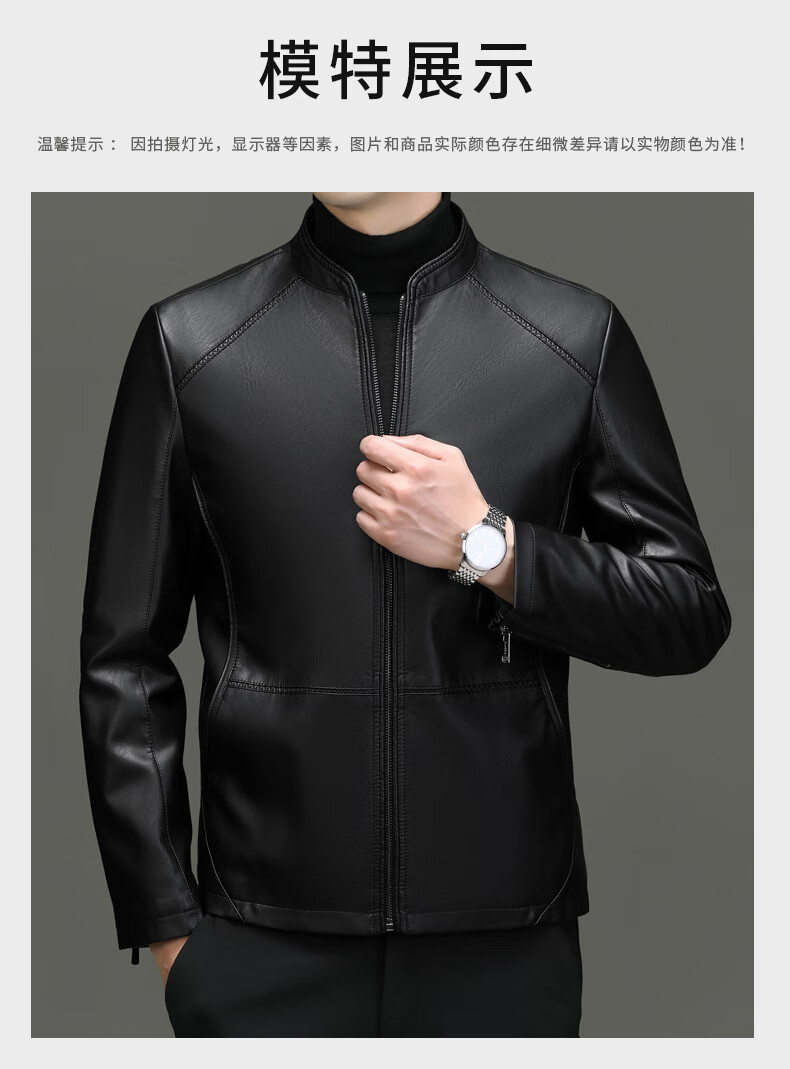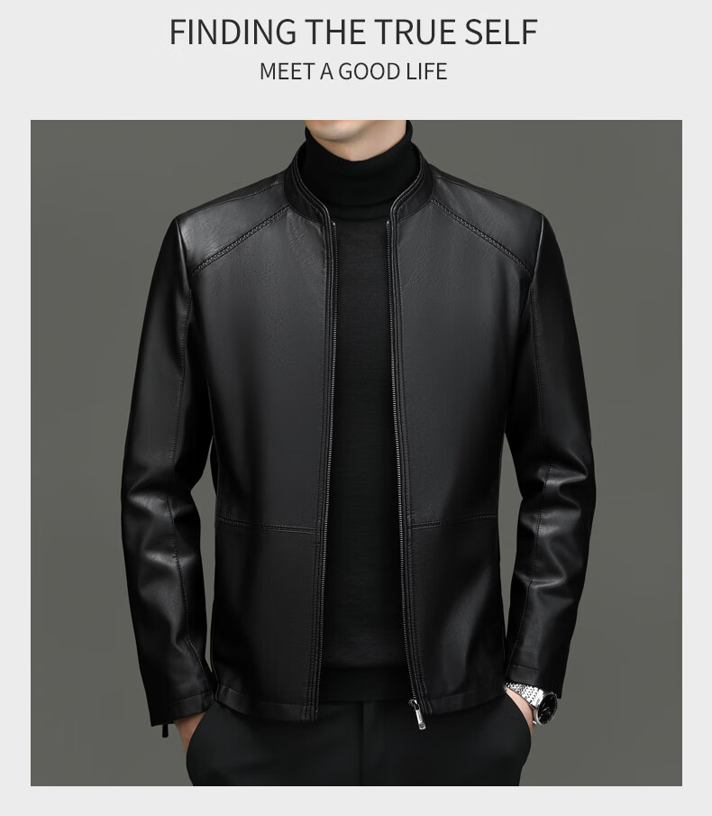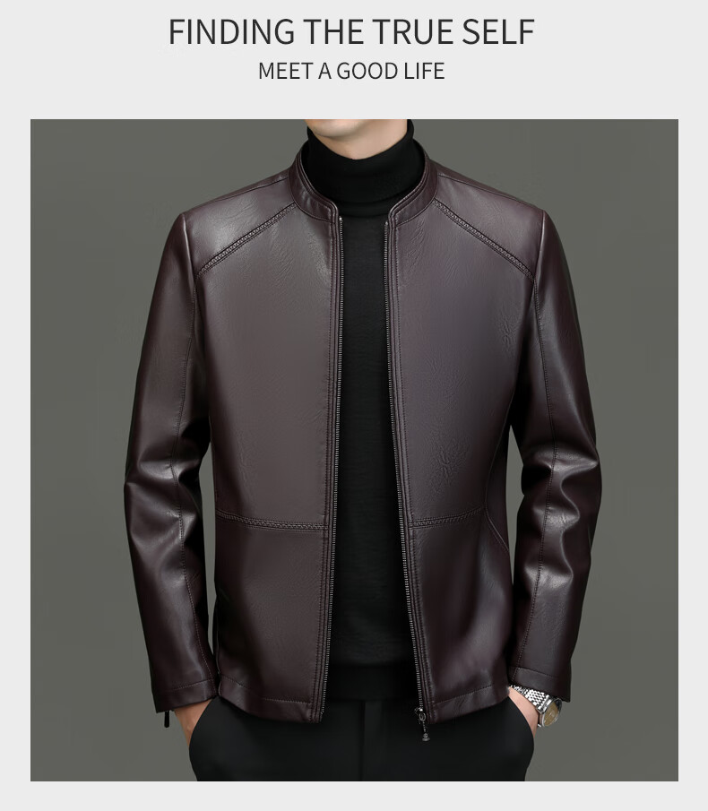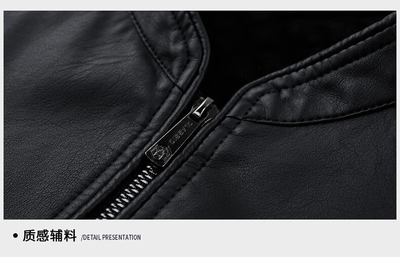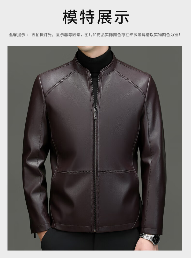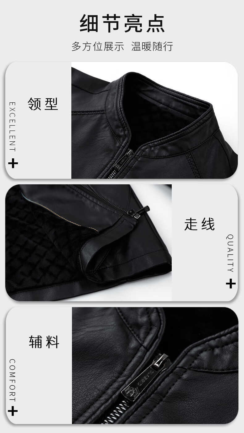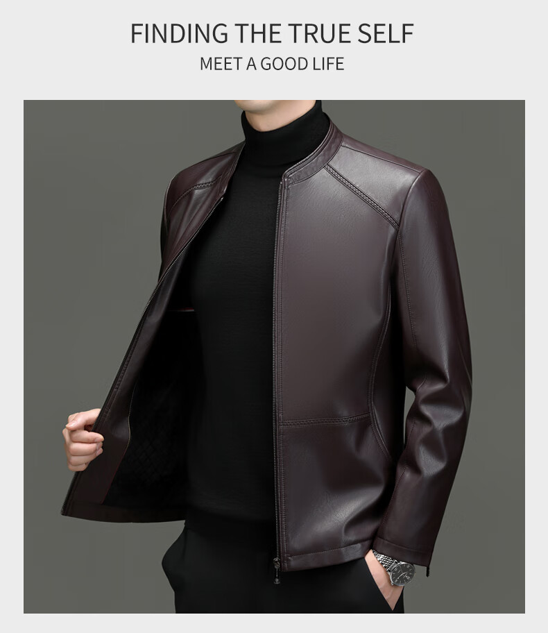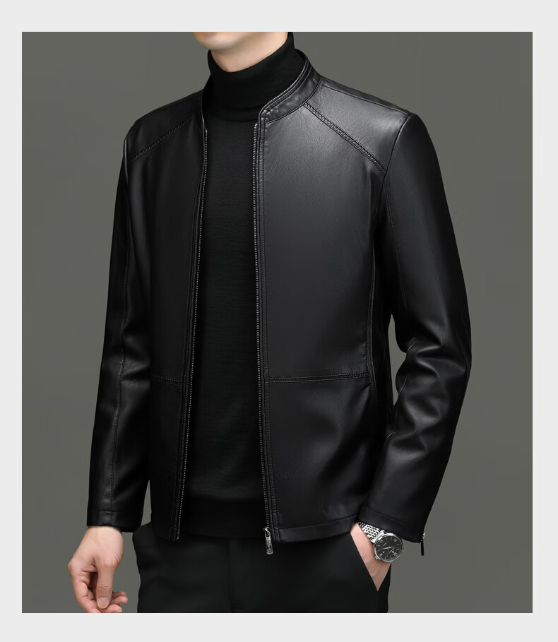 Pierre Cardin leather jacket men's winter velvet thickened warm leather jacket autumn and winter stand-up collar slim retro cycling motorcycle jacket