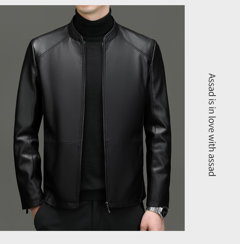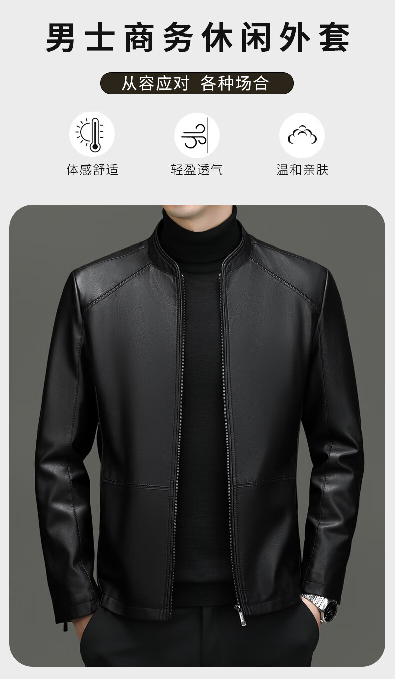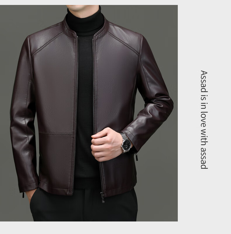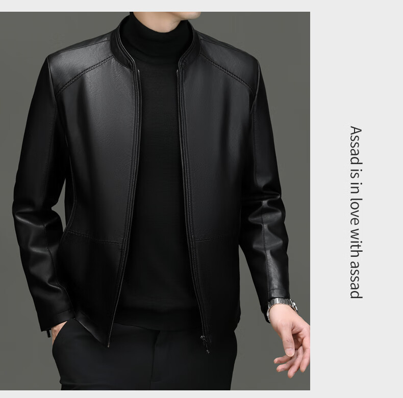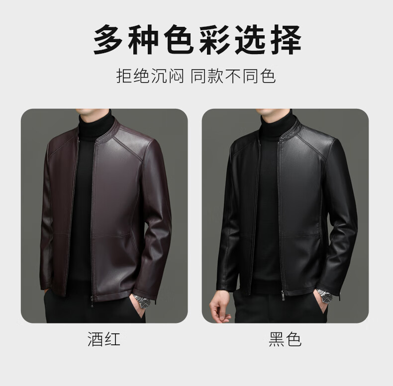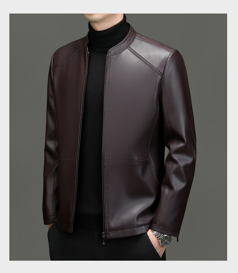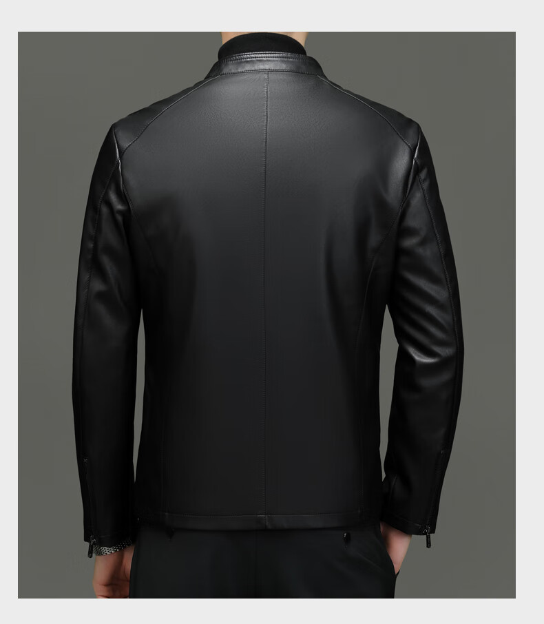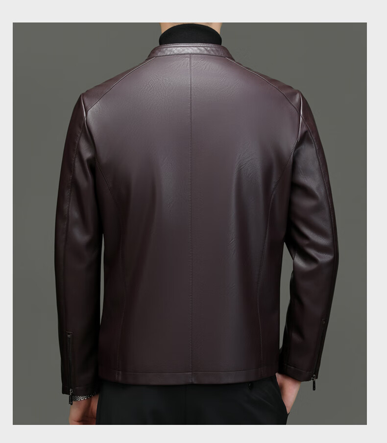 Pierre Cardin leather jacket men's winter velvet thickened warm leather jacket autumn and winter stand-up collar slim retro cycling motorcycle jacket