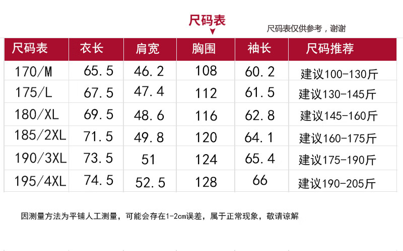 China (cm) 165 / 88-90 170 / 96-98 175 / 108-110 180 / 118-122 185 / 126-130