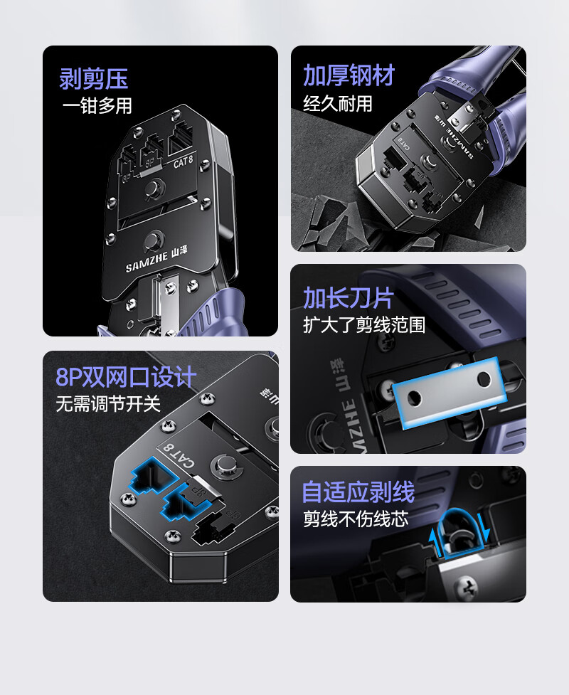 Shanze Category 7 multifunctional network cable pliers, crystal head crimping pliers, Category 7 and Super 6 with dovetail clamp shielding SZ-790