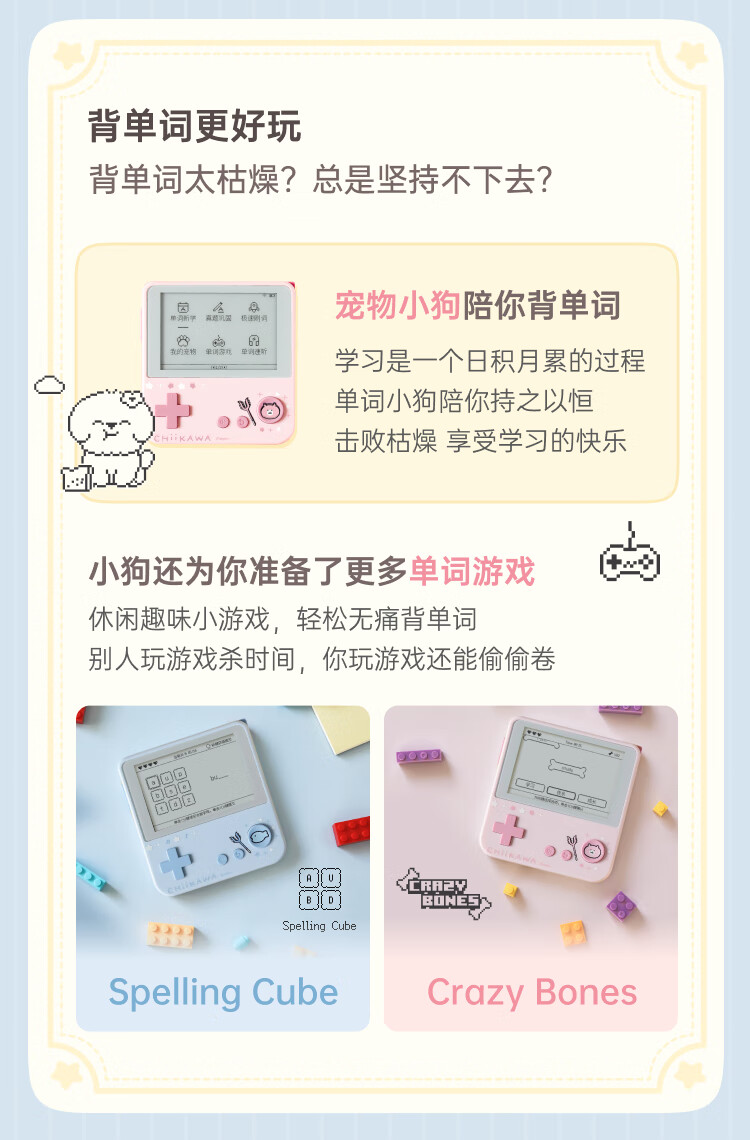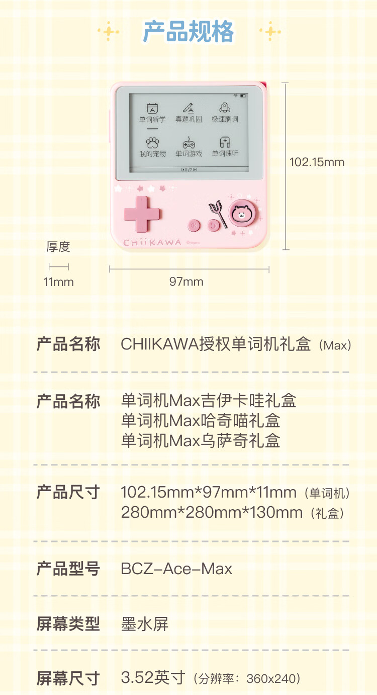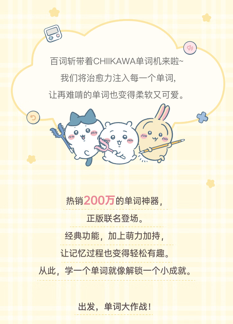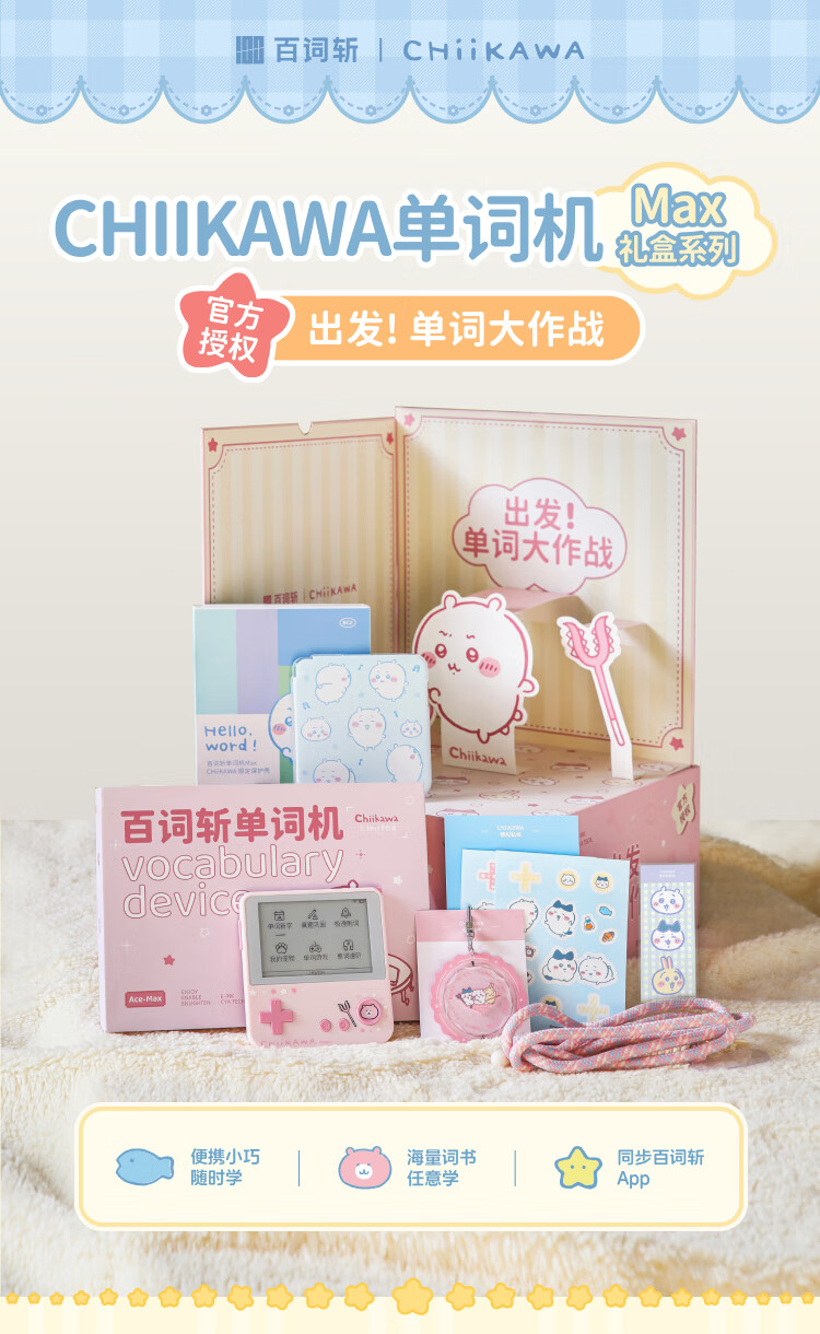 Hundred Words Chop Machine English Portable Learning Machine Synchronized Textbook Primary School College Entrance Examination Vocabulary Memorization Word Artifact CHIIKAWA Officially Authorized Usaqi Max Gift Box Model