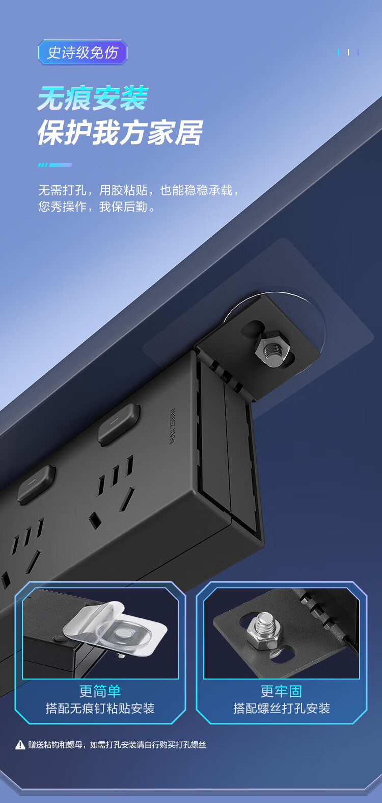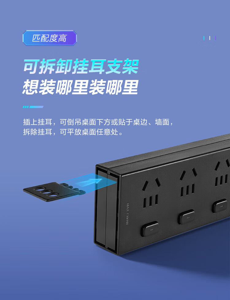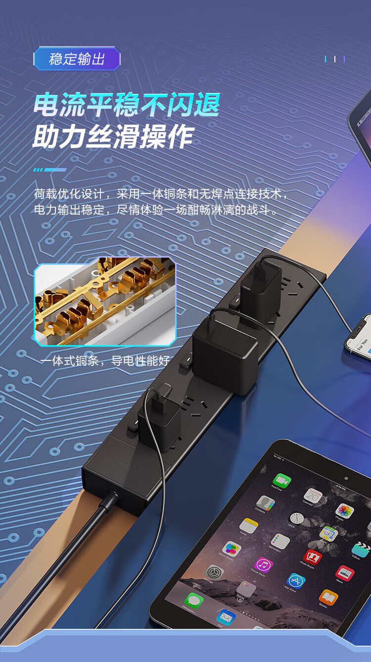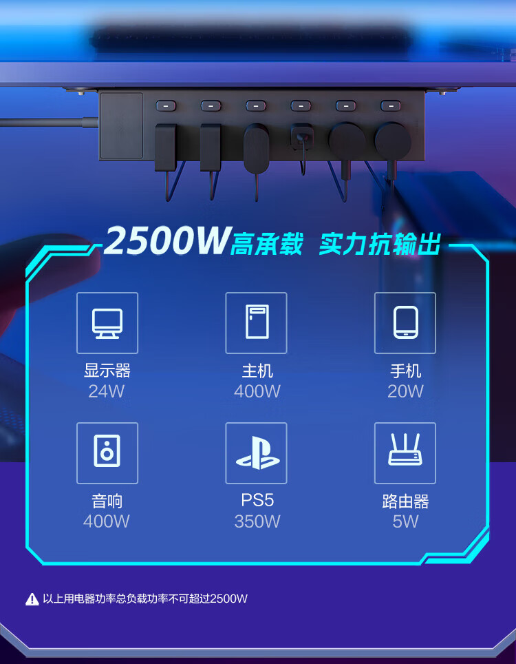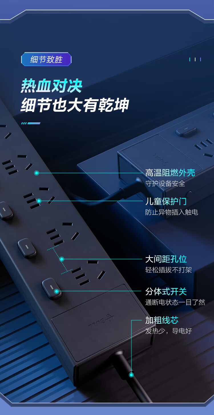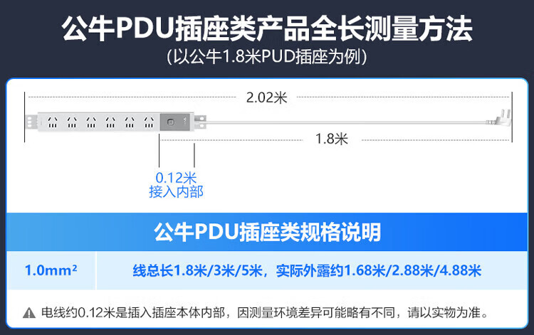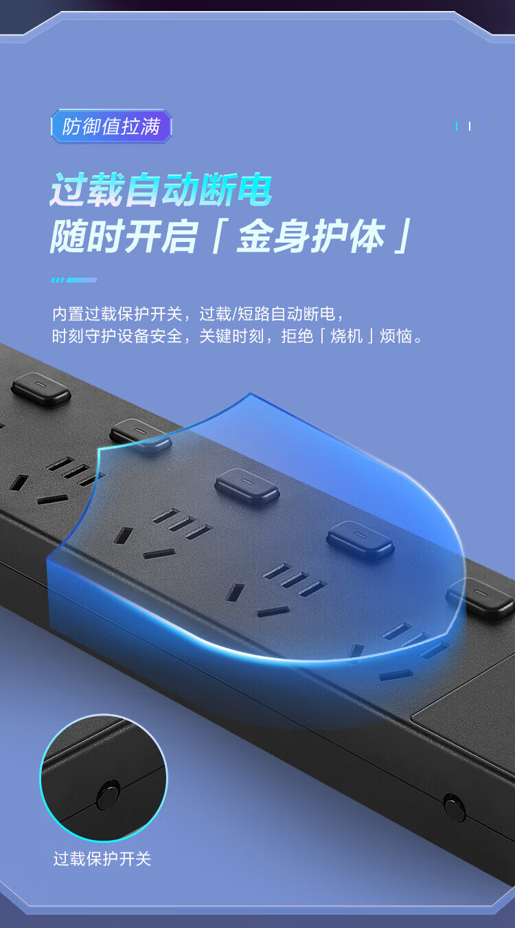 公牛(BULL)PDU桌面过载超功率保护桌下电竞机柜插座/插线板/插排/排插 6位分控 1.8米规格 GNE-P1063E黑