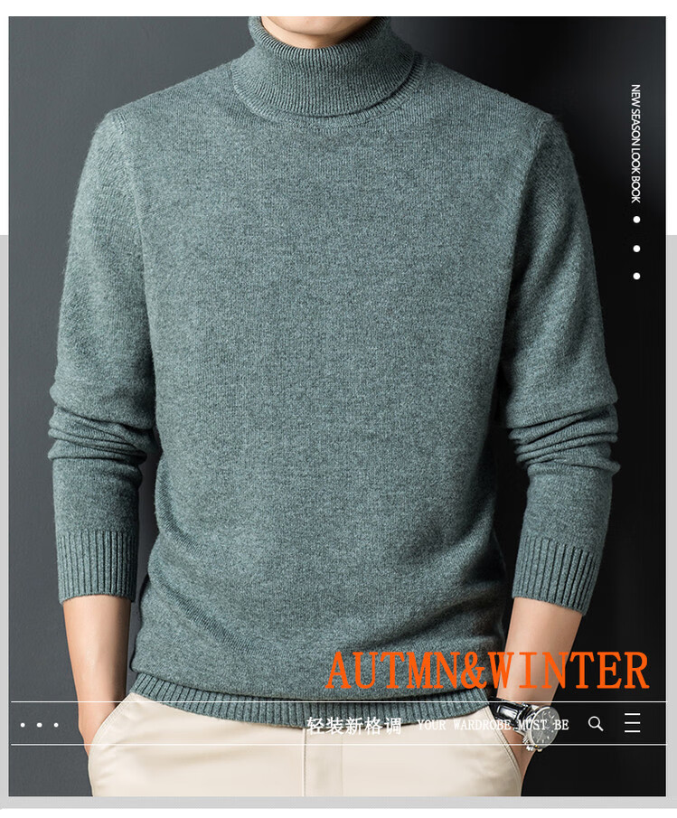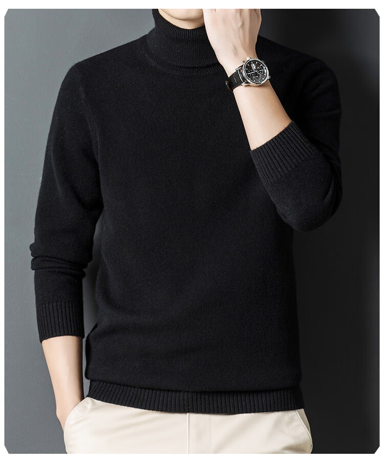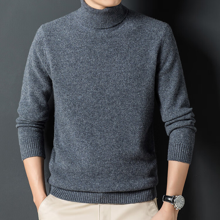 Hengyuanxiang 100% wool turtleneck sweater men's warm pure wool sweater autumn and winter solid color bottoming sweater