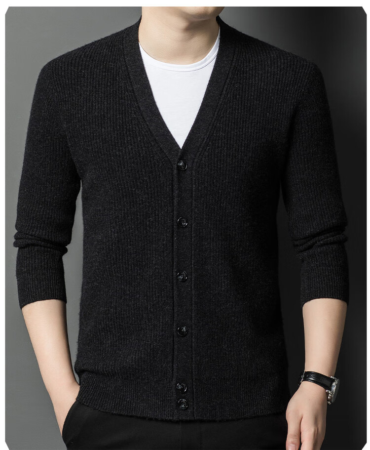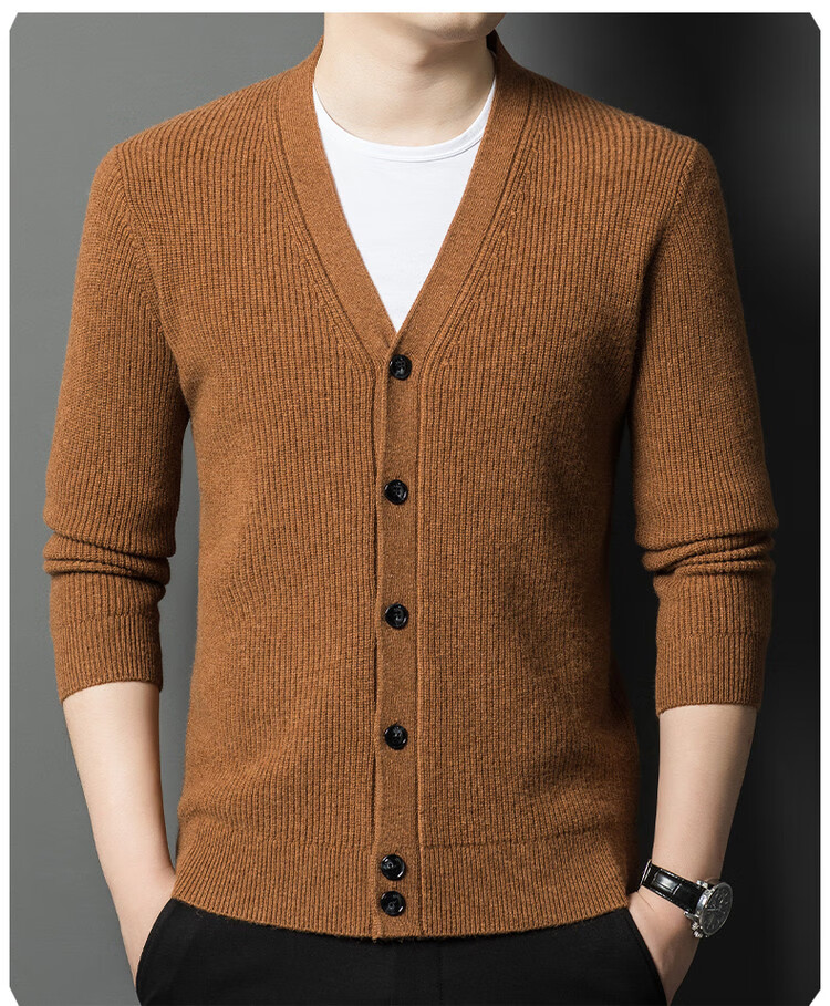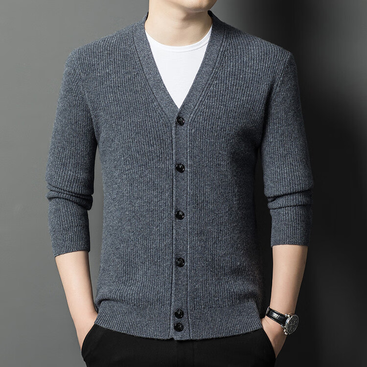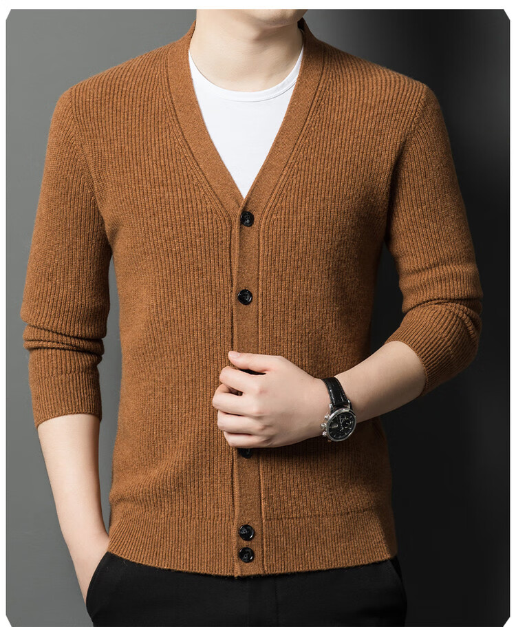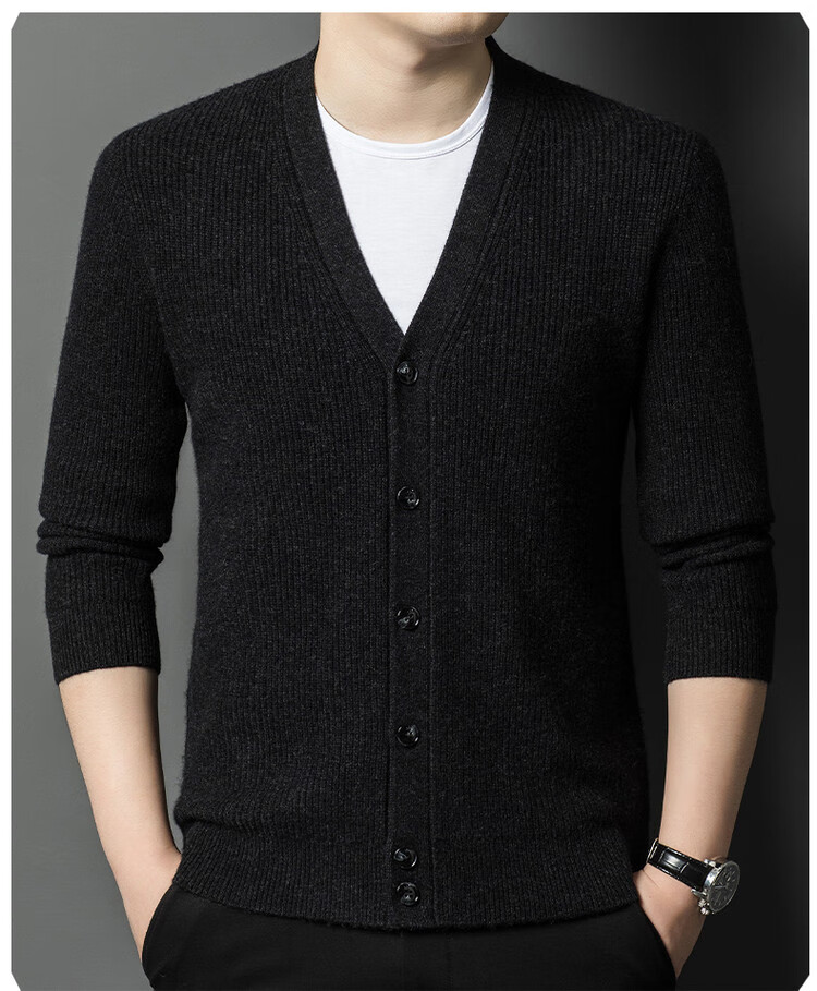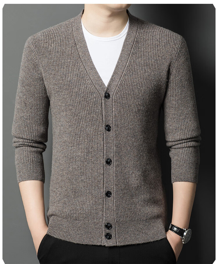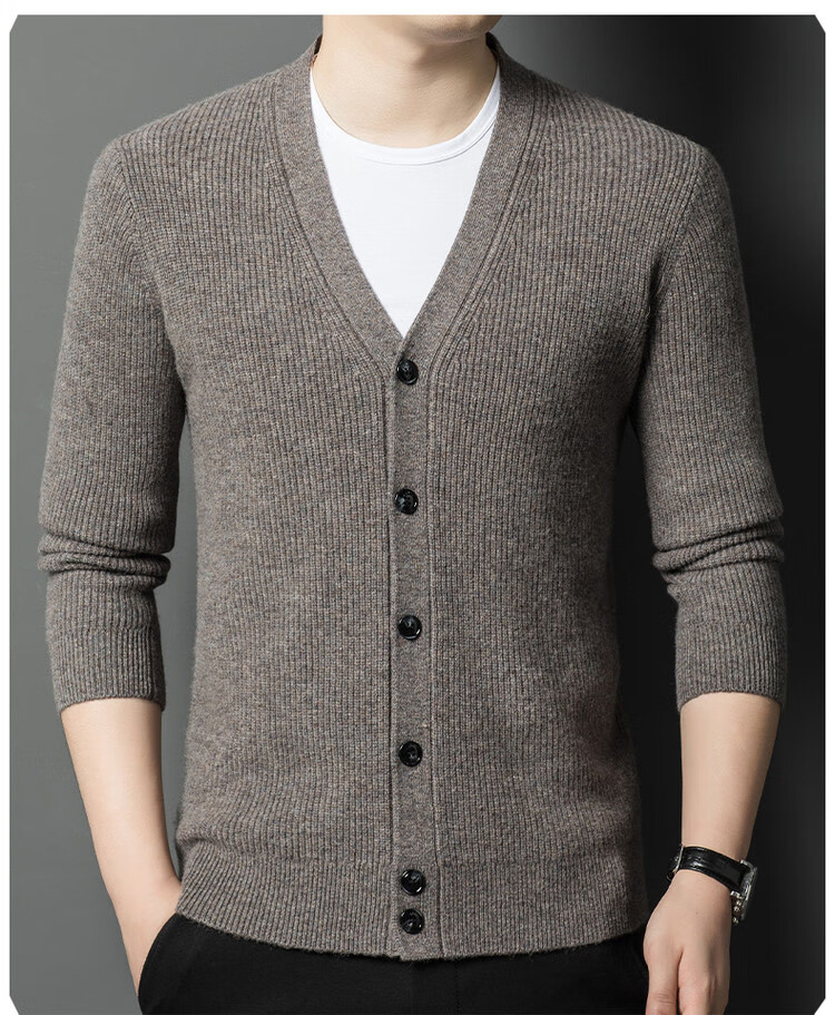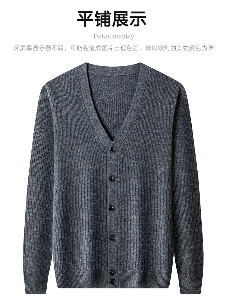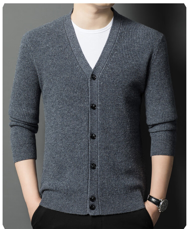 Hengyuanxiang 100% pure wool sweater men's cardigan V-neck knitted jacket dad casual thickened solid color sweater