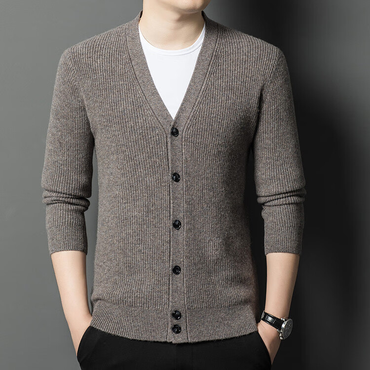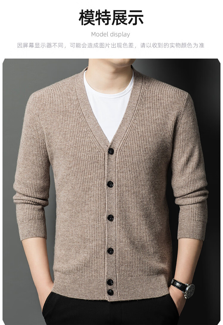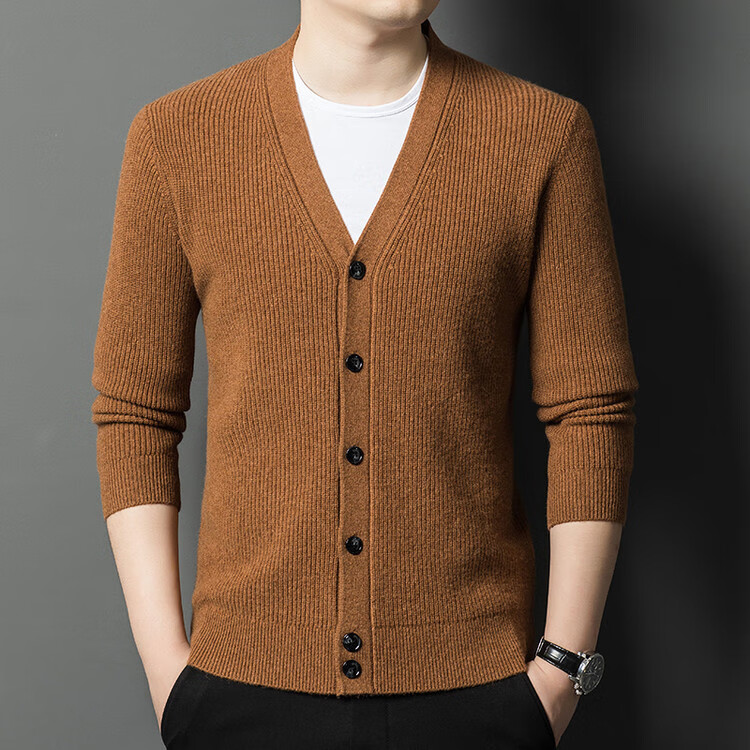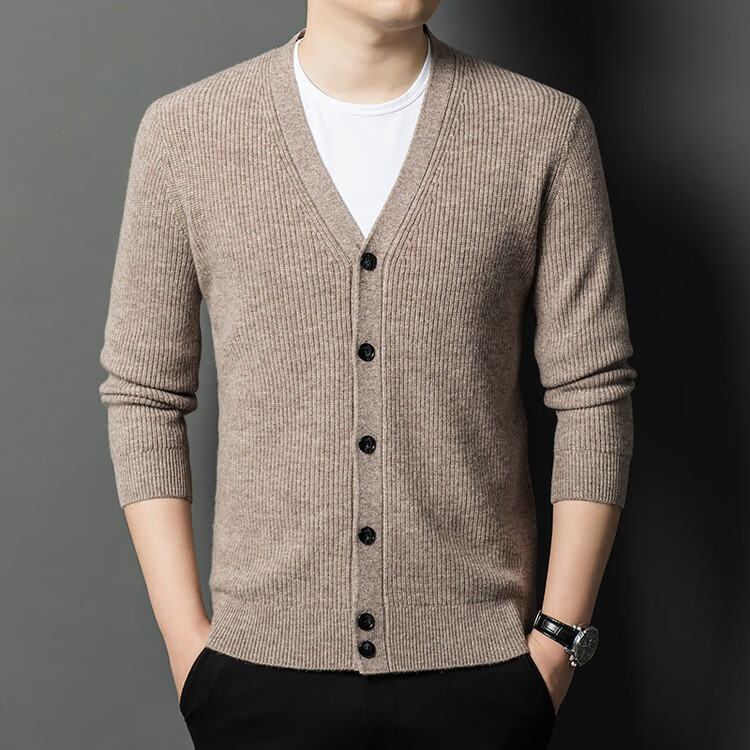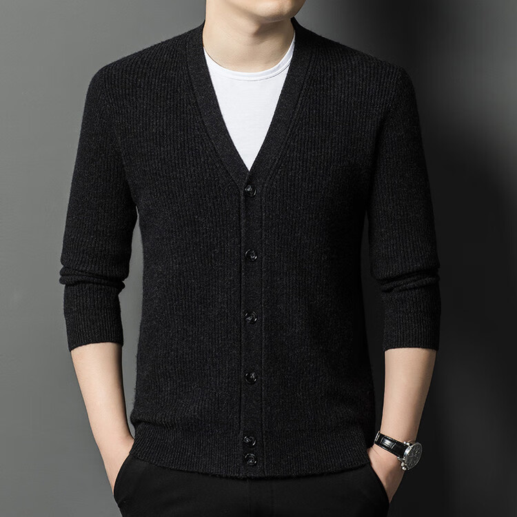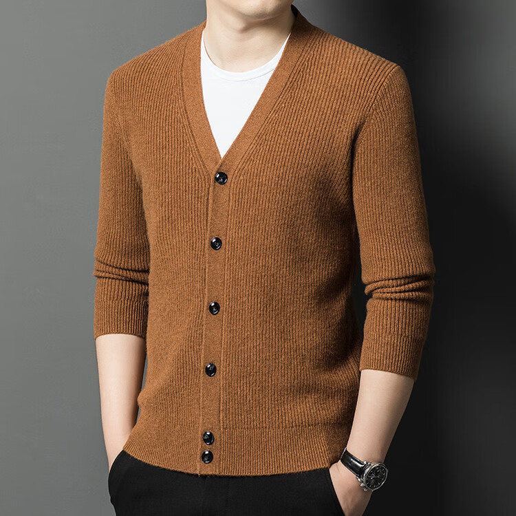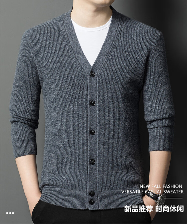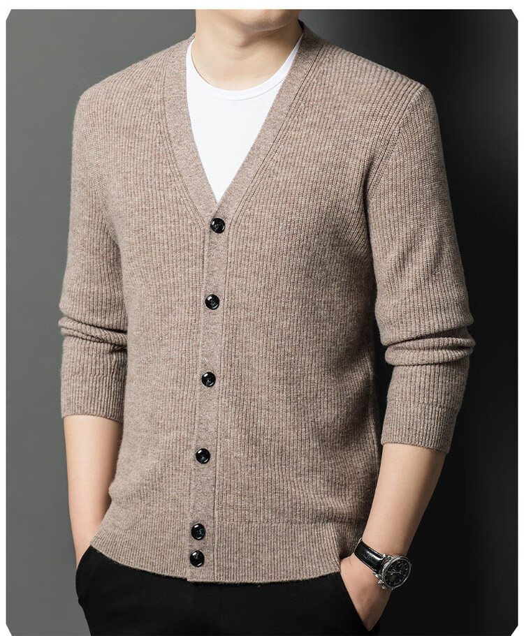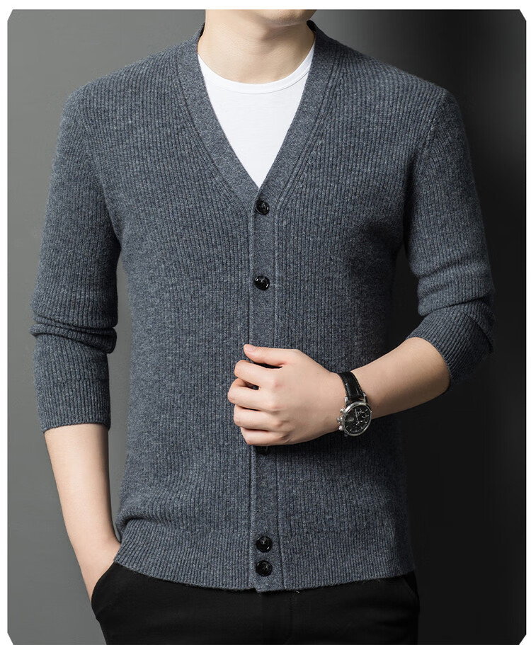 Hengyuanxiang 100% pure wool sweater men's cardigan V-neck knitted jacket dad casual thickened solid color sweater