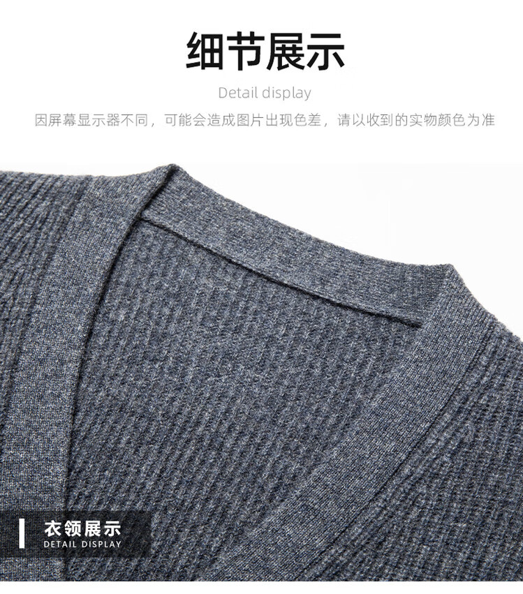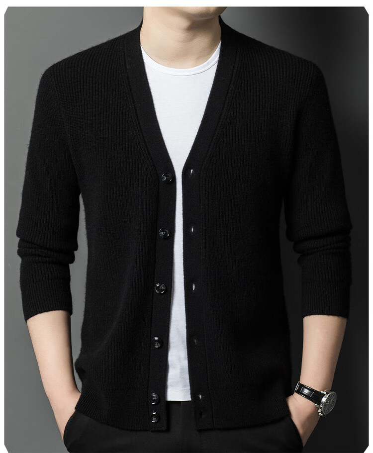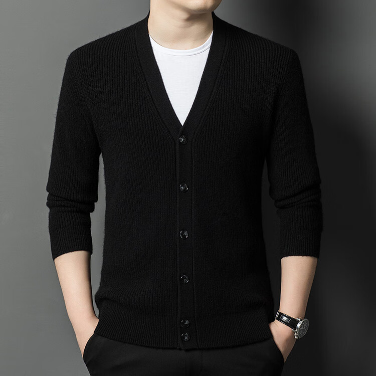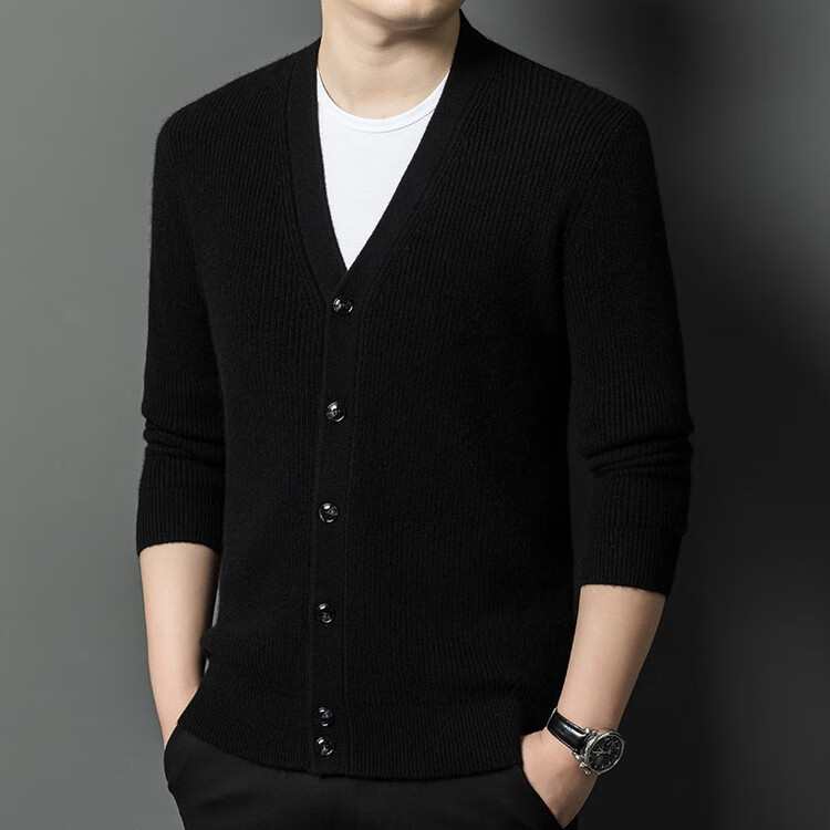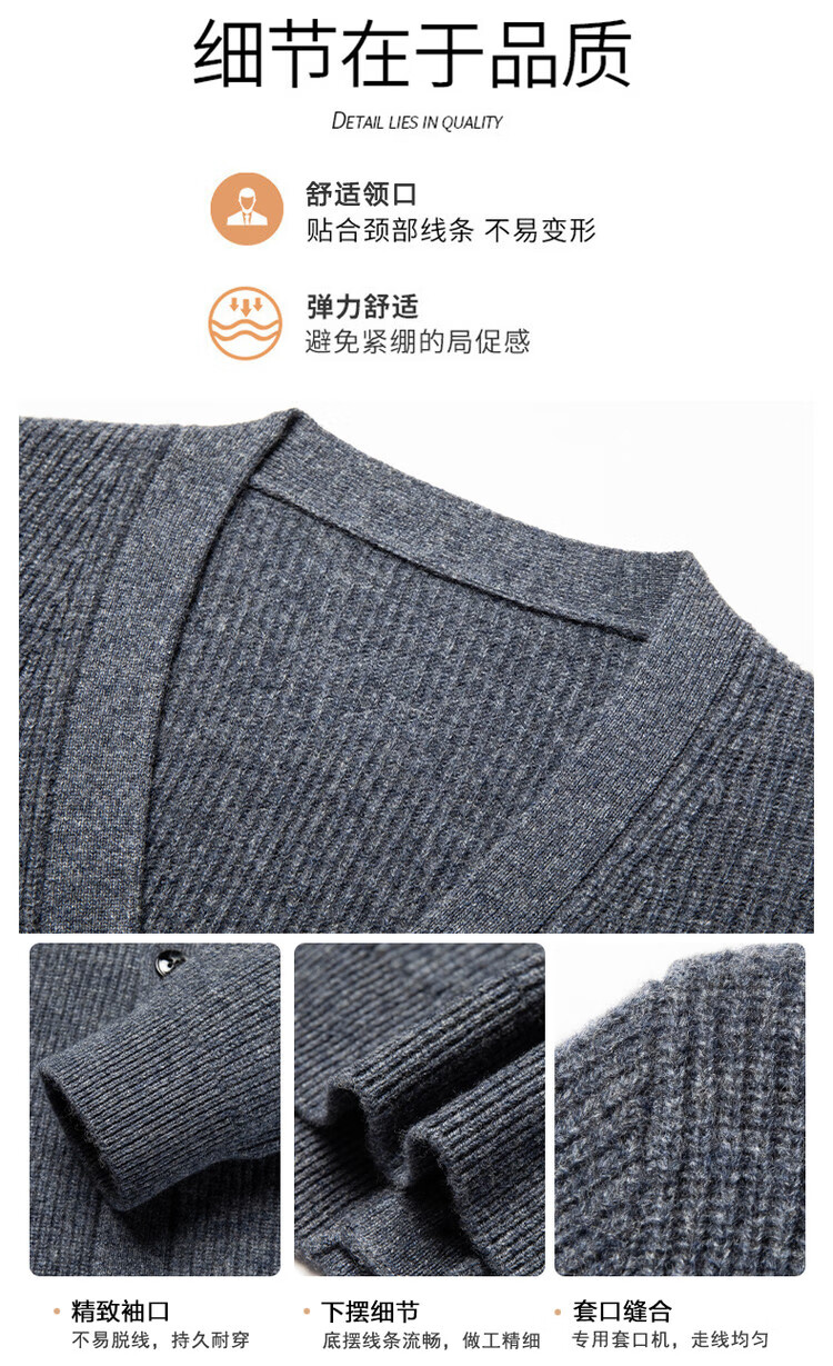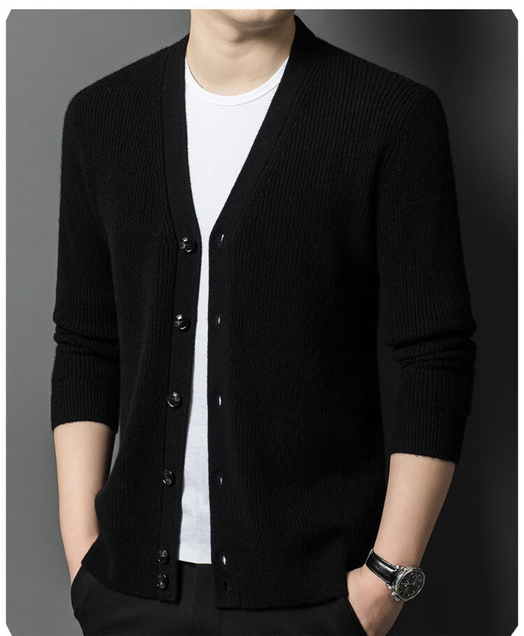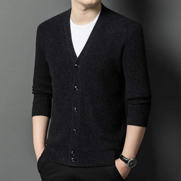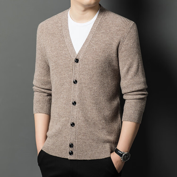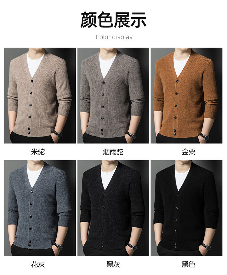 Hengyuanxiang 100% pure wool sweater men's cardigan V-neck knitted jacket dad casual thickened solid color sweater