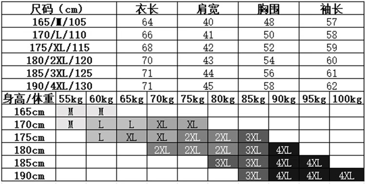 China (cm) 165 / 88-90 170 / 96-98 175 / 108-110 180 / 118-122 185 / 126-130
