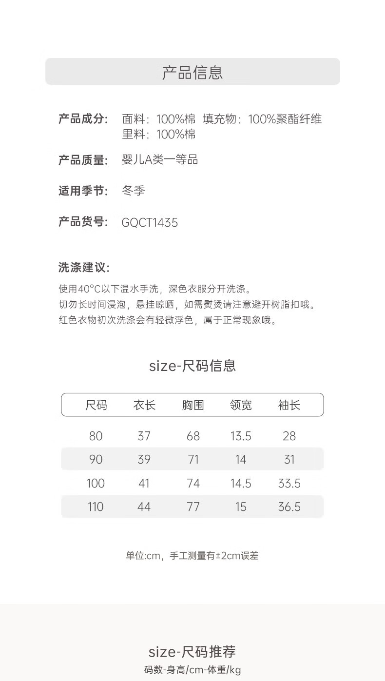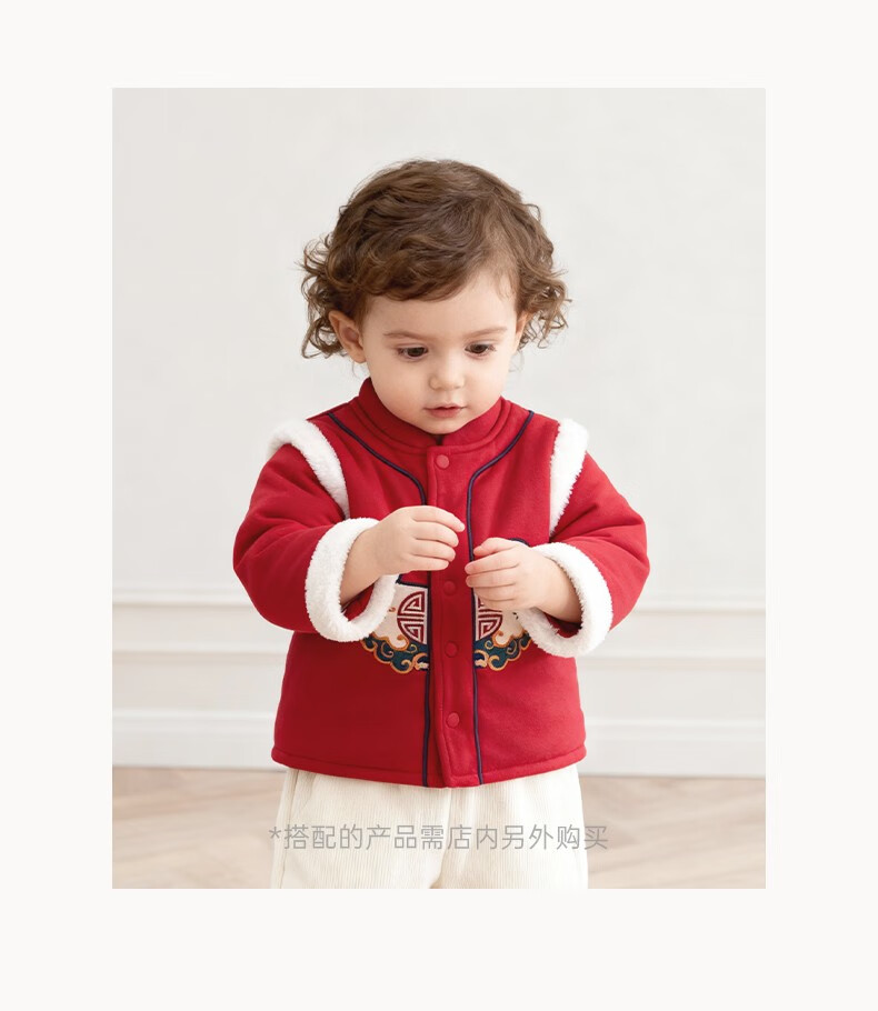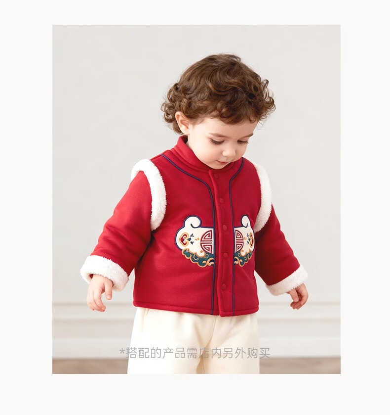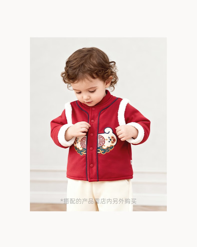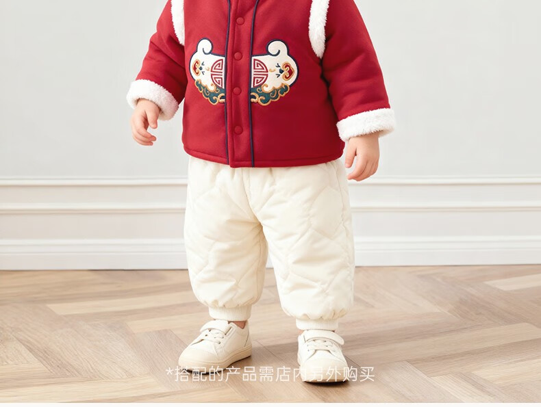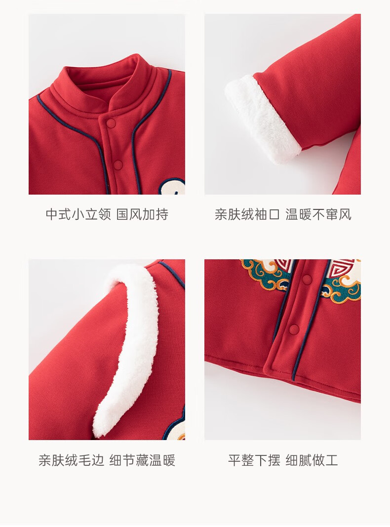 Guaqi Bear Warm Protective Cotton Baby Padded Warm Thickened Jacket Winter Antibacterial Red Festive New Year Cotton Clothes for Infants and Children
