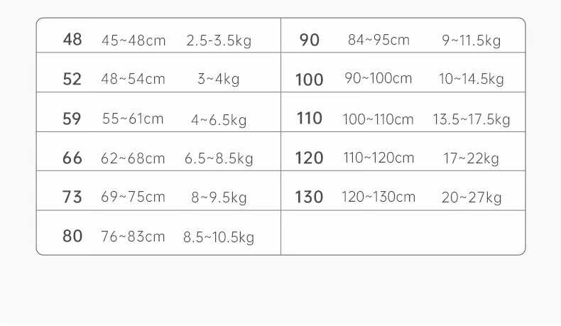Size (cm) 42 44 46 48 50
