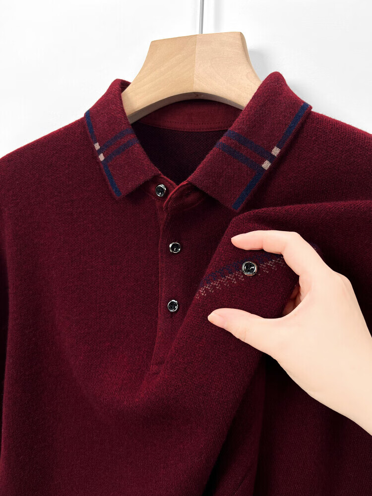 Hengyuanxiang 100% чистый шерстяной мужской свитер, новый зимний красный теплый свитер с лацканами для папы, толстый