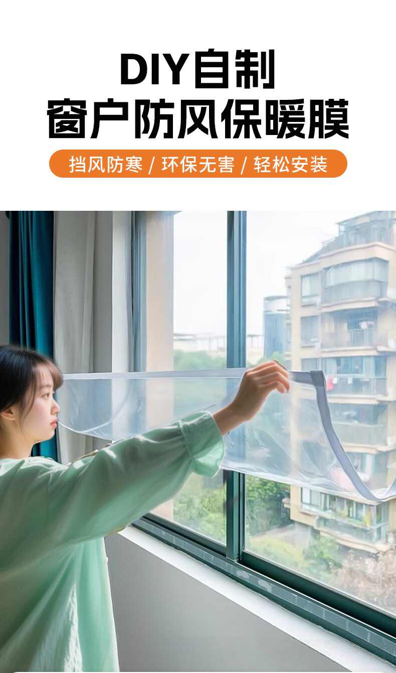 Mandelai window windproof and thermal insulation film, window sealing plastic film, air leakage artifact, windproof, cold and warm, fully enclosed sealed plastic cloth thermal insulation film, double layer thickening, rural winter 1.5*1.5m