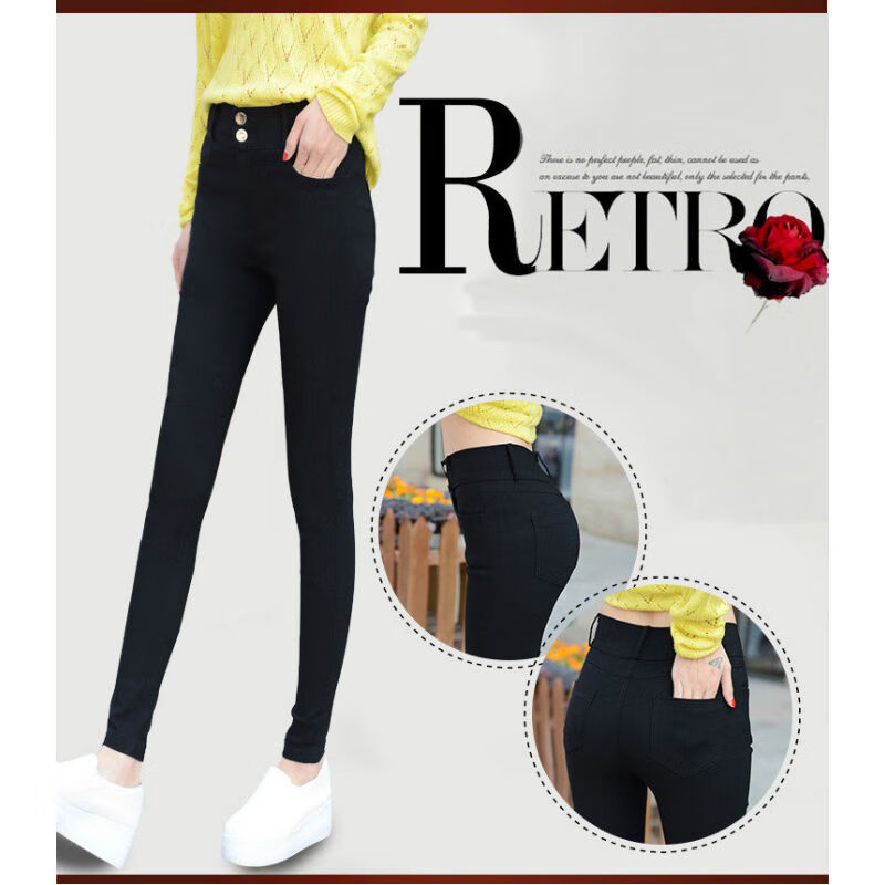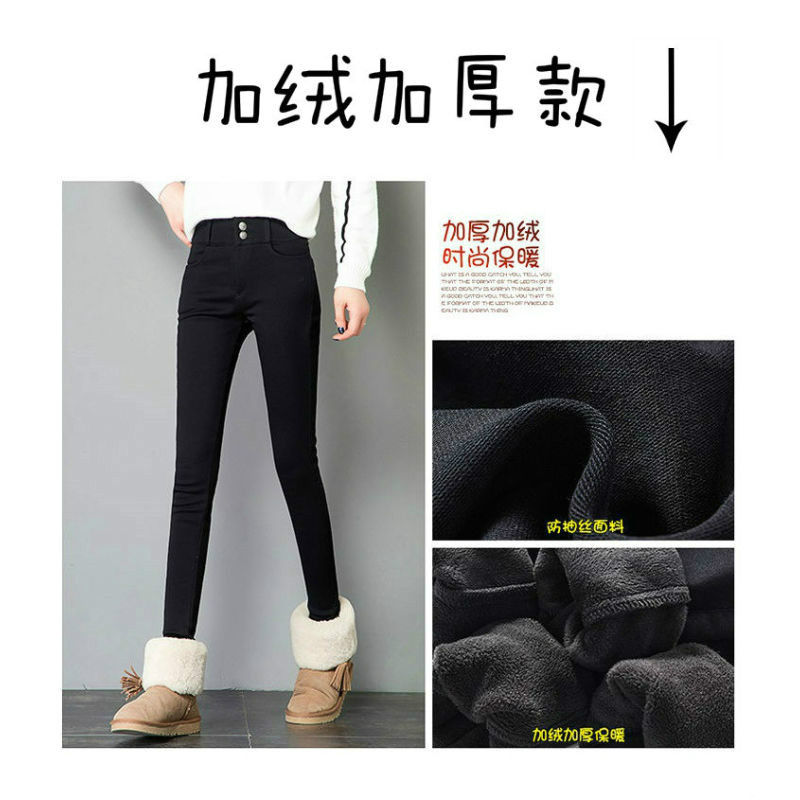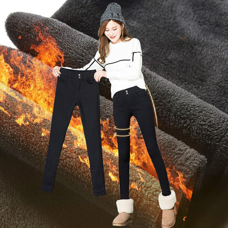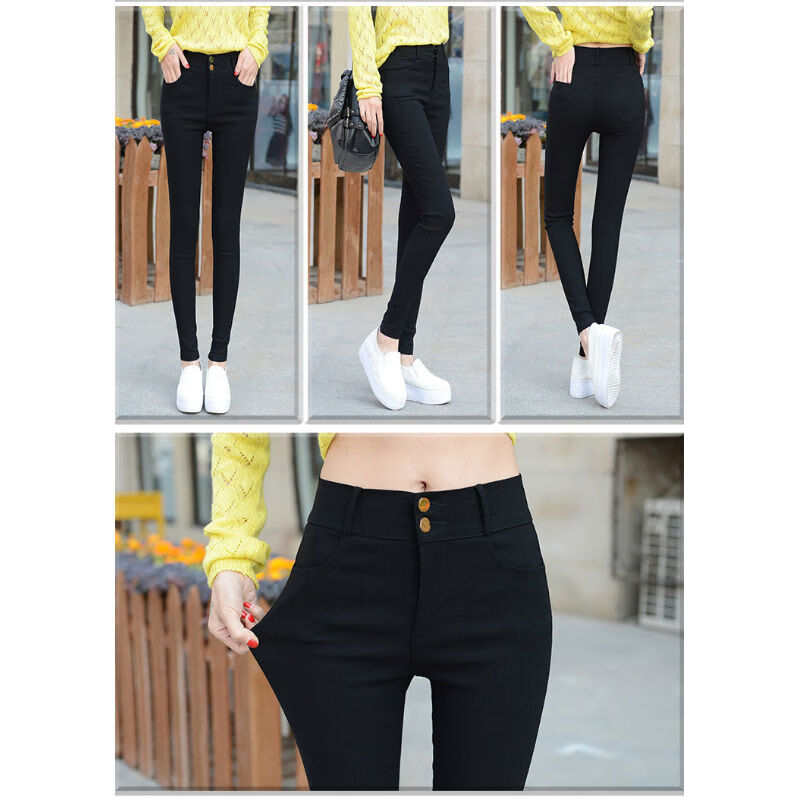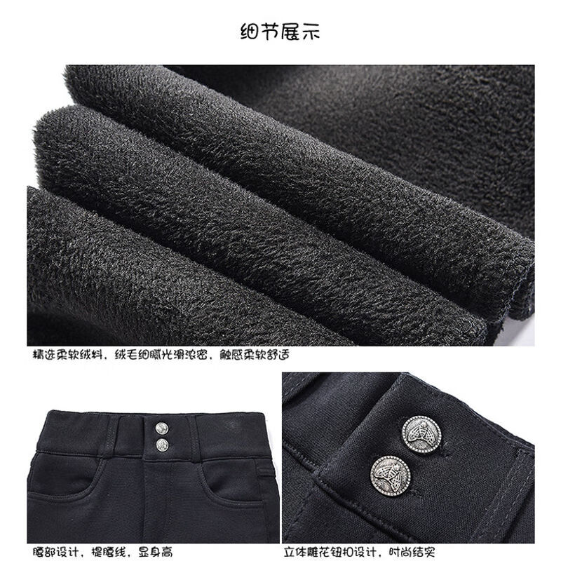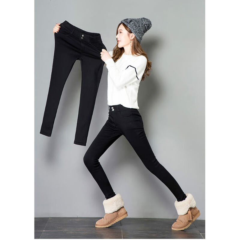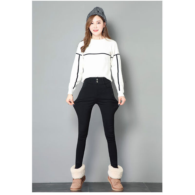 Isadore high-waisted leggings for outer wear for women, autumn and winter black pants, leggings, slim pencil pants, small leg pants, women's fleece pants, two buttons (thick fleece) L (recommended 100-110 Jin Jin equals 0.5 kg)