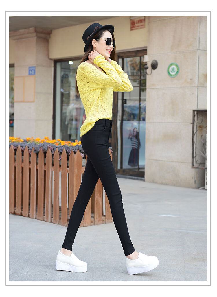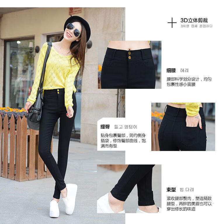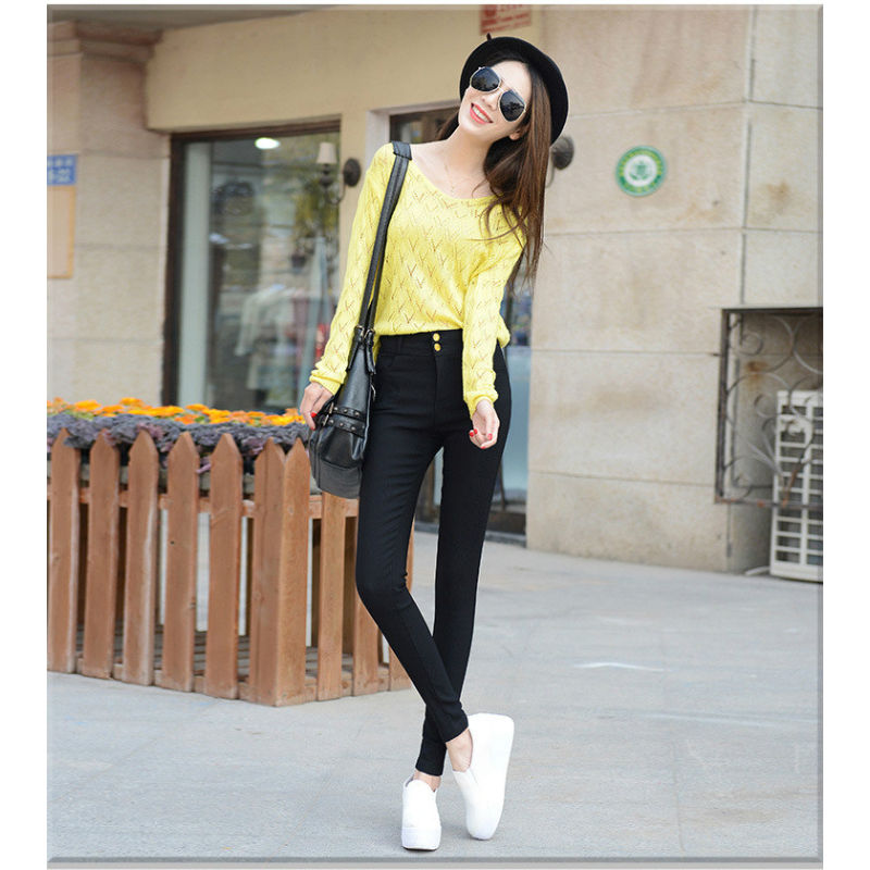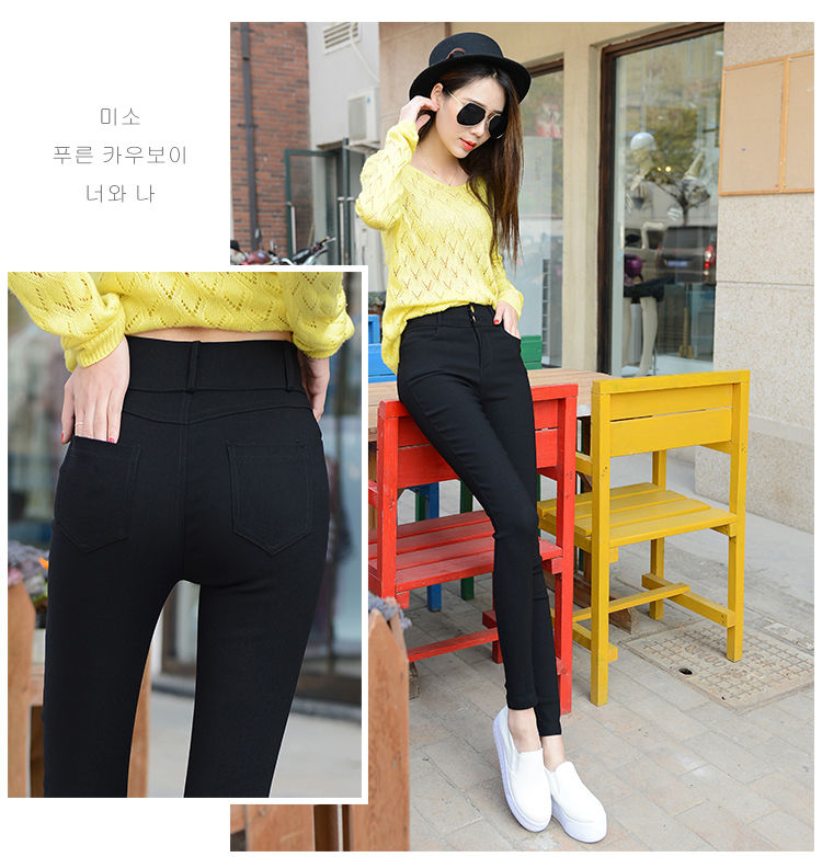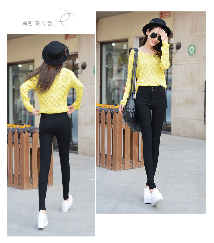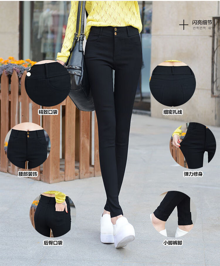 Isadore high-waisted leggings for outer wear for women, autumn and winter black pants, leggings, slim pencil pants, small leg pants, women's fleece pants, two buttons (thick fleece) L (recommended 100-110 Jin Jin equals 0.5 kg)