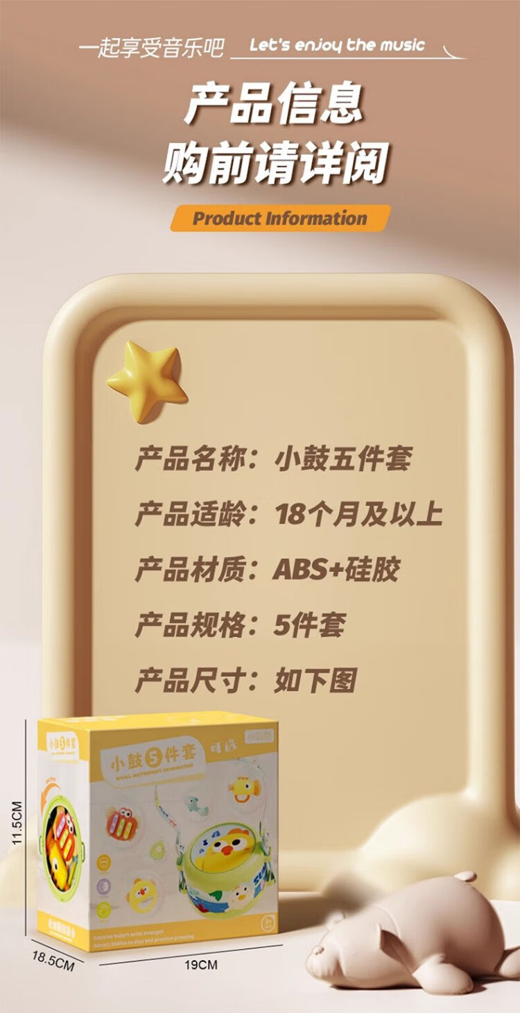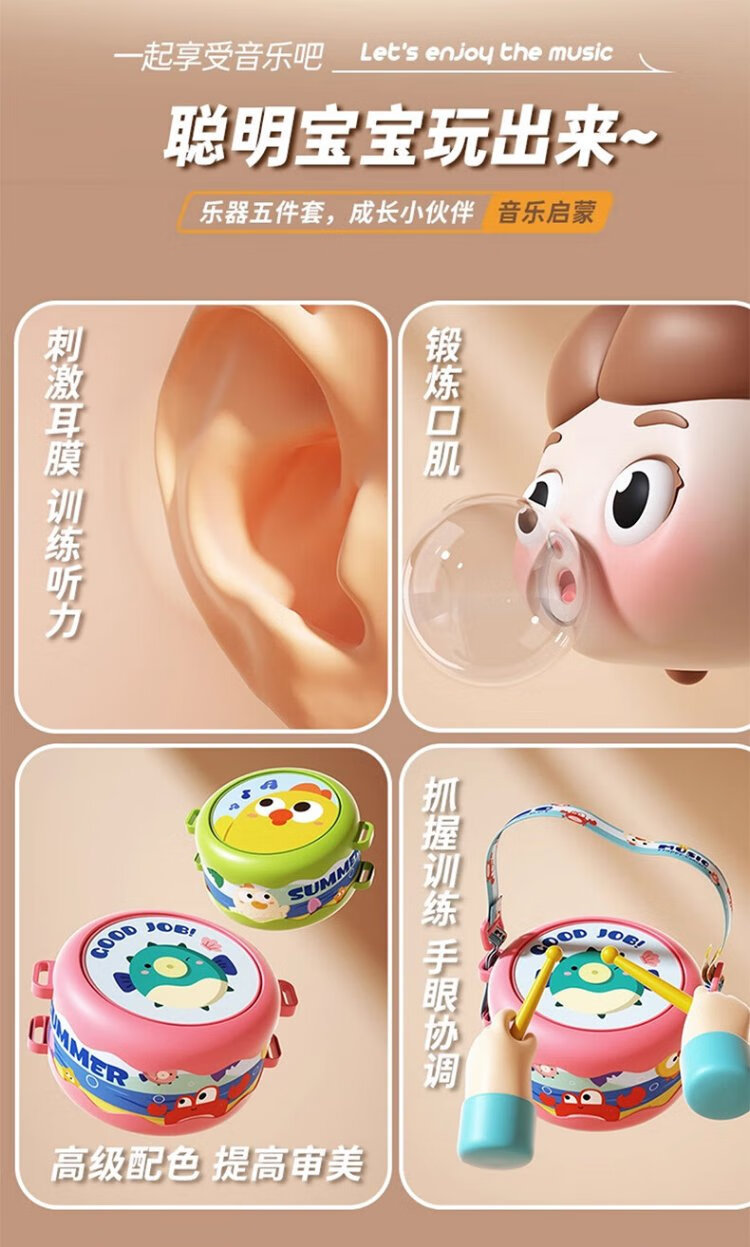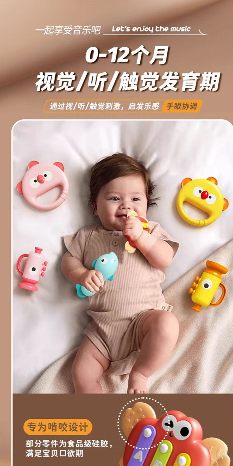 COOKSS baby hand drum 0 to 1 year old 3-6 months and above children's percussion instrument infant tambourine percussion toy