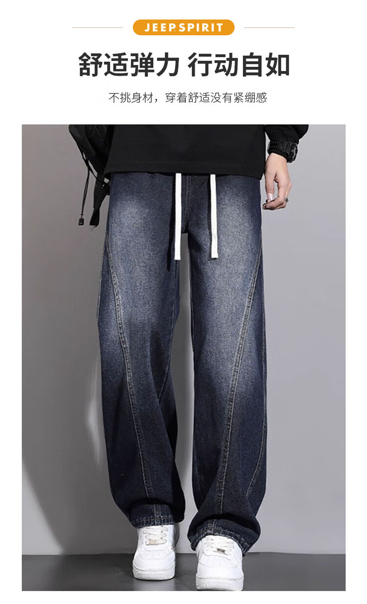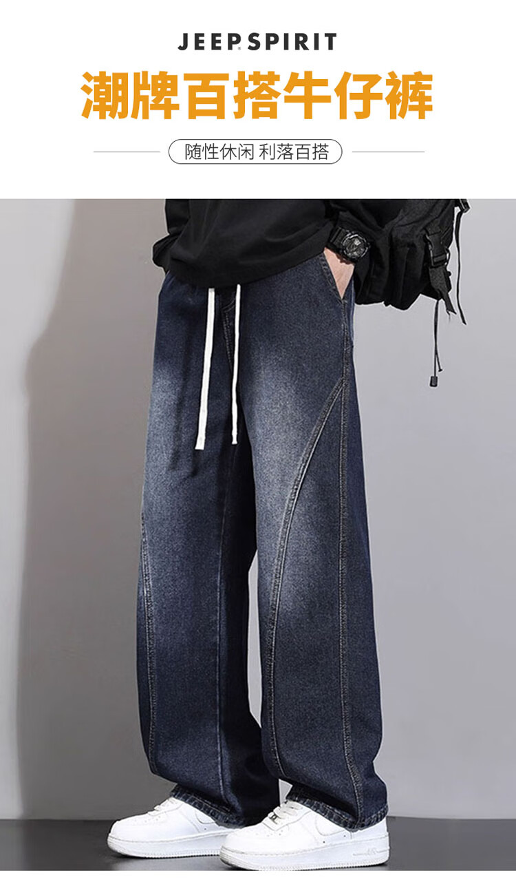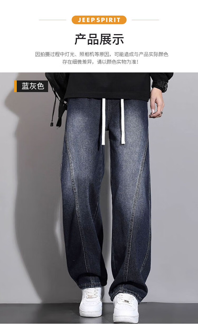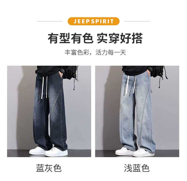 JEEP SPIRIT Jeep Scimitar Jeans Men's Autumn and Winter Retro Gradient Trendy Loose Straight Pants Blue Gray XL