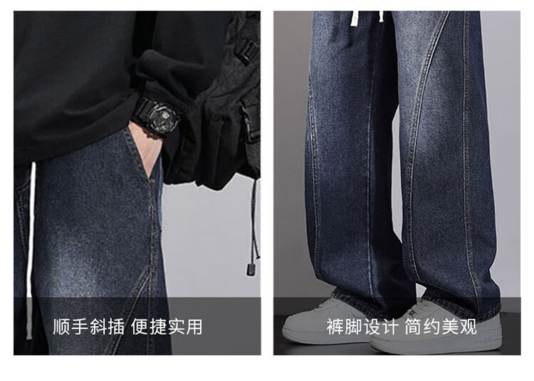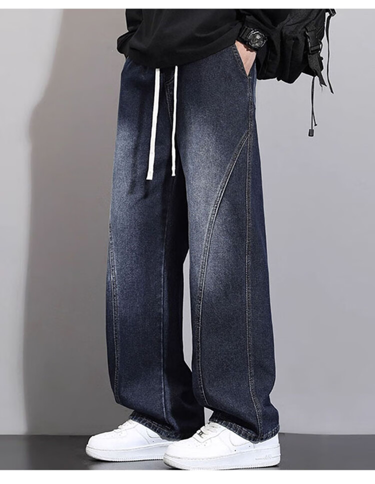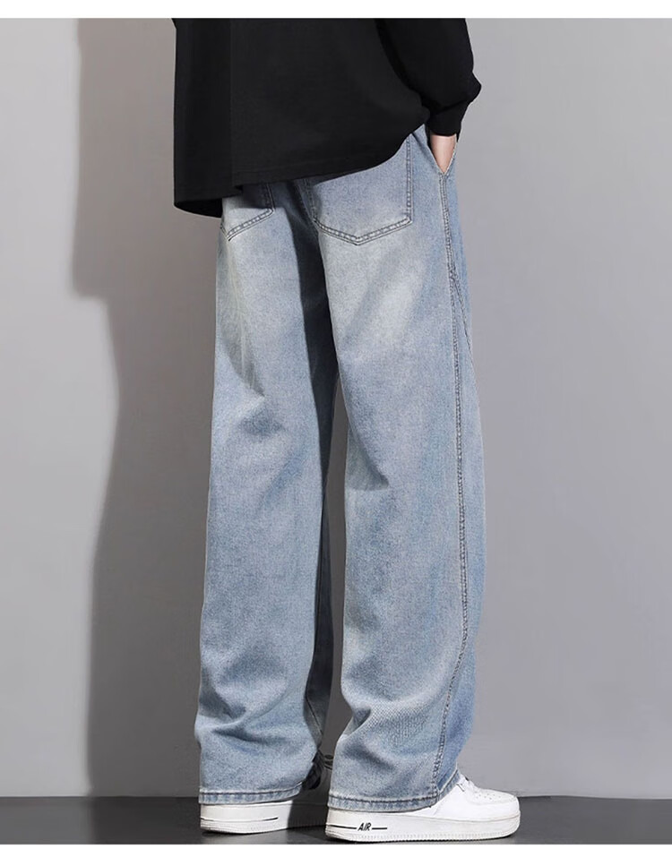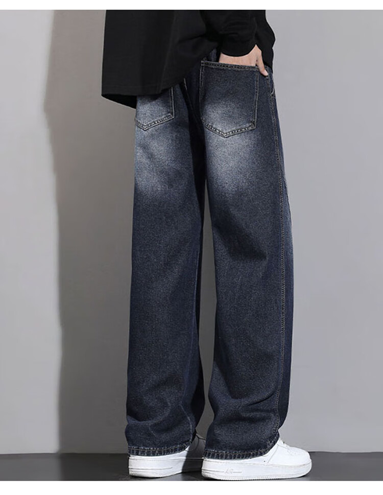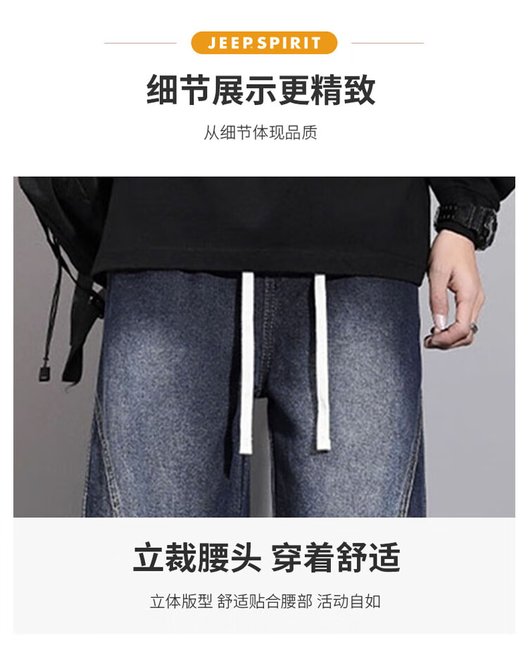 JEEP SPIRIT Jeep Scimitar Jeans Men's Autumn and Winter Retro Gradient Trendy Loose Straight Pants Blue Gray XL