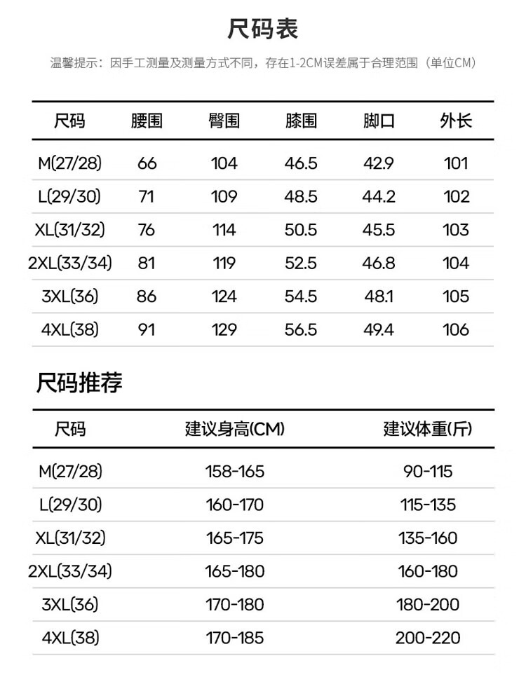 Outseam (cm) 99 cm 101.5 cm 104 cm 106.5 cm 109 cm