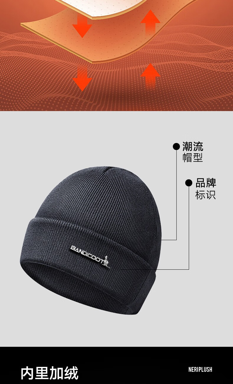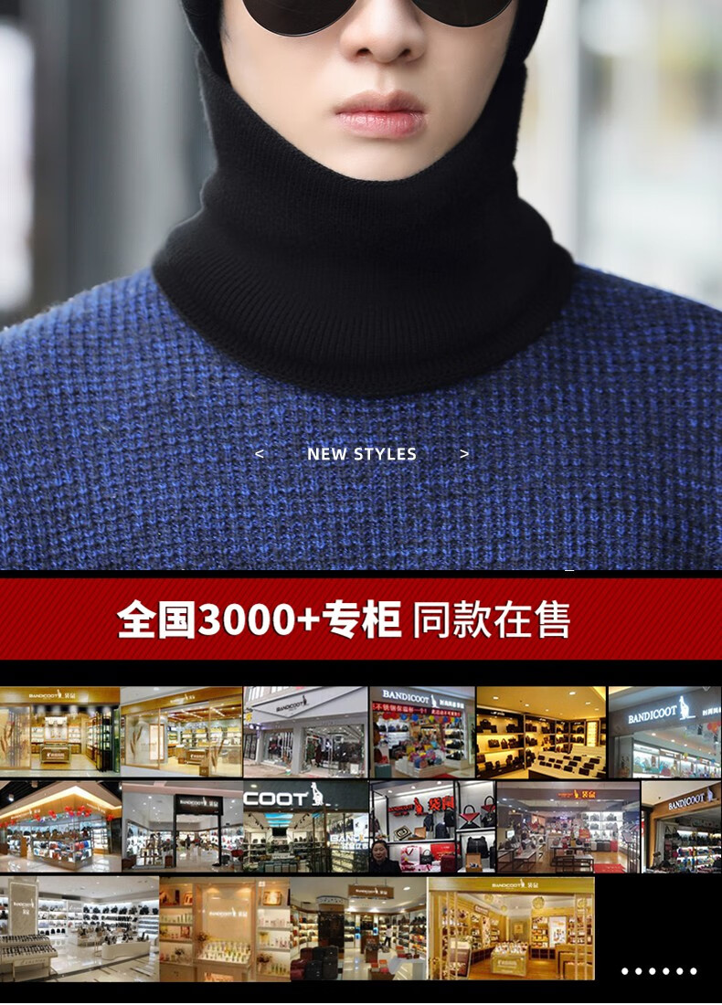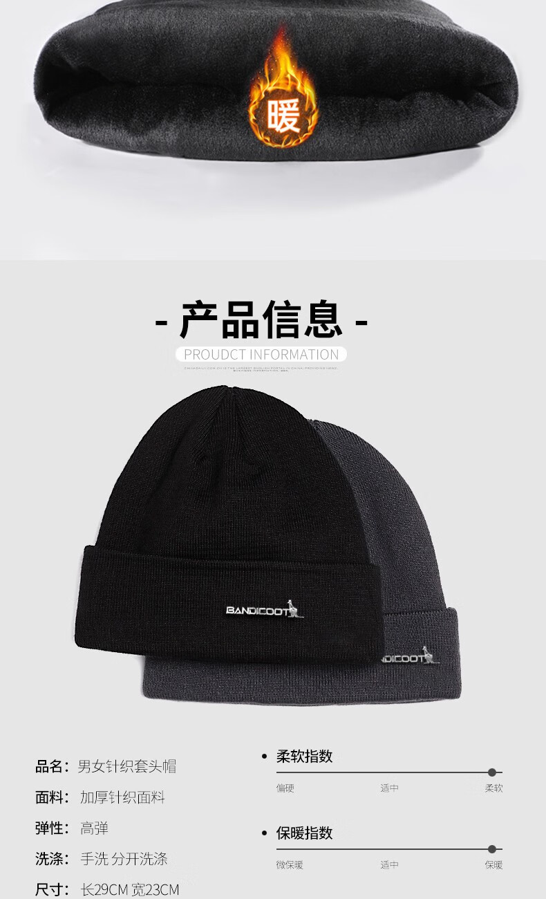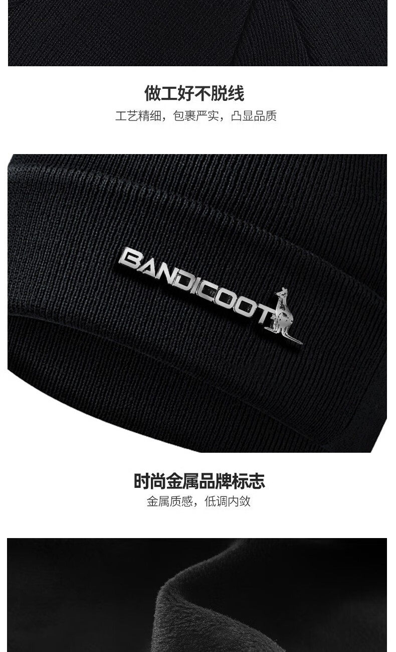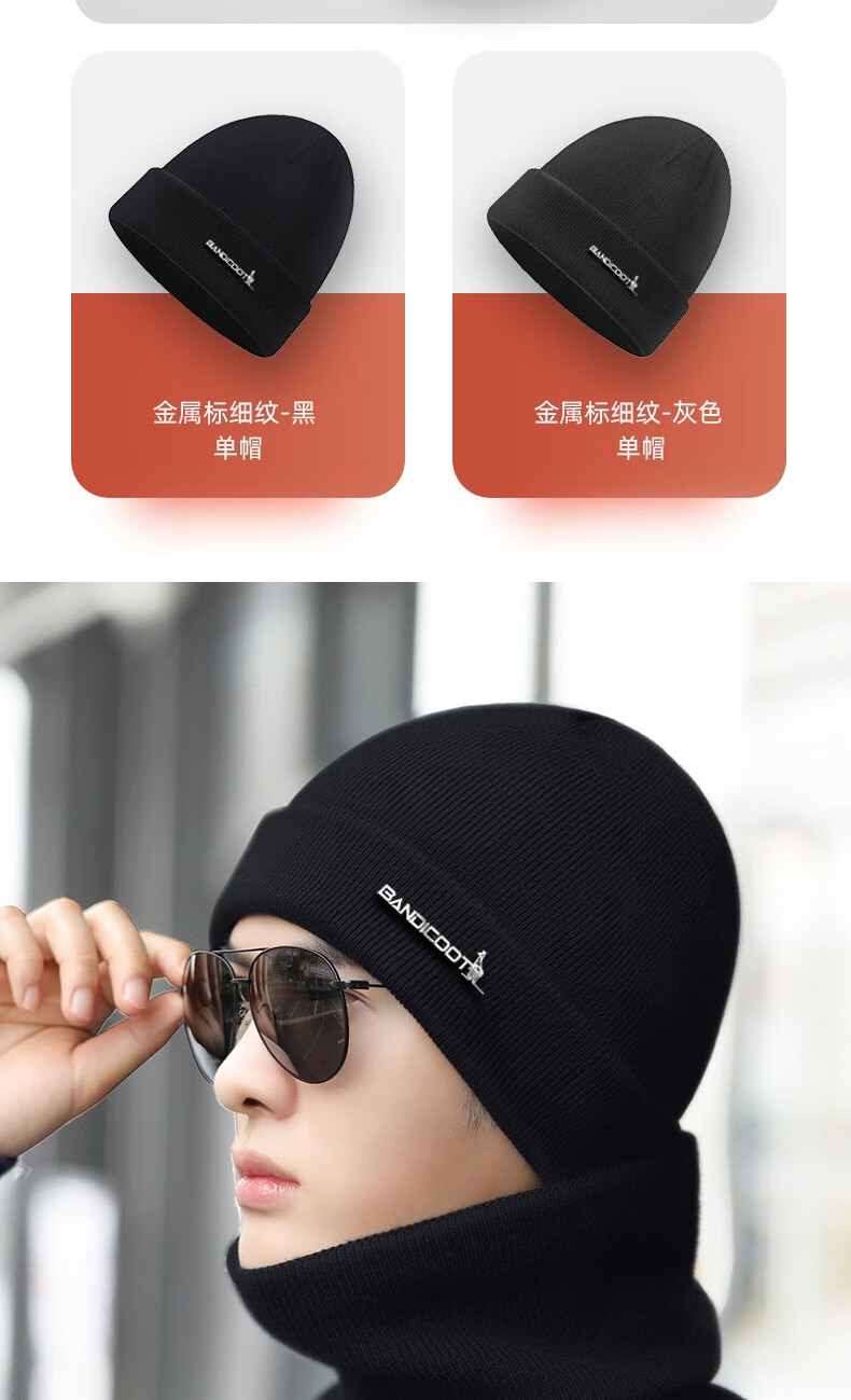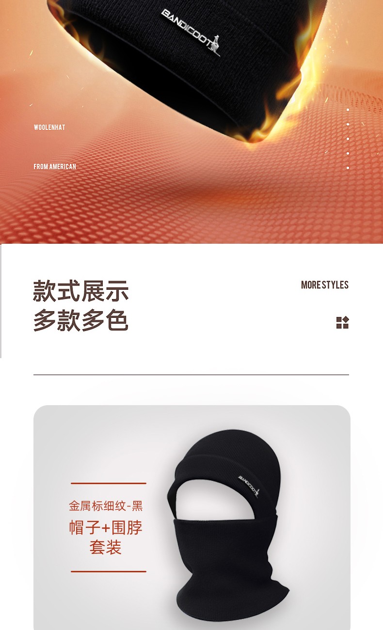 Fashionable style kangaroo hat for men, winter woolen hat for men, thickened with velvet to keep warm, outdoor cycling, cold and windproof skiing knitted hat for women, black hat + neck cover, thickened with velvet