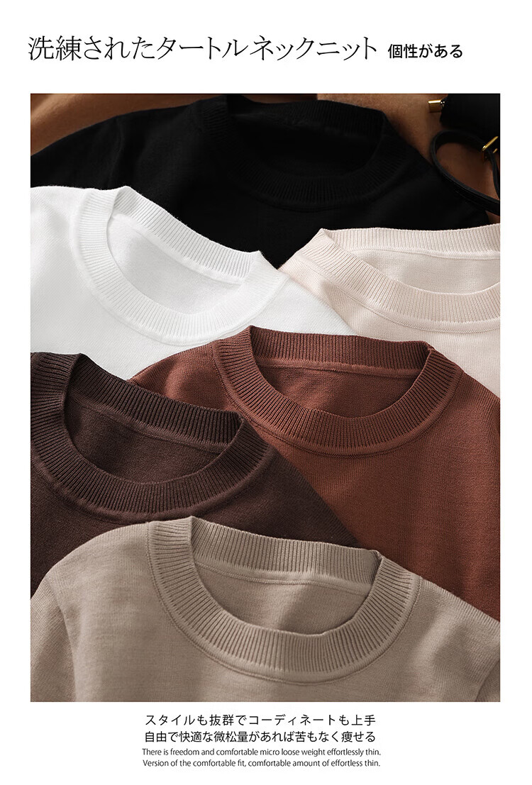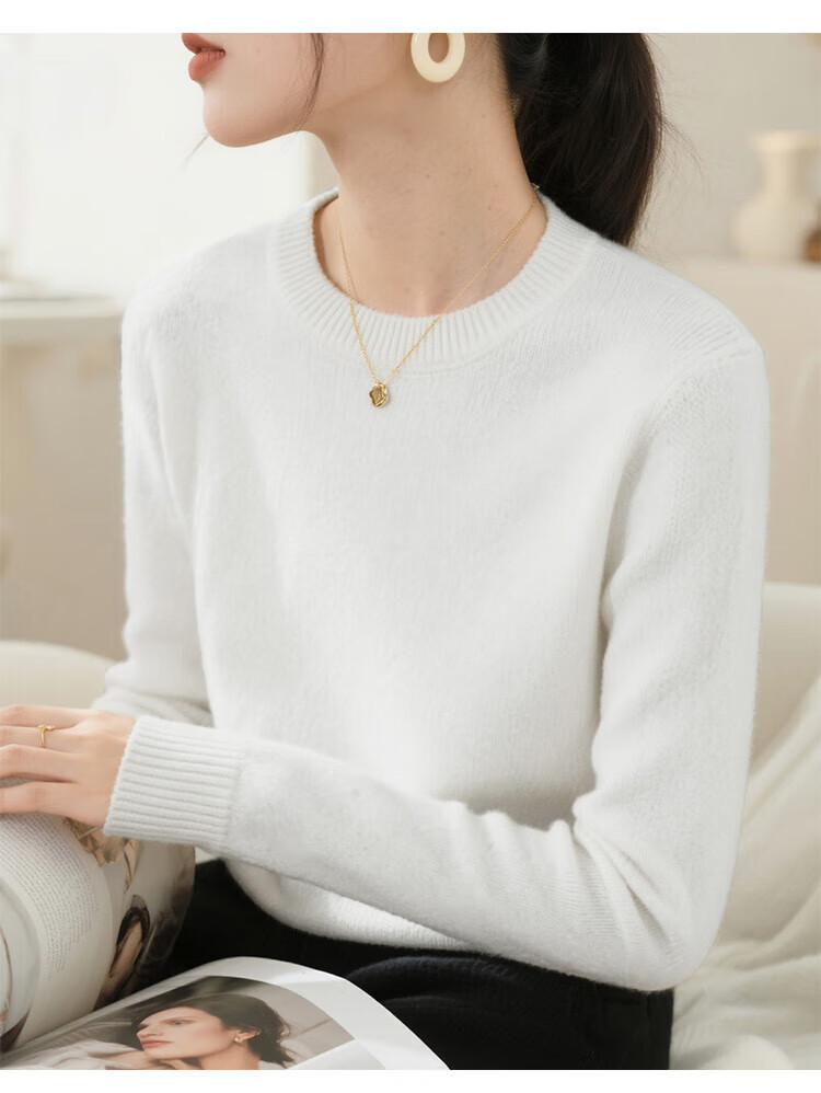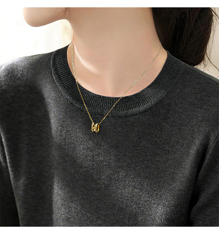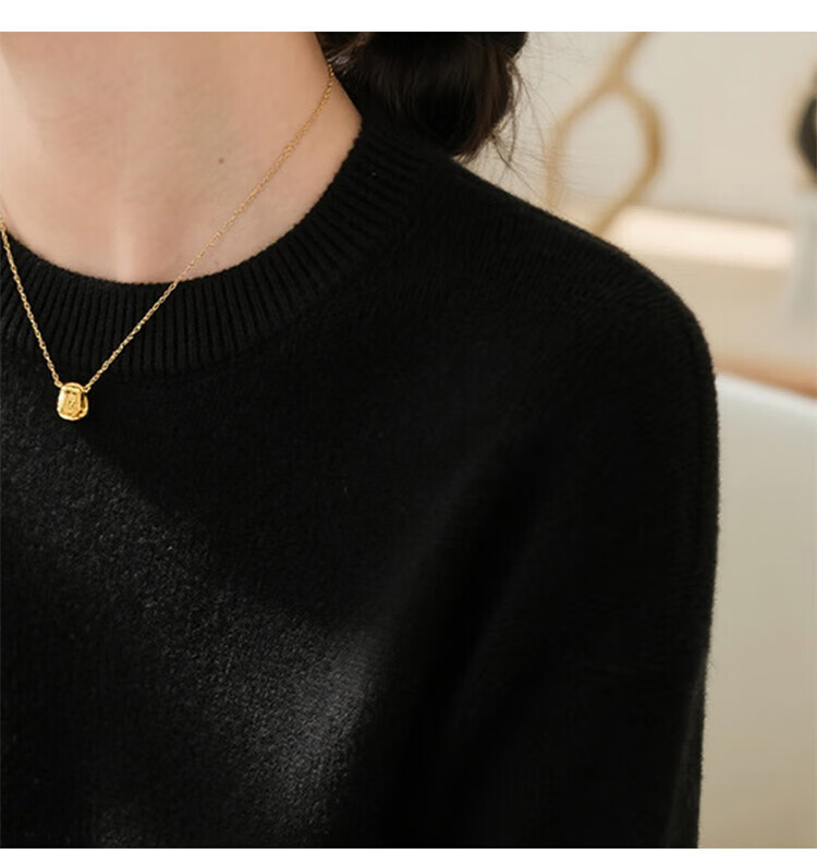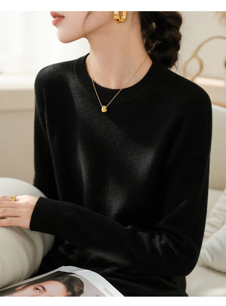 GUJIN round neck knitted bottoming shirt for women, warm top, sweater, long sleeve black