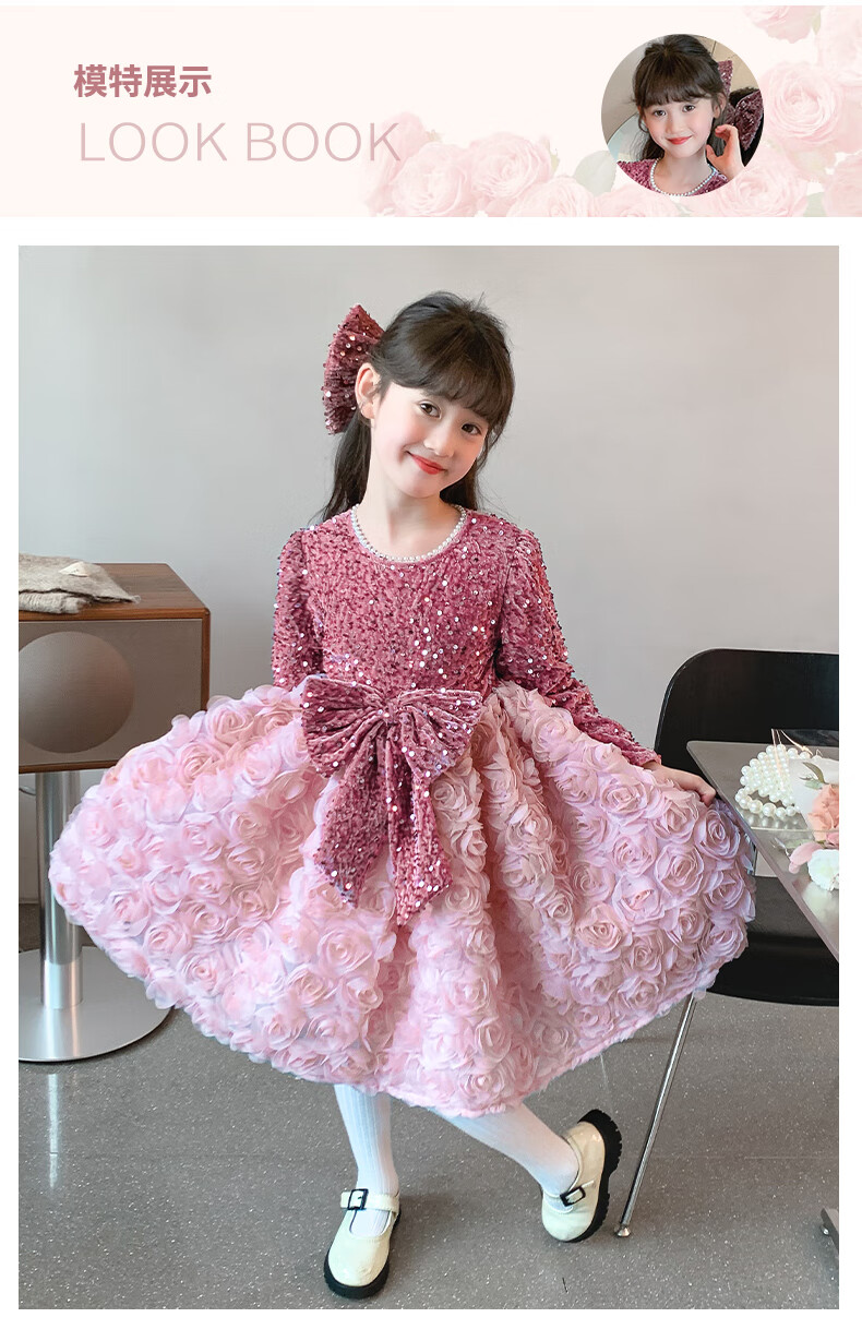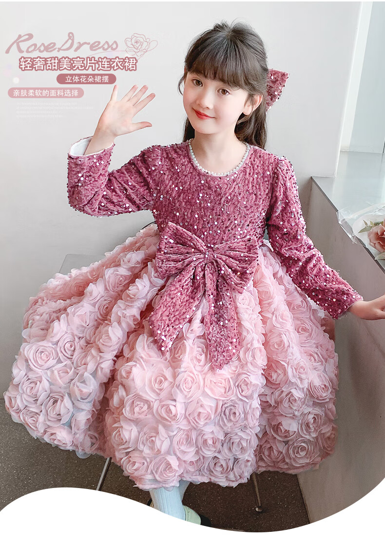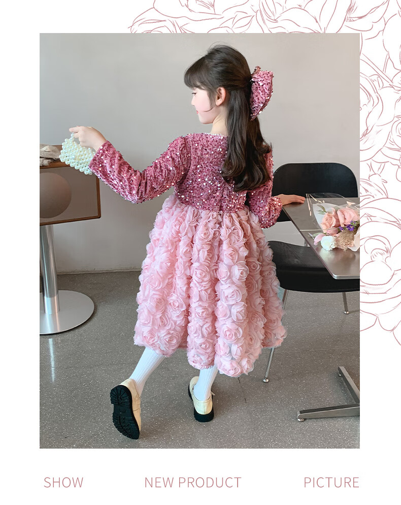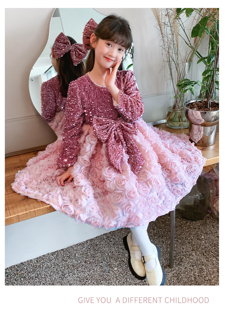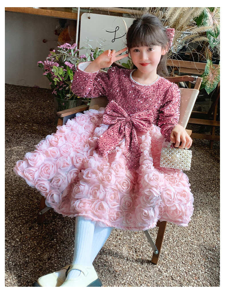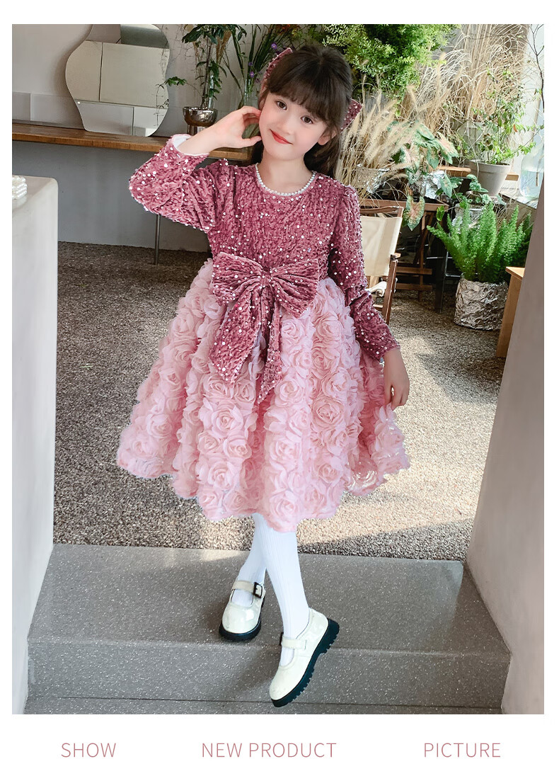 Piggy Banner (PEPCO) Princess Dress Girls Fashionable Girls Sequin Birthday Dress Winter Children's Dress Pink Velvet 130