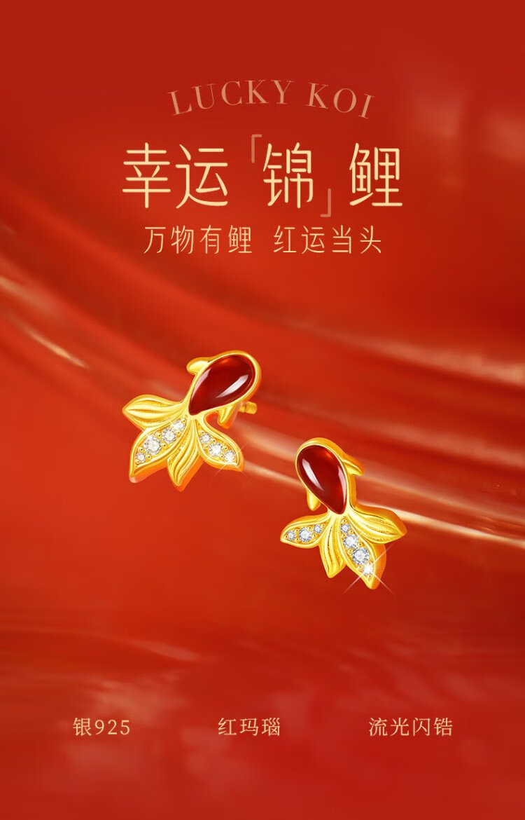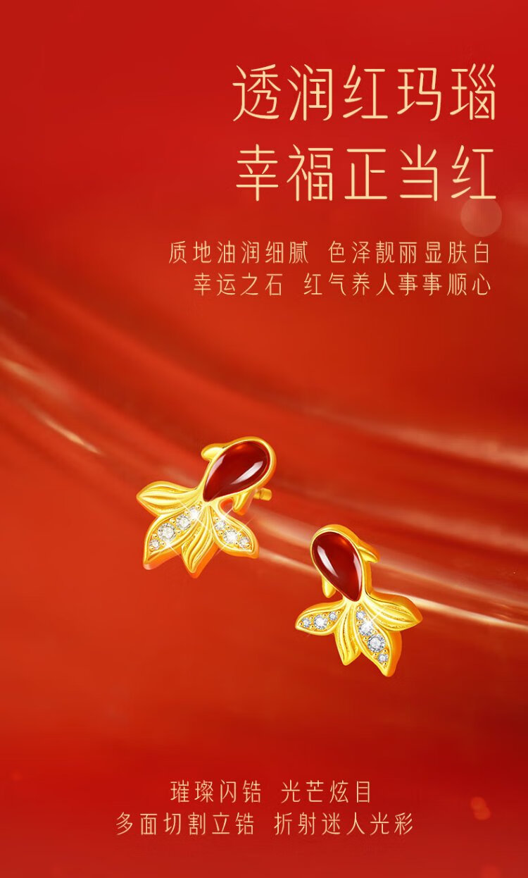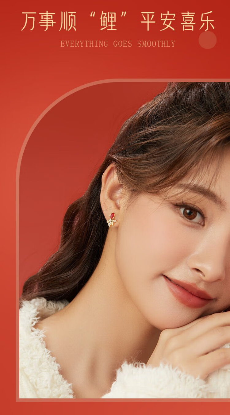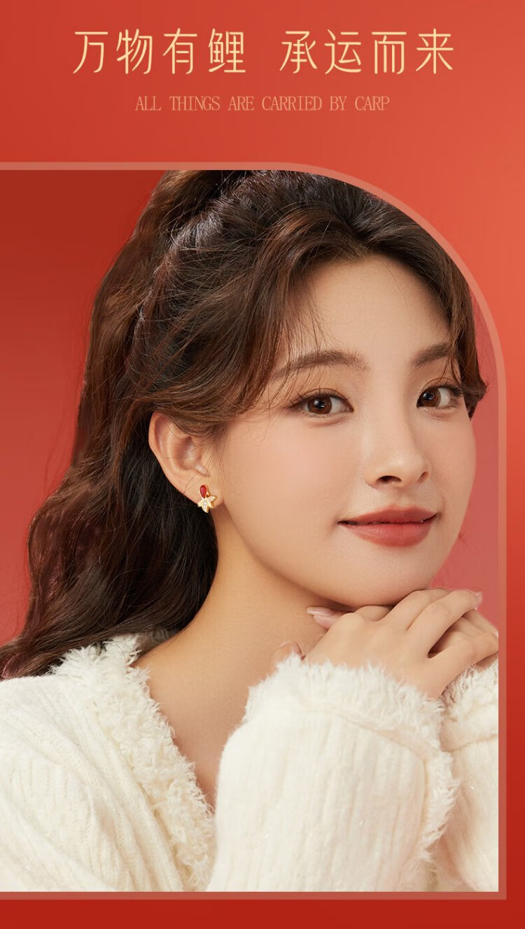 Central Chuang Fashion China Gold Authorized Earrings Women's Silver National Style Agate Koi Light Luxury Earrings Birthday Gift for Girlfriend