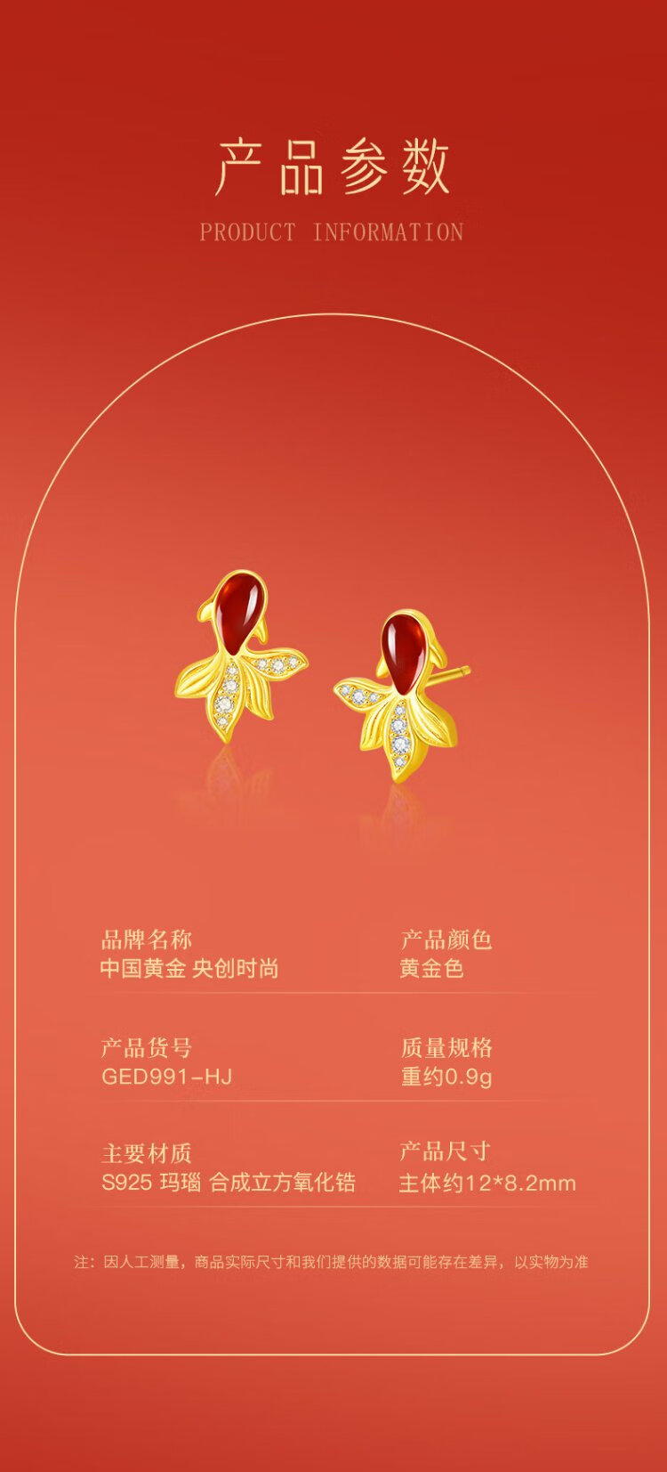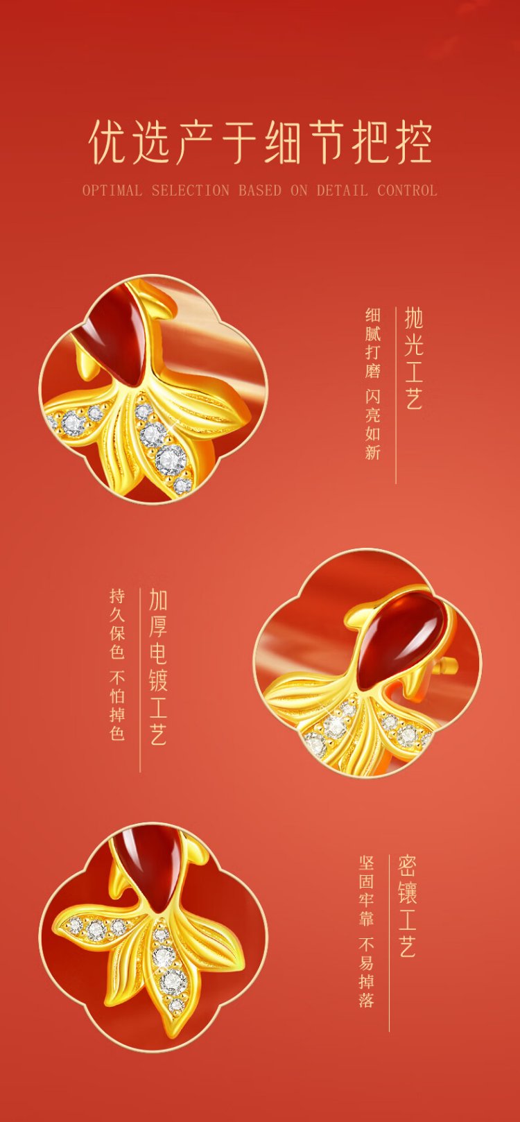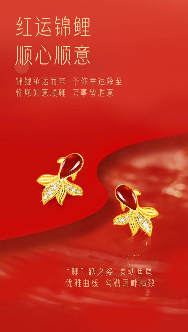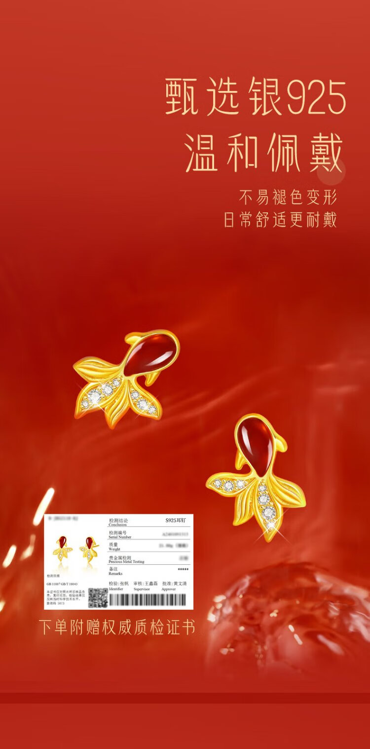 Central Chuang Fashion China Gold Authorized Earrings Women's Silver National Style Agate Koi Light Luxury Earrings Birthday Gift for Girlfriend