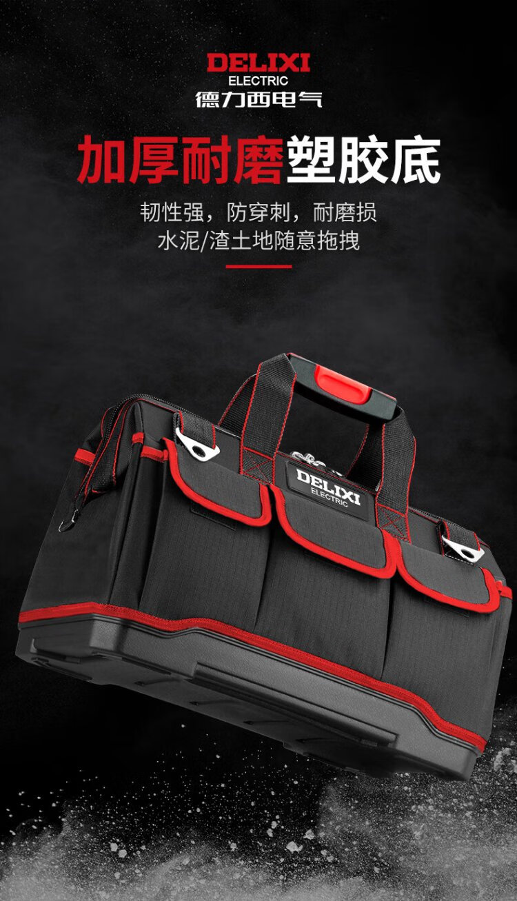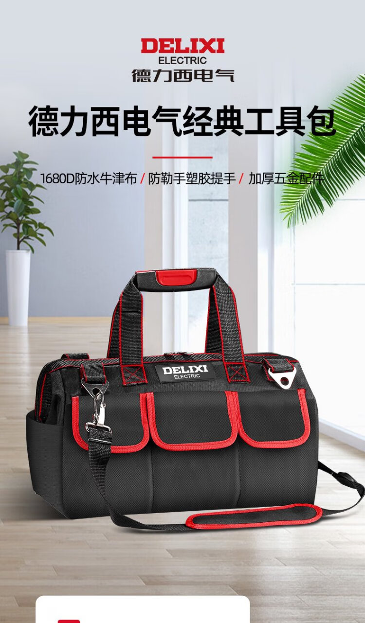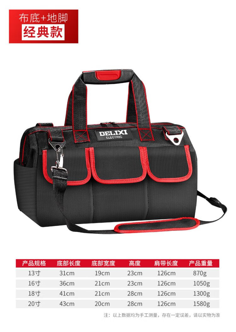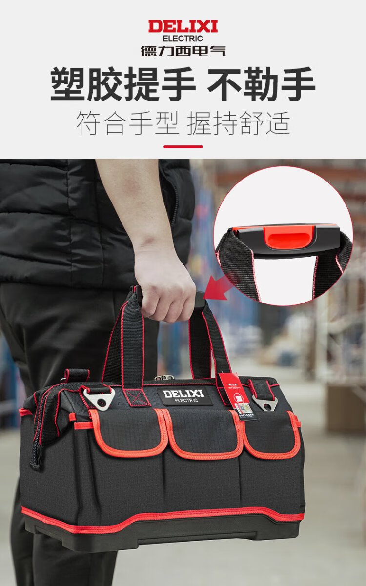 Delixi tool bag multi-functional repair canvas electrician's wear-resistant installation portable thickened tool bag for men New electrician bag 16-inch wear-resistant bottom tool bag