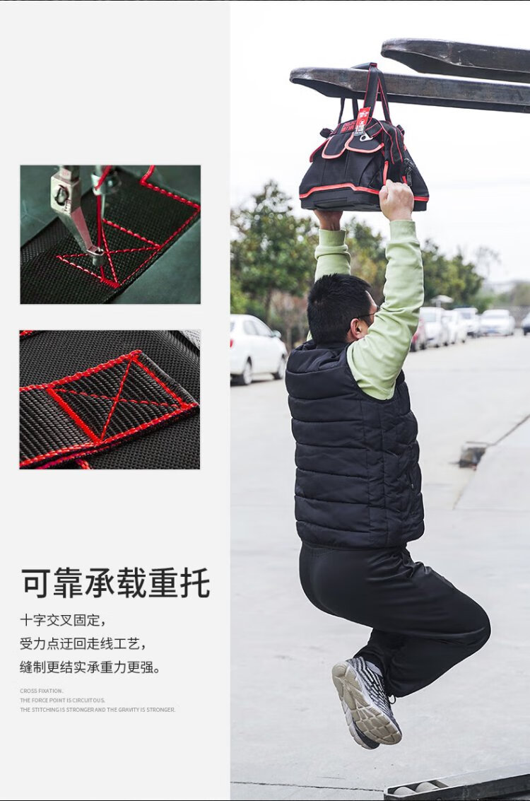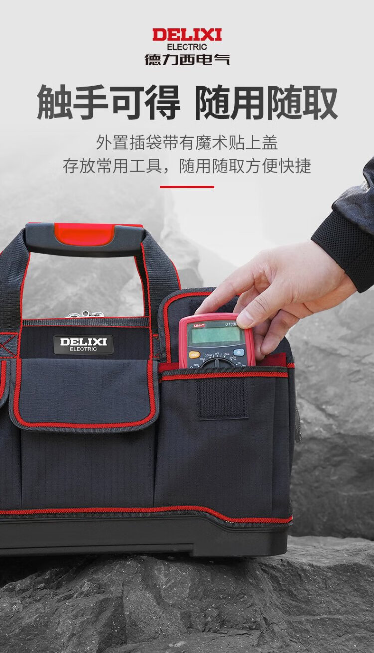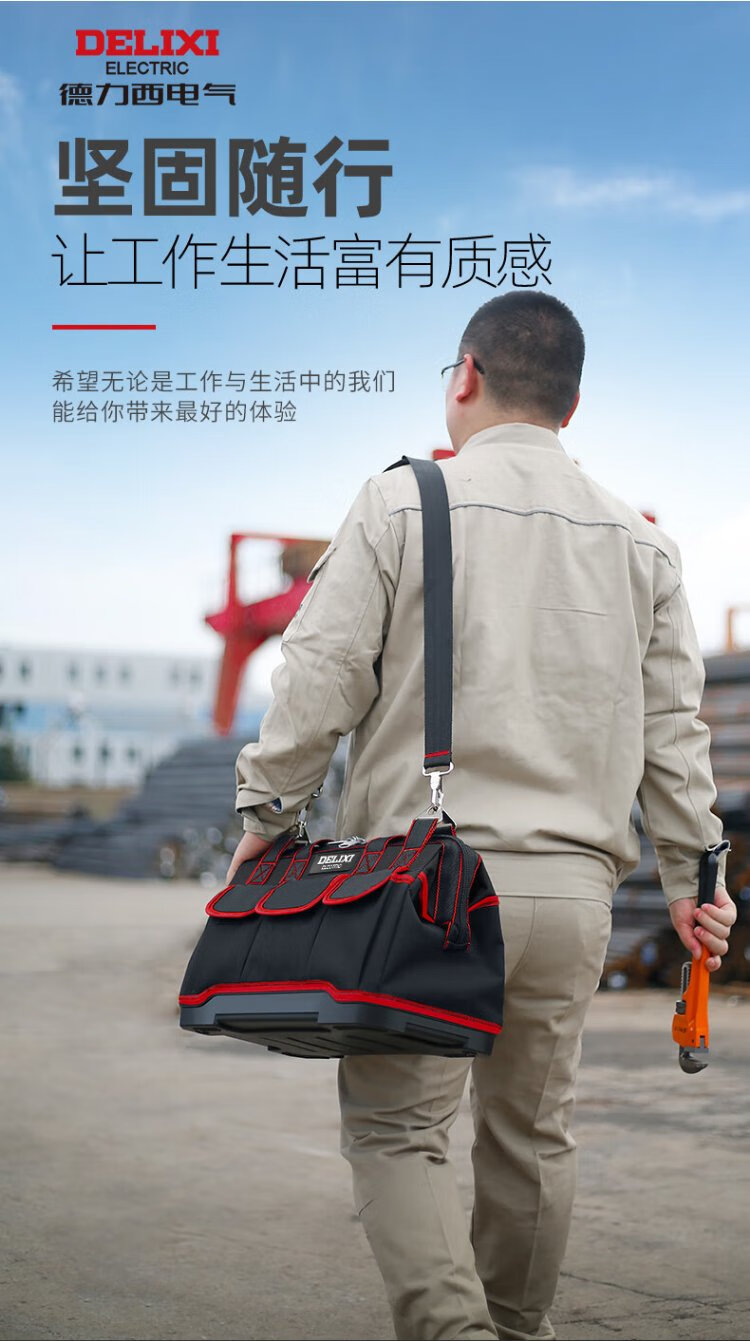 Delixi tool bag multi-functional repair canvas electrician's wear-resistant installation portable thickened tool bag for men New electrician bag 16-inch wear-resistant bottom tool bag