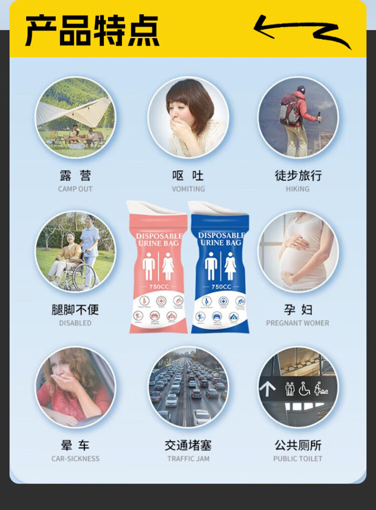 40,000 km emergency urine bag, disposable urinal artifact, unisex travel essential, business trip car portable toilet urinal