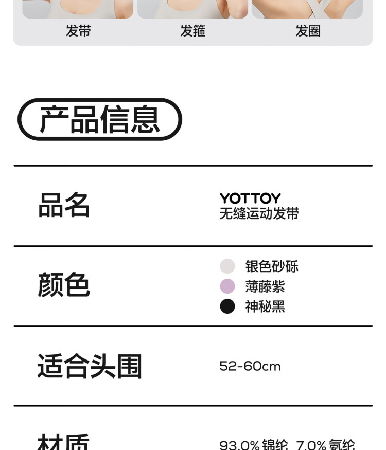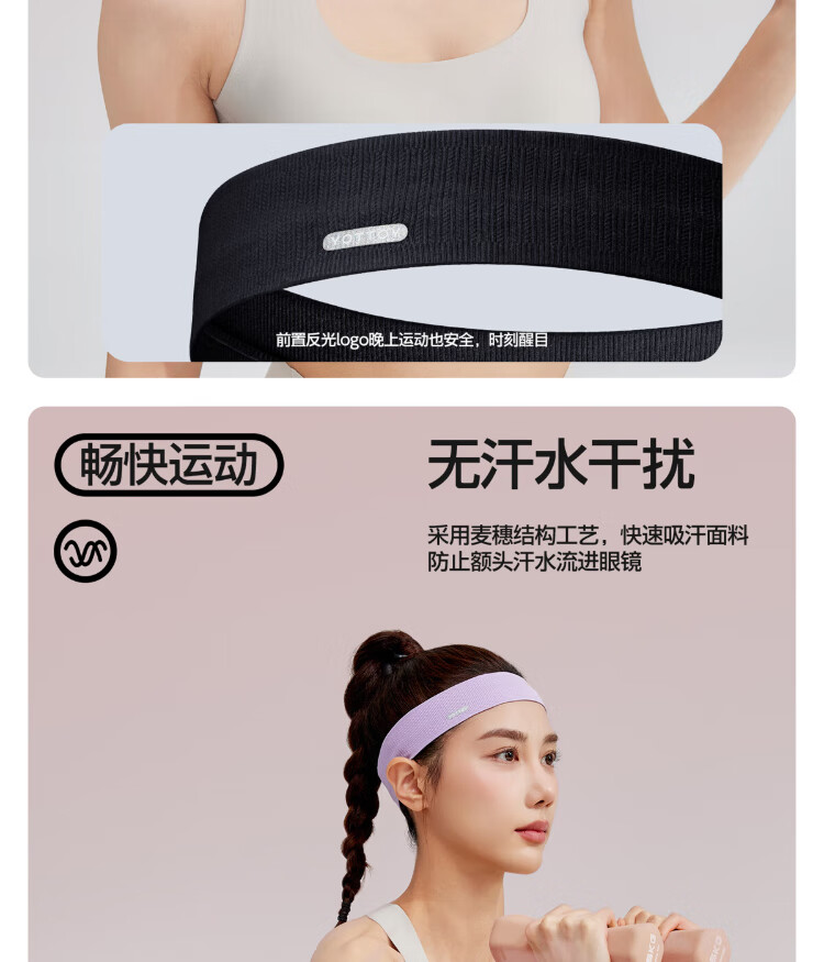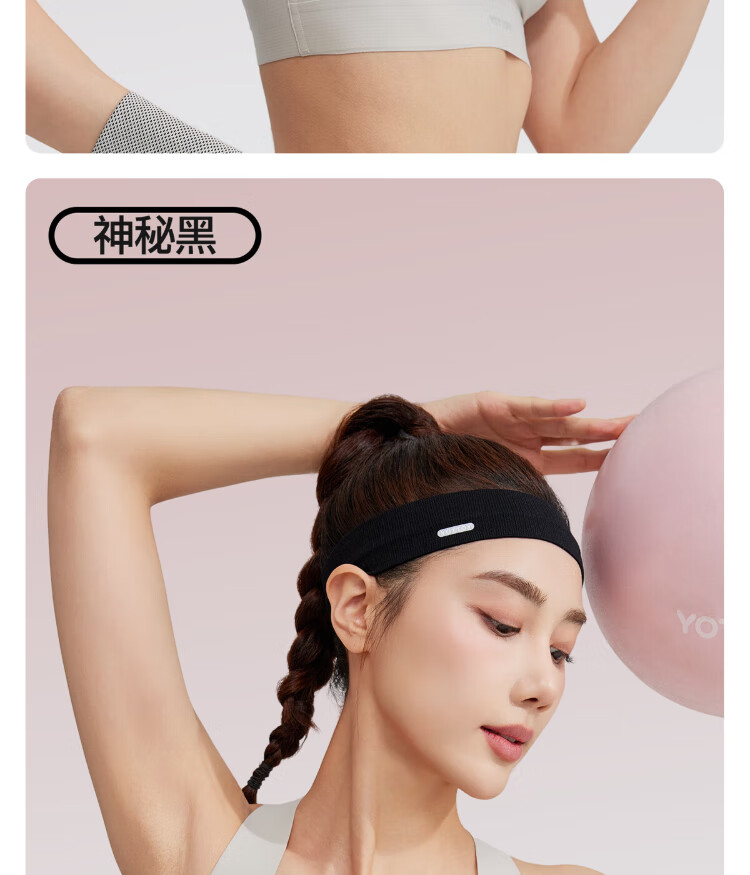 Yottoy seamless headband sports headband antiperspirant band sweat-conducting and cooling female yoga running badminton mysterious black