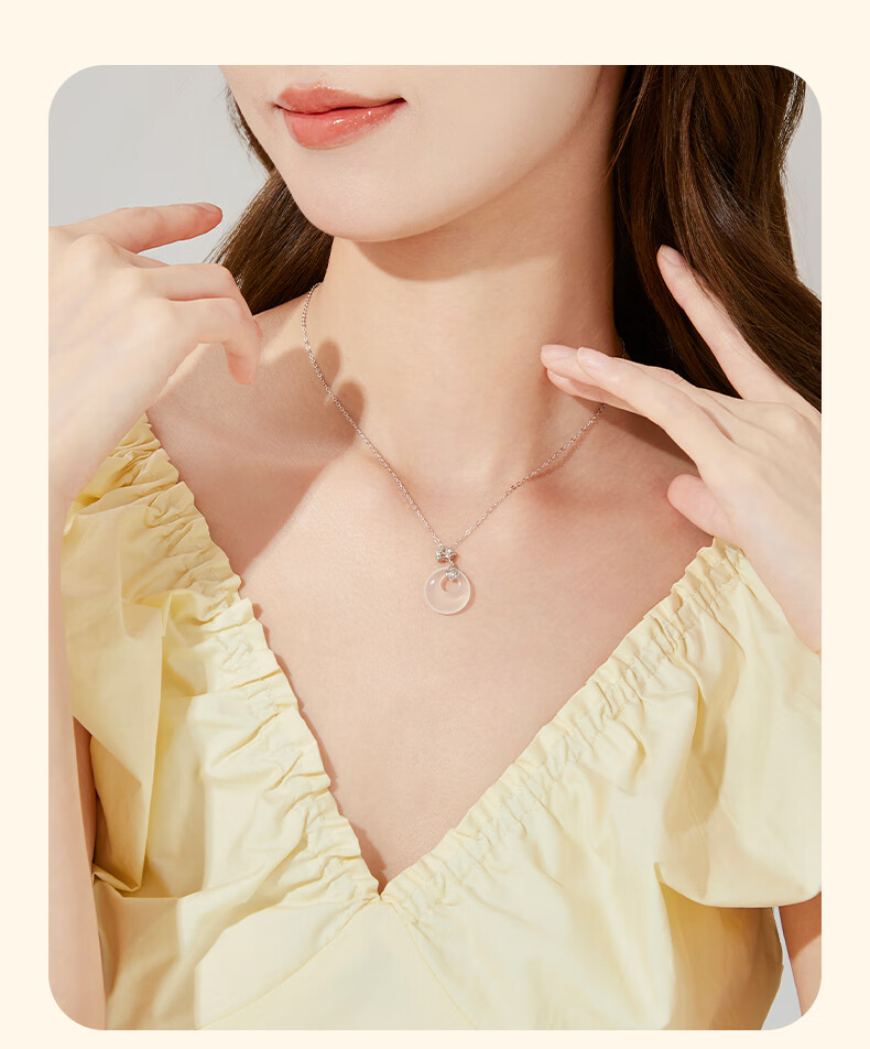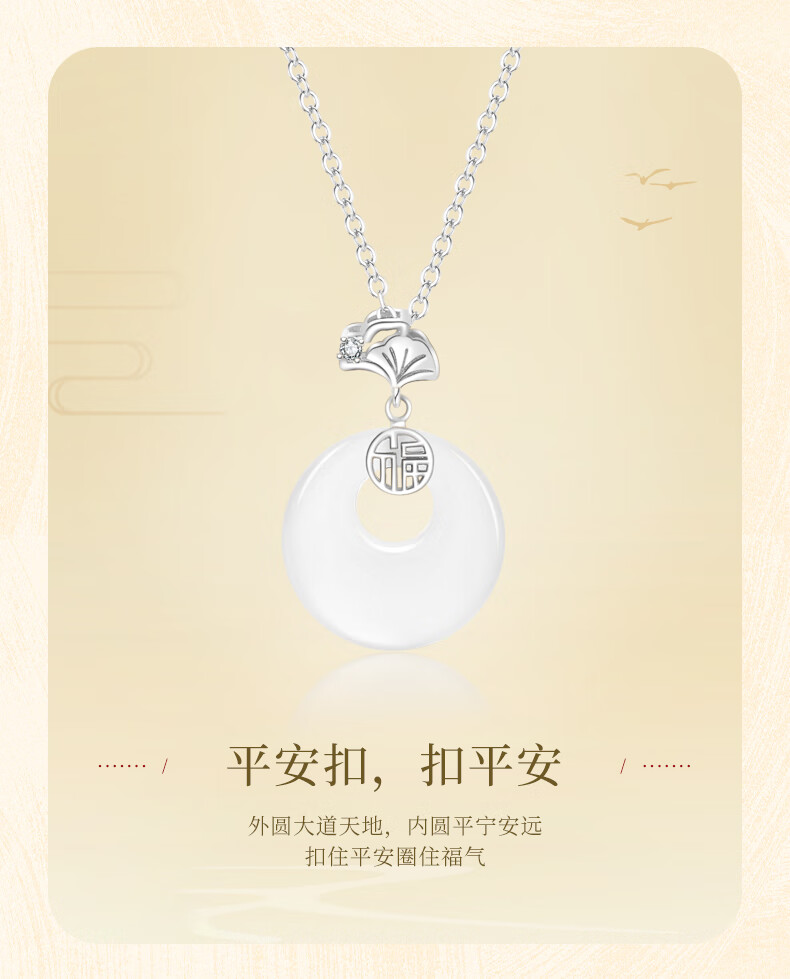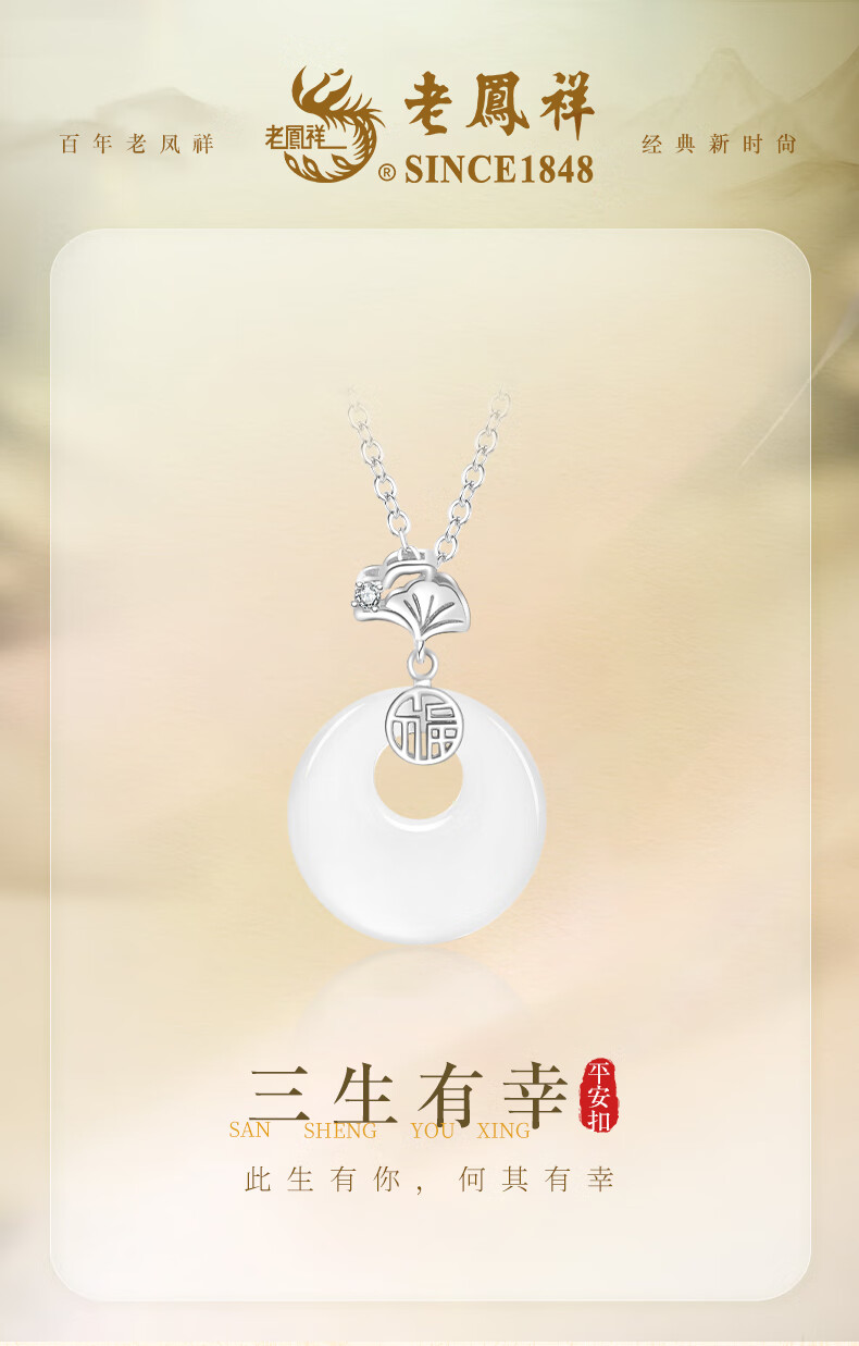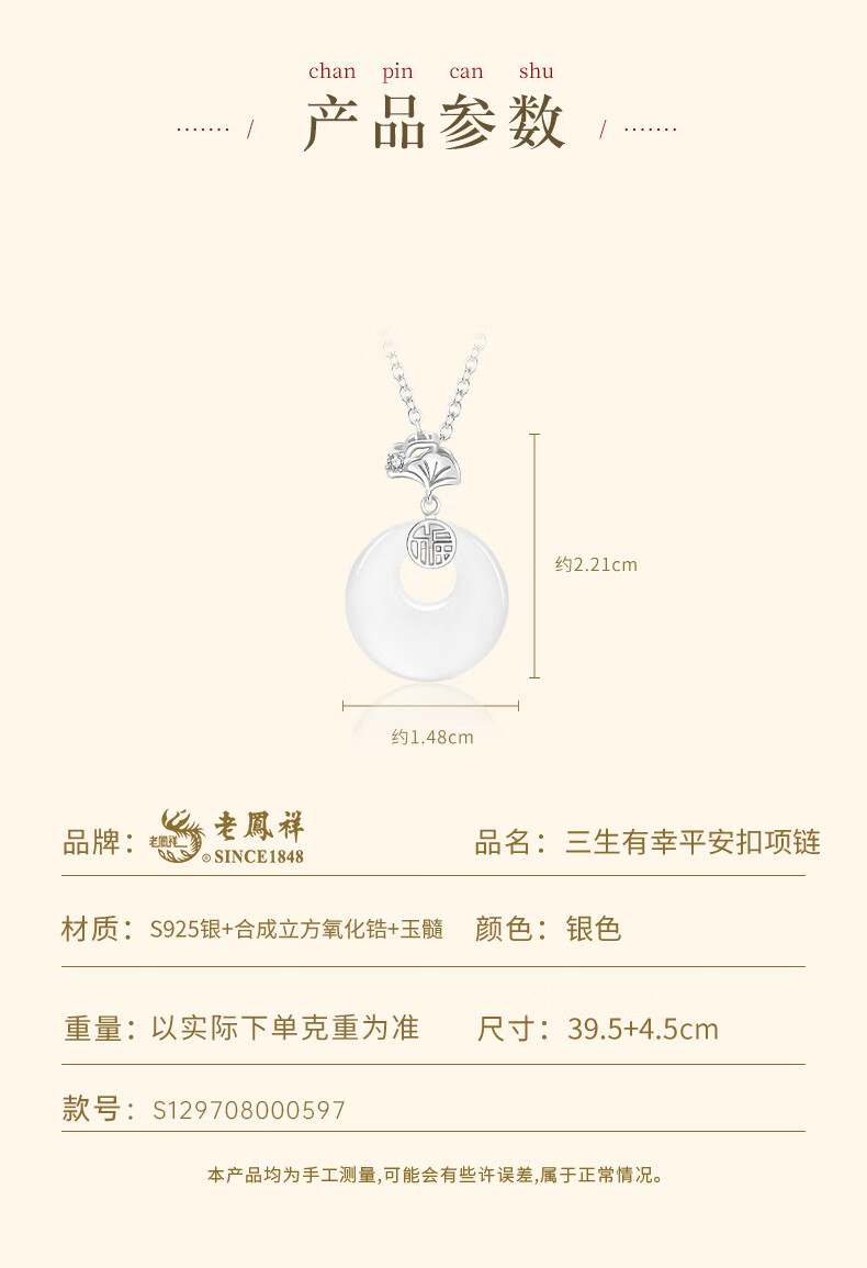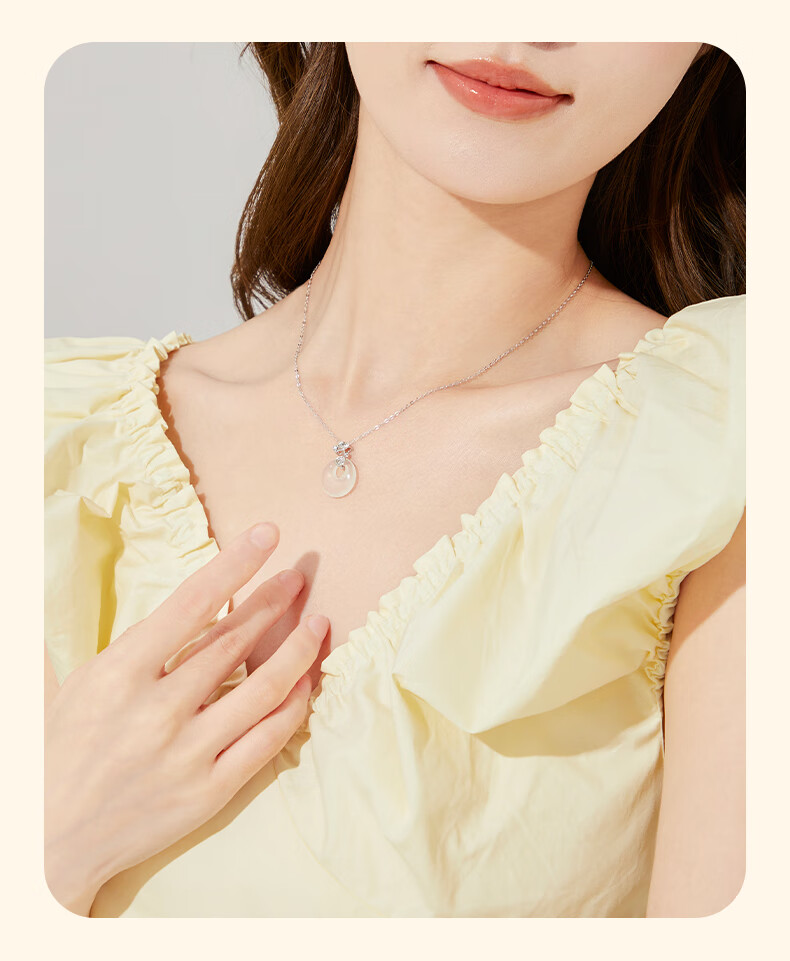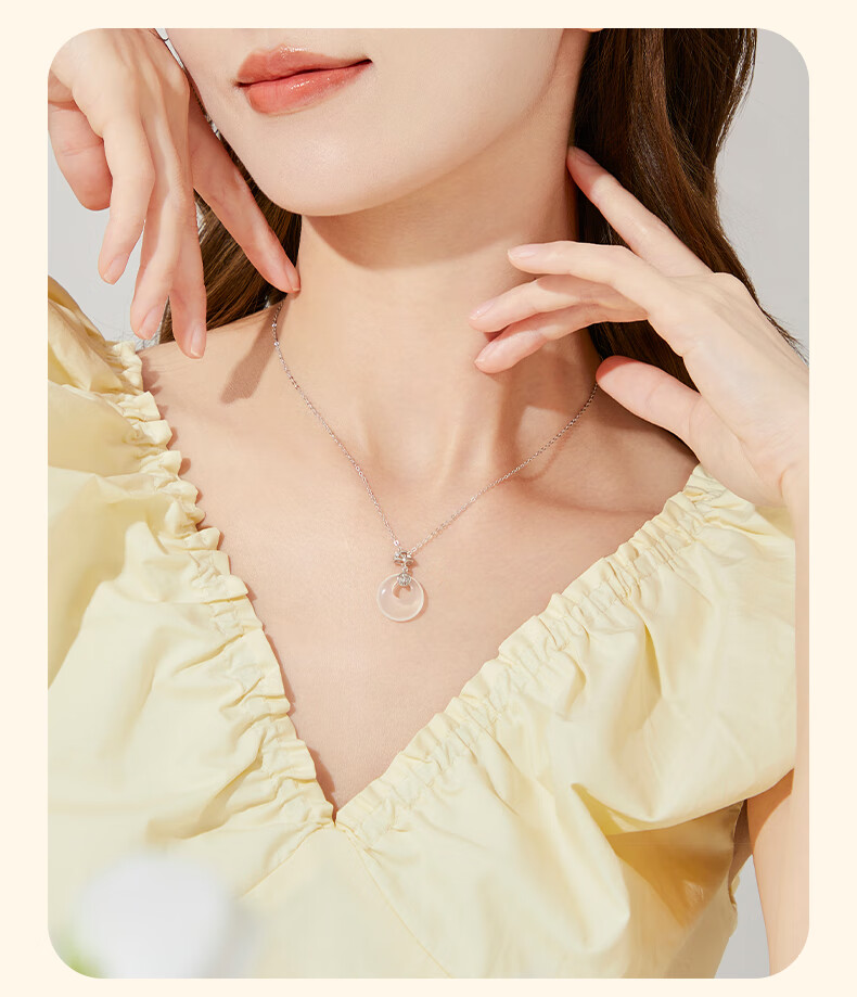 Lao Fengxiang is lucky to have chalcedony safe buckle silver necklace for women for three years, ladies pendant, Valentine's Day birthday gift for girlfriend and wife
