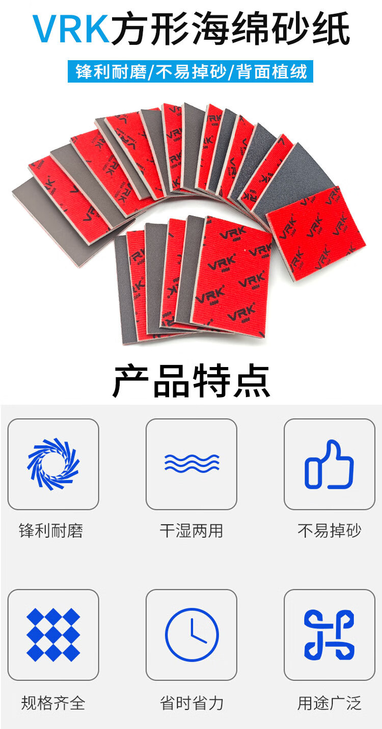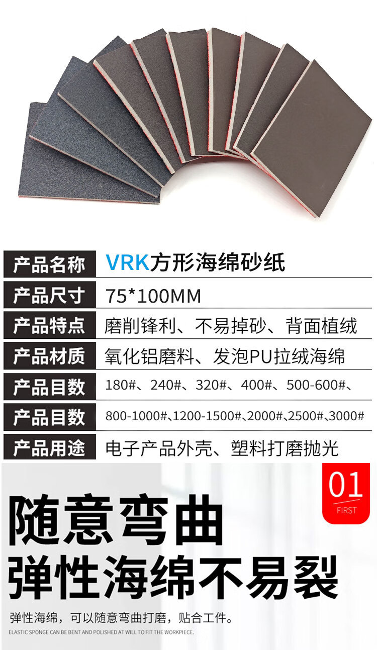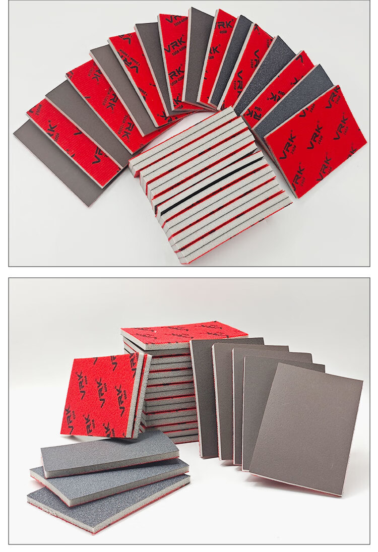 VRK sponge sandpaper 1200-1500 mesh square thick sandpaper soft sponge flocked back sheet dry grinding metal car mobile phone polishing 75*100mm 20 pieces/pack