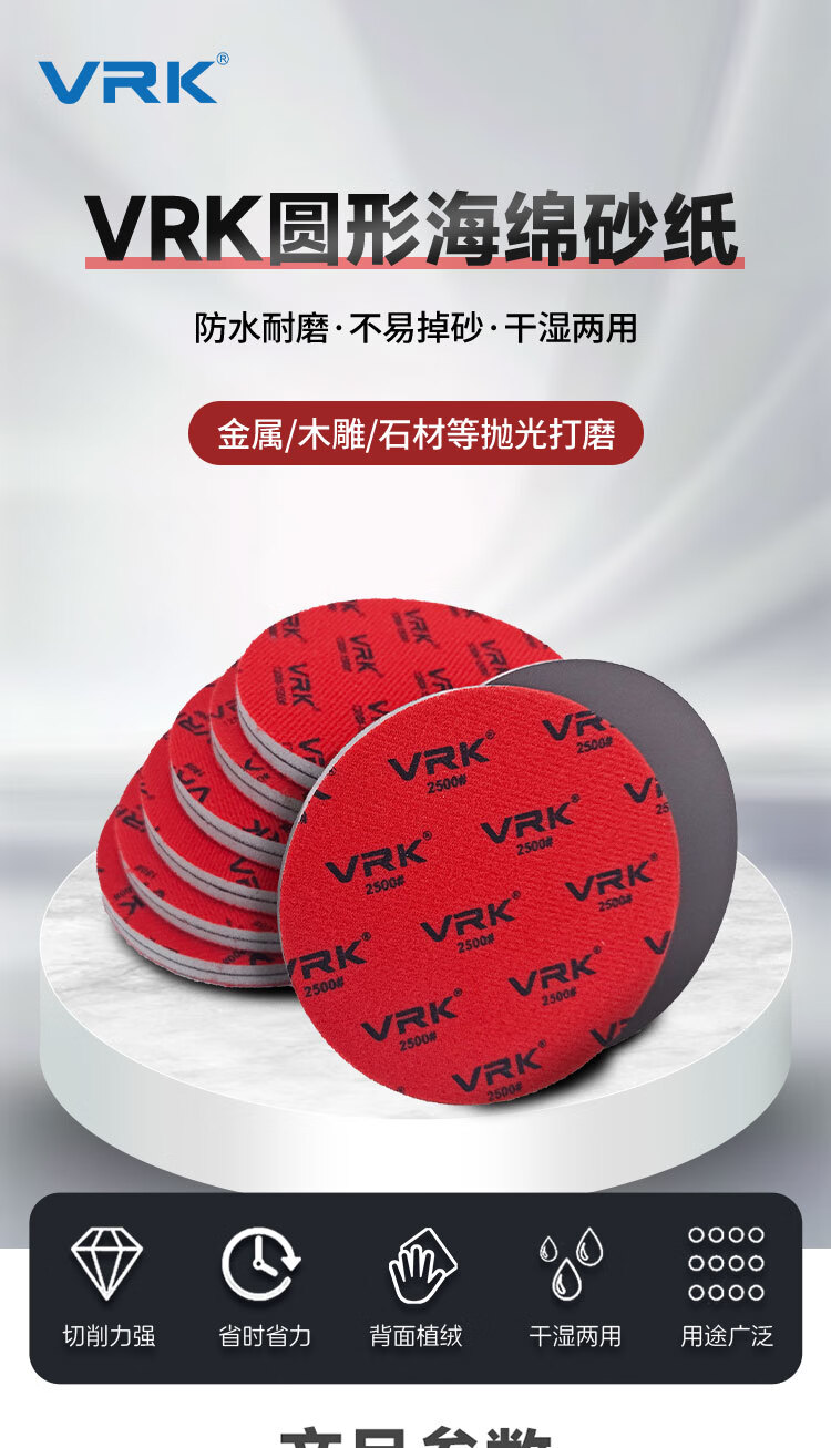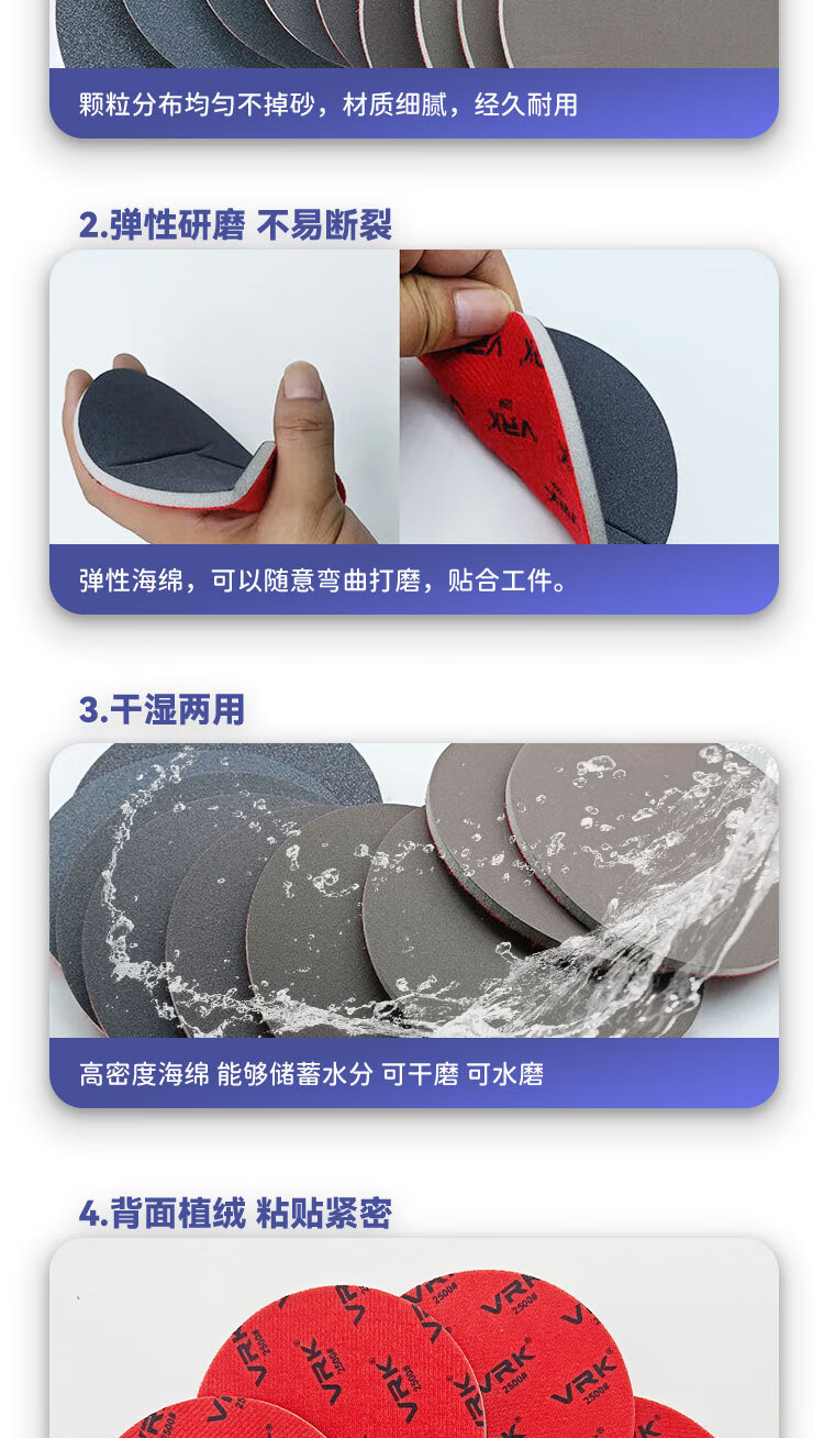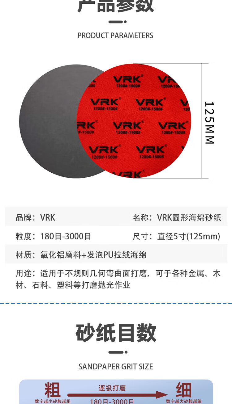 VRK round sponge sandpaper 320 mesh 5-inch precision parts polishing back velvet sponge sandpaper wet and dry 125mm 10 pieces