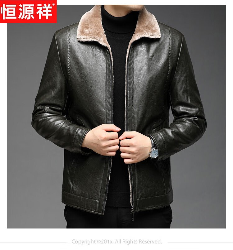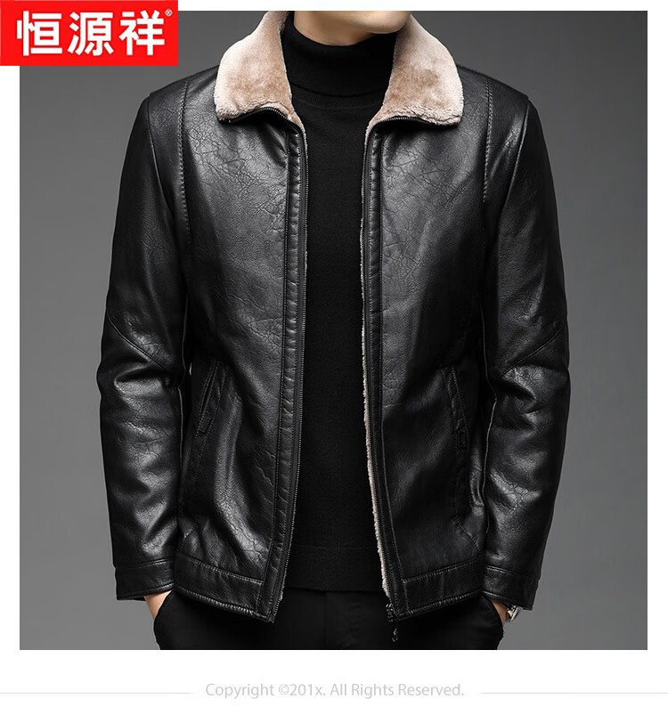 Hengyuanxiang leather jacket men's 2025 winter new velvet thickened jacket business casual cold-proof warm fur collar jacket men's clothing