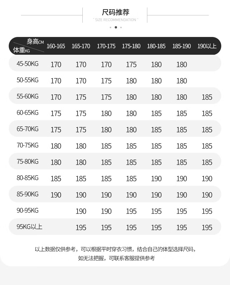 China (cm) 160-165/84-86 165-170 / 88-90 167-172 / 92-96 168-173 / 98-102 170-176 / 106-110