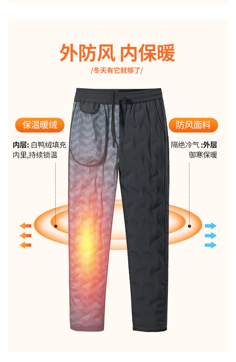 Yalu Down Pants Men's and Women's Business Casual Straight Pants Winter New Style Plush Down Pants for Young and Middle-aged Thick Warm Casual Pants