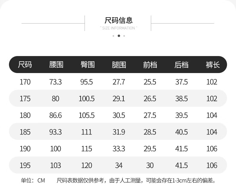 Outseam (cm) 99 cm 101.5 cm 104 cm 106.5 cm 109 cm