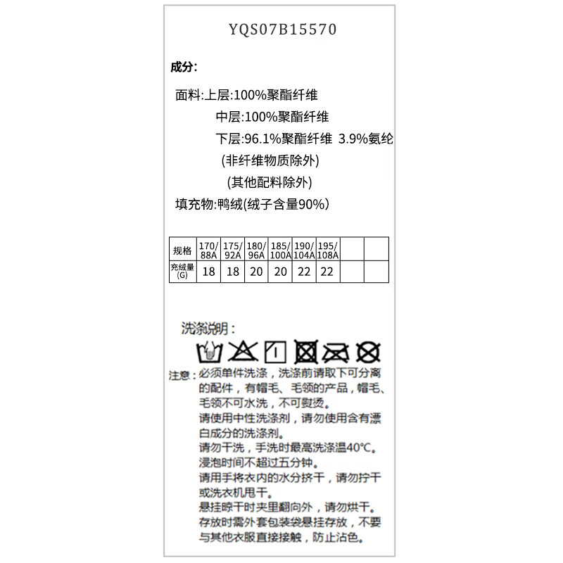 China (cm) 165 / 88-90 170 / 96-98 175 / 108-110 180 / 118-122 185 / 126-130