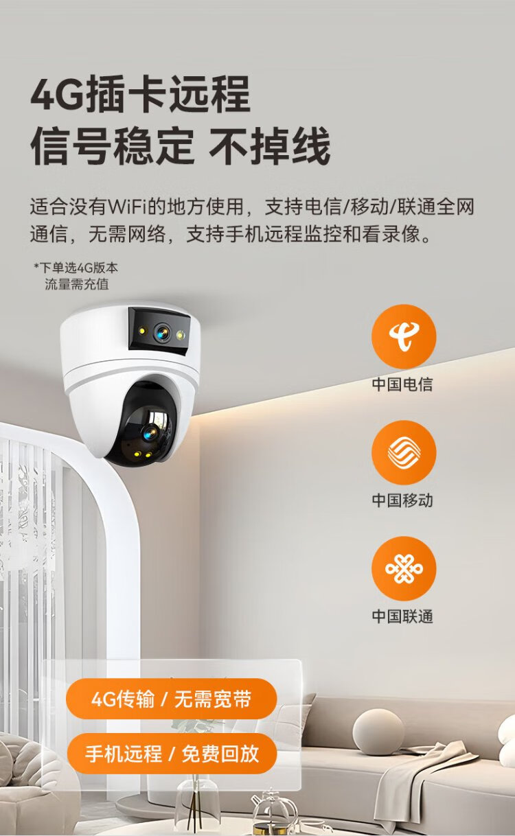 Visidacon monitor 360-degree no blind spots with night vision and conversational indoor 4G camera home door ceiling dome machine home corridor pet baby high-definition monitoring caretaker