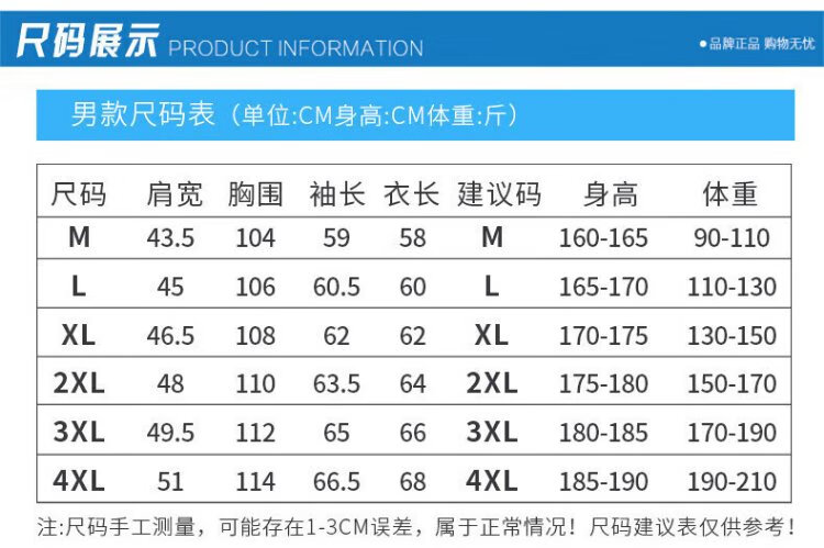 China (cm) 165 / 88-90 170 / 96-98 175 / 108-110 180 / 118-122 185 / 126-130