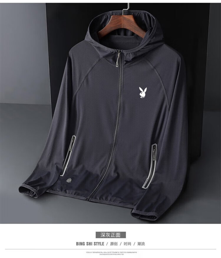 Playboy sun protection clothing men's summer coat thin jacket fishing skin clothing ice silk breathable sun protection clothing silver gray L