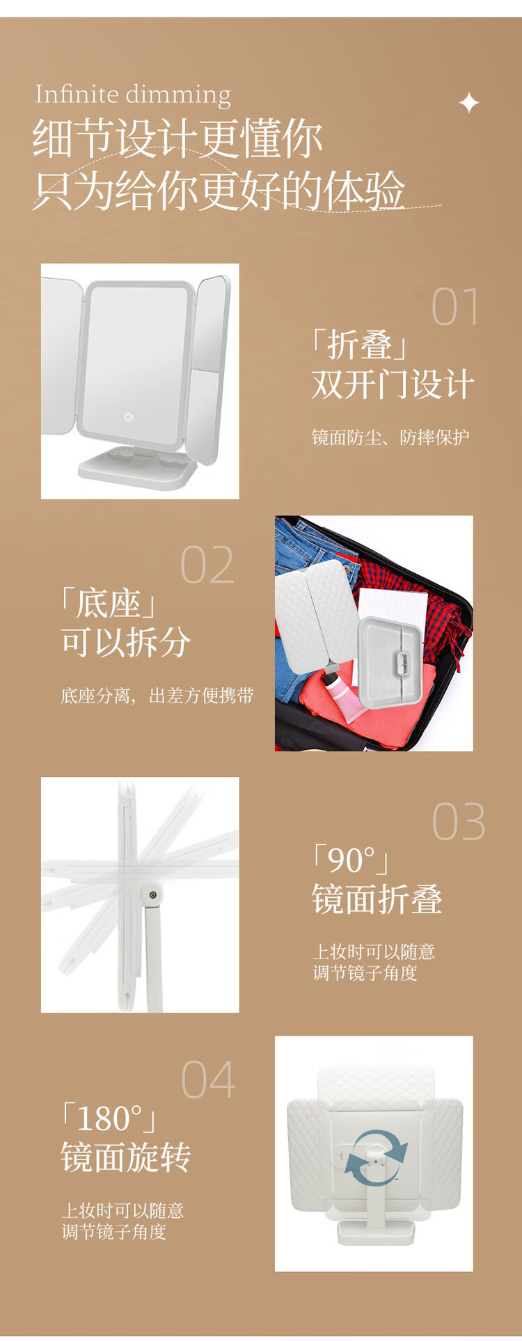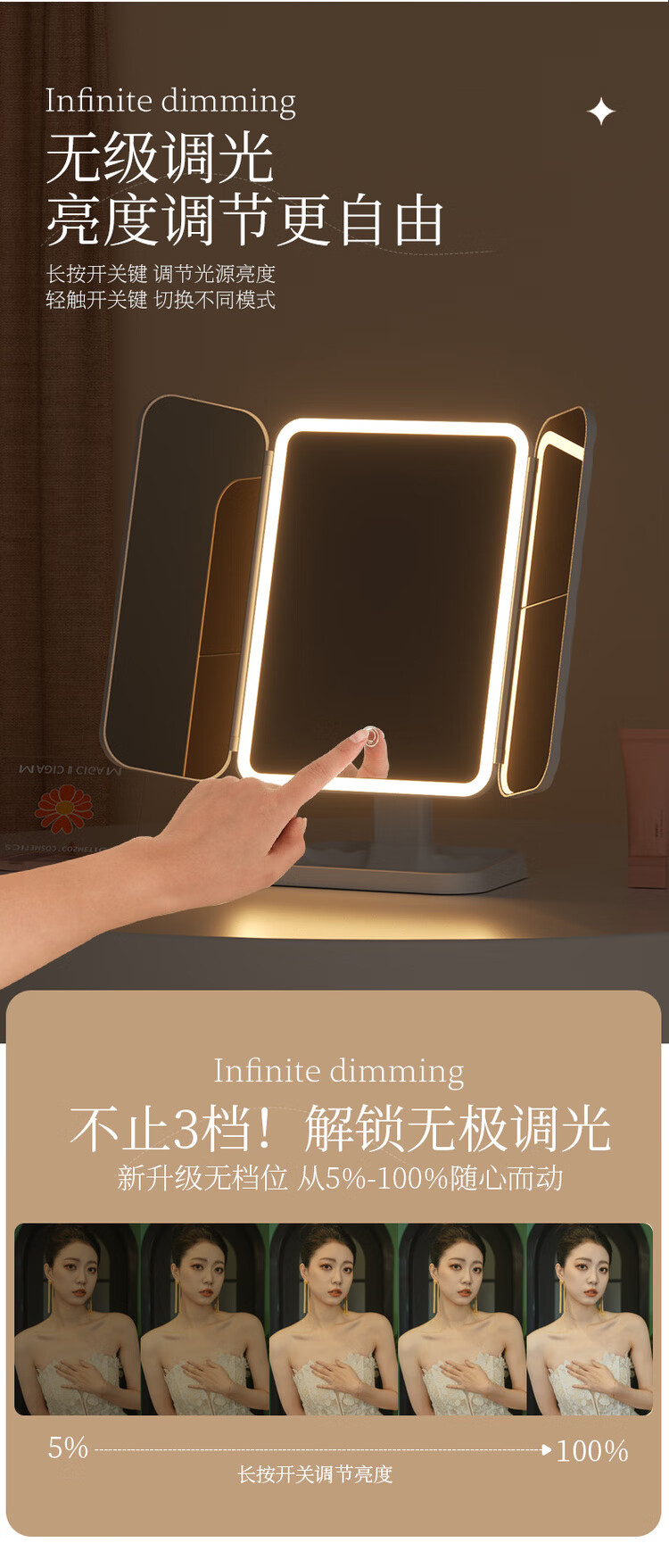 Modern makeup mirror with light led high-definition mirror smart beauty mirror vanity mirror desktop mirror birthday gift for women