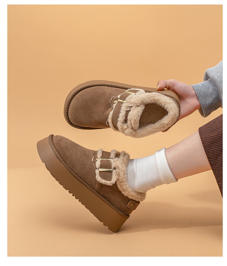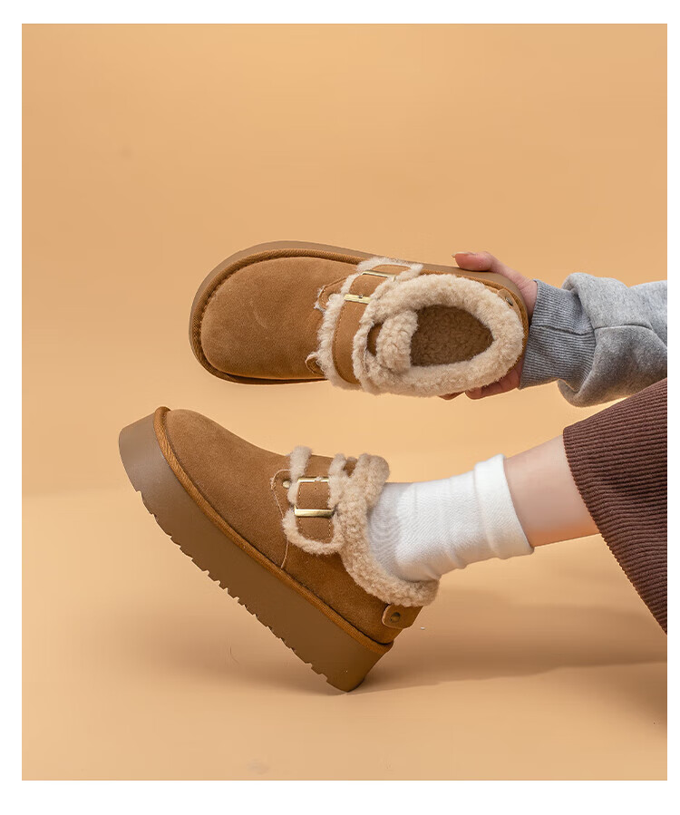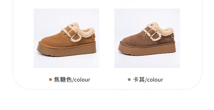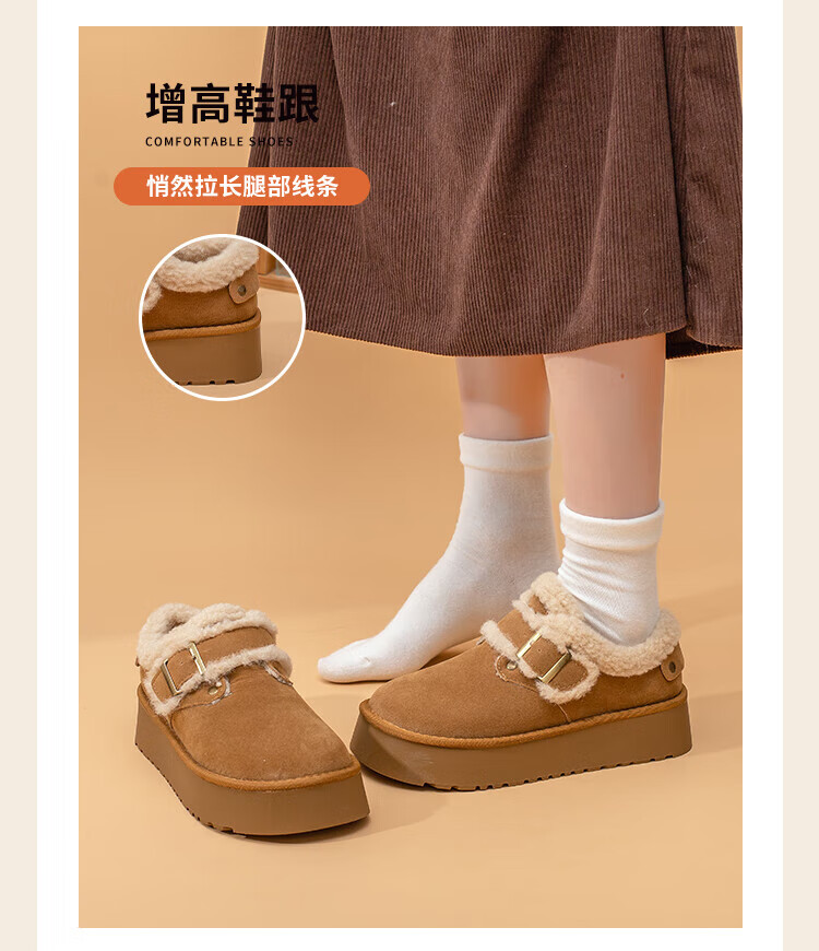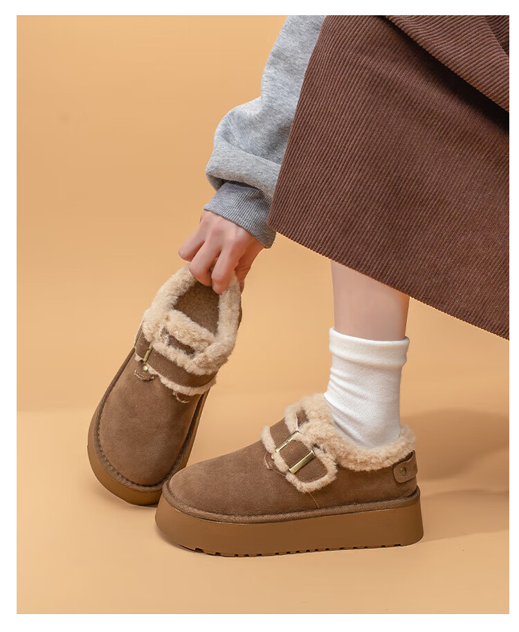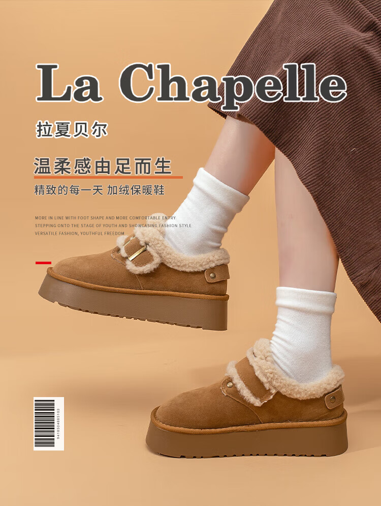 La Chapelle thick-soled snow boots for women in winter new style plus velvet Birkenstock shoes retro all-match thickened warm cotton shoes khaki 38