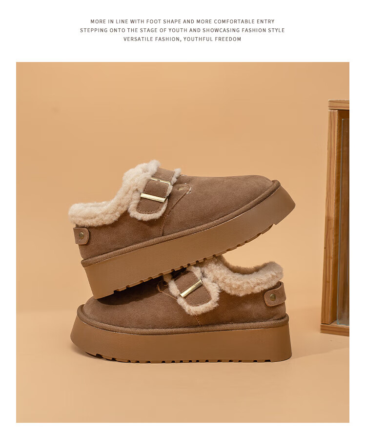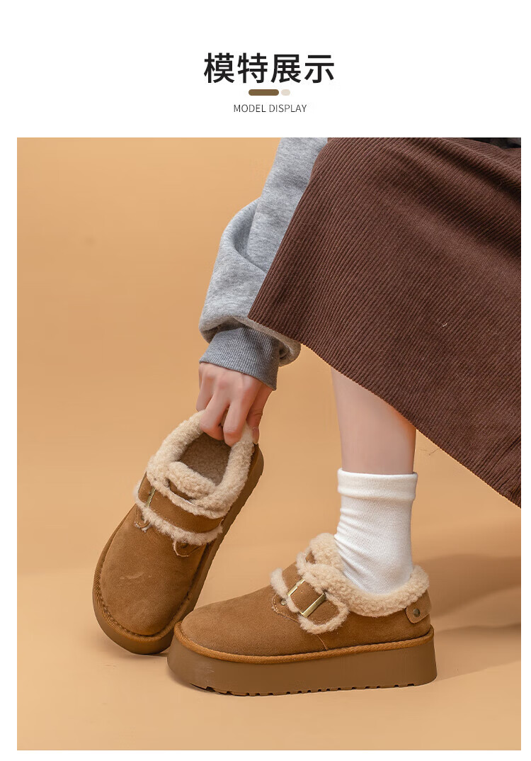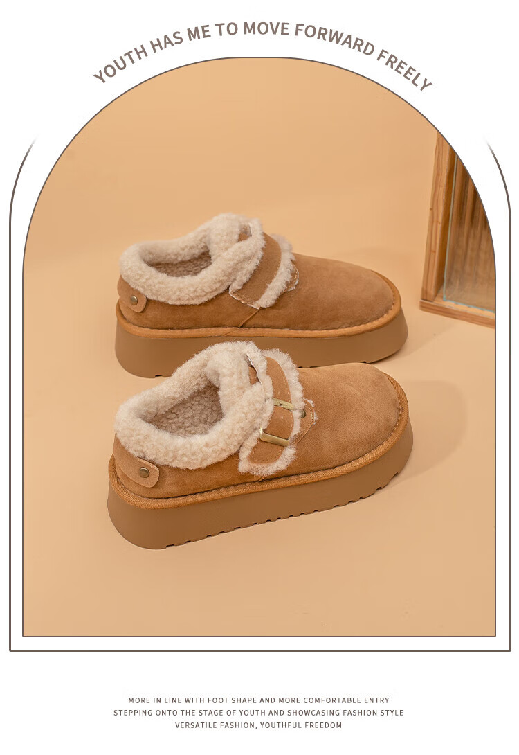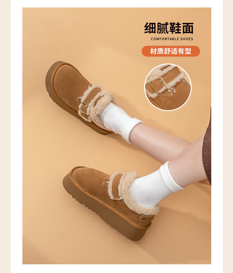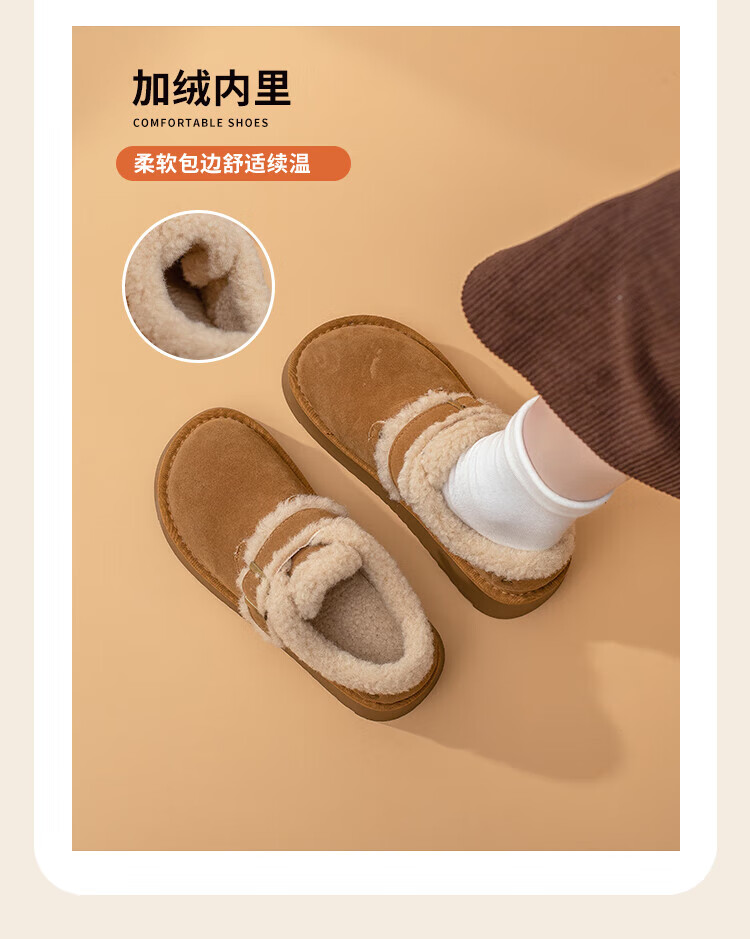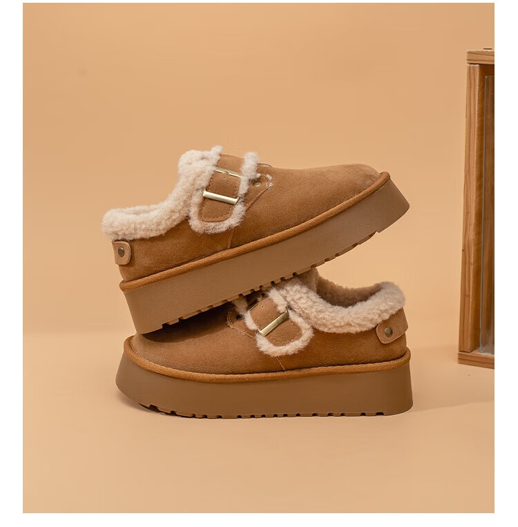 La Chapelle thick-soled snow boots for women in winter new style plus velvet Birkenstock shoes retro all-match thickened warm cotton shoes khaki 38