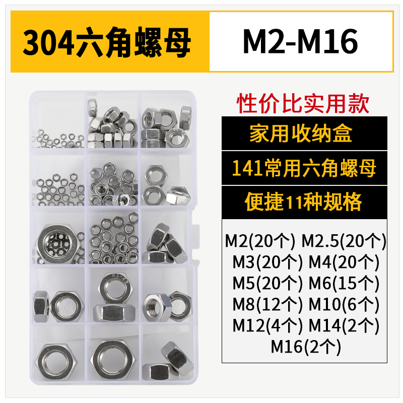 316/304 stainless steel hexagonal nut complete set hexagonal nut screw cap bolt screw nut DIN934 M4 100 pieces 304 coarse thread