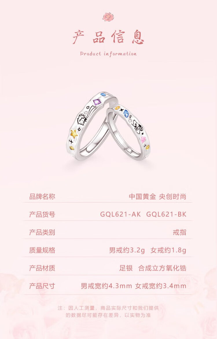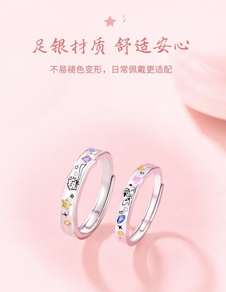 Central Chuang Fashion Chinese Gold Sterling Silver 999 Couple Rings Pure Silver Pair of Open Rings Practical Love Token Gift