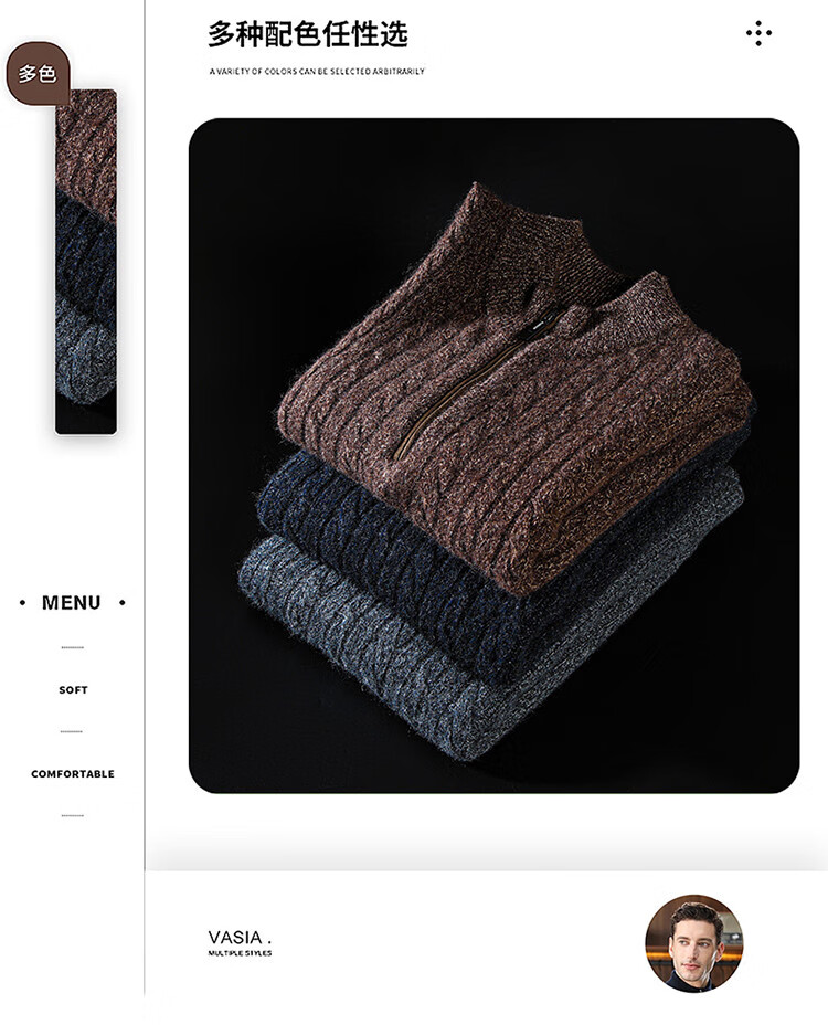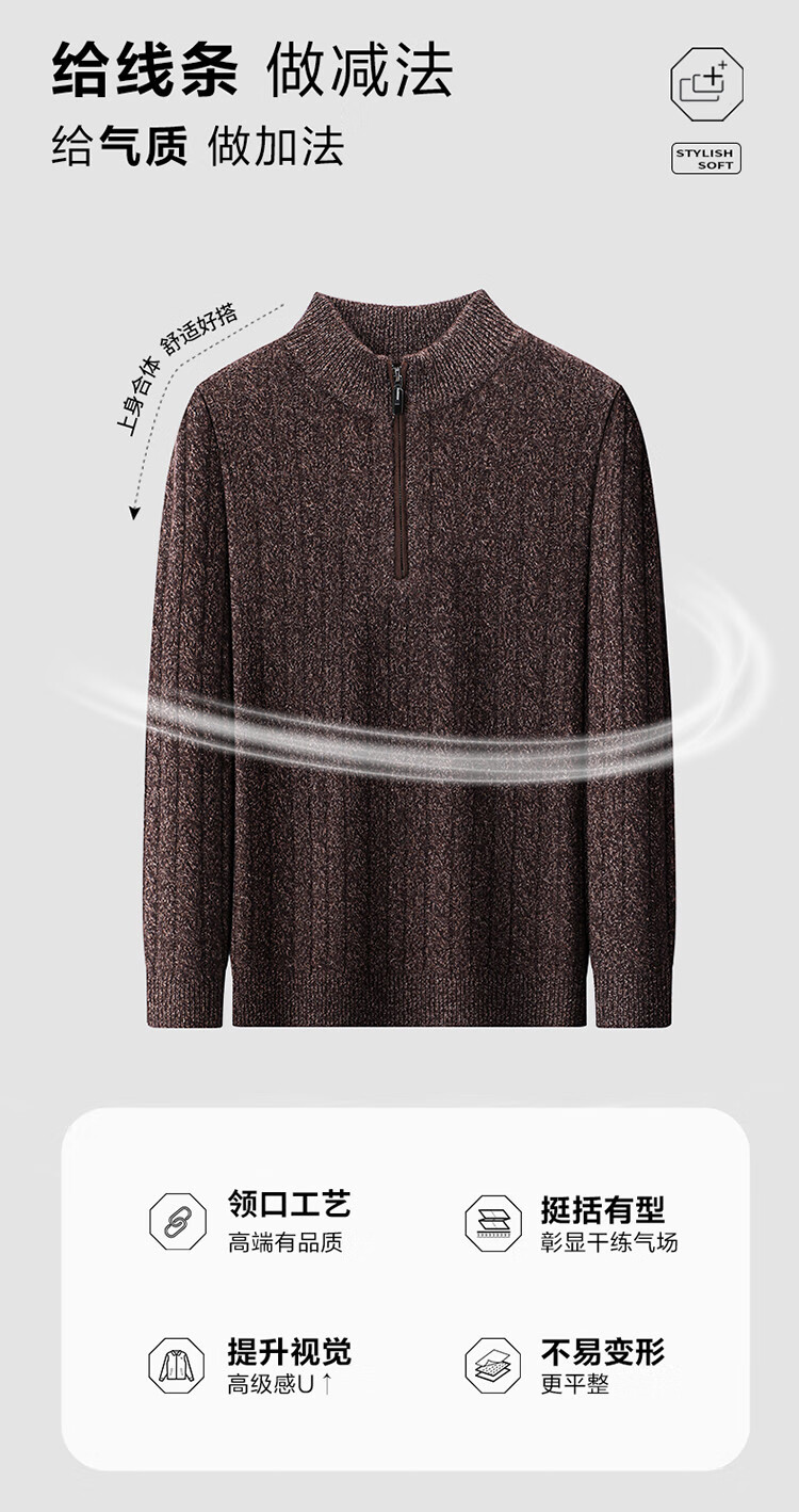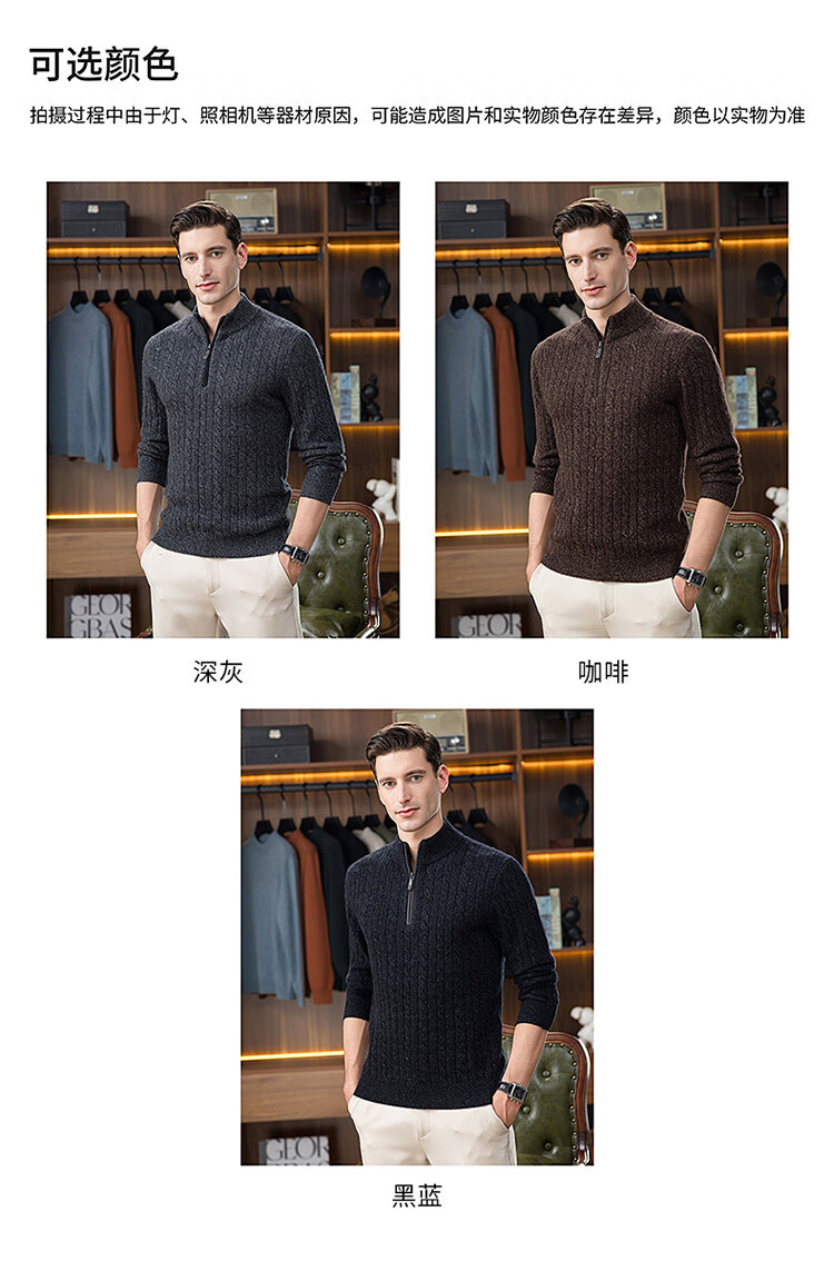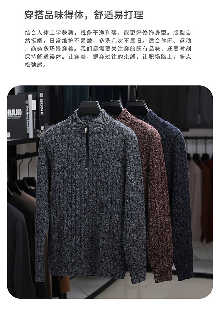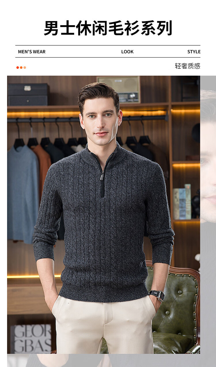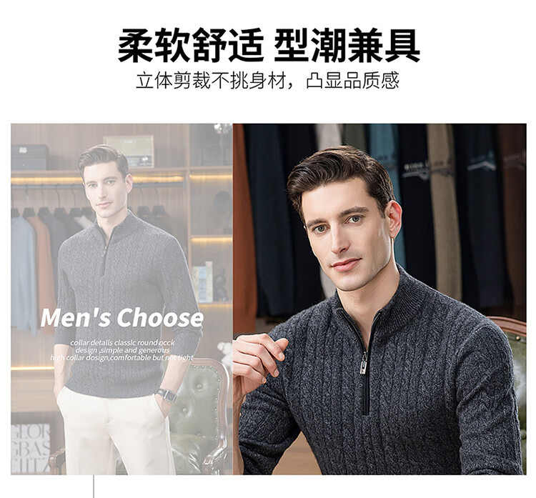 Hengyuanxiang 100% pure cashmere sweater half turtleneck zipper men's inner sweater cardigan autumn and winter bottoming sweater
